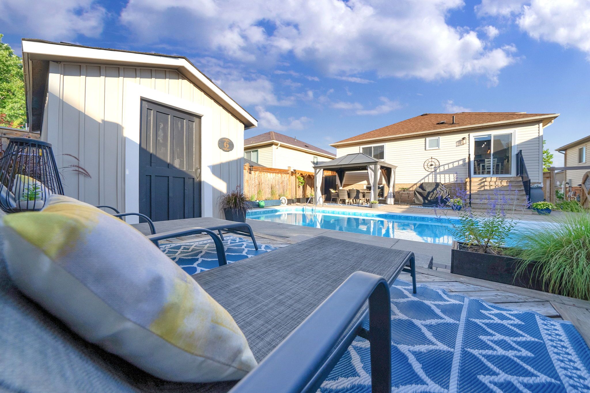 Welcome to 6 goodwin avenue, a beautifully maintained raised bungalow with a rare loft level, 1,966 sq ft living space (1,100 sq ft above grade plus 866 sq ft below) & a resort-style backyard ready to be enjoyed for seasons of hosting, lounging & making memories. This original-owner, non-smoker home has been lovingly cared for since day one. The main floor offers bright, open living with a welcoming front living room & an easy flow to the dining area a kitchen. Large windows fill the home with natural light, creating a warm & comfortable atmosphere throughout. The bonus loft level adds valuable extra living space & works perfectly as a family room, home office, playroom or optional future 4th bedroom. Two comfortable bedrooms are located on the main floor, including the primary with semi-ensuite access. The lower level feels unexpectedly bright thanks to oversized above-grade windows. This finished space includes a spacious rec room with a cozy gas fireplace, a third bedroom, a full five-piece bathroom with double sinks, plus a generous storage room & a separate utility/laundry room. The backyard is a true showstopper. Designed for relaxation & entertaining, it includes an inground pool with lighting for evening swims, full hardscaping with no grass to maintain, two covered seating areas, a dedicated lounging deck, a fire-feature zone & a charming pool shed. It is private, low-maintenance & beautiful from morning to night. Additional features include a built-in garage with parking for 5 vehicles, landscaped front gardens, excellent natural light on both levels & a desirable bowmanville location close to schools, parks, amenities & commuter routes. A rare blend of lifestyle, comfort & long-term care. This is a home you will feel proud to own. A fantastic location, just minutes to shops, restaurants, the hospital, schools, major commuter highways & all the day-to-day amenities you want & need. View the virtual tour a schedule your personal viewing today!