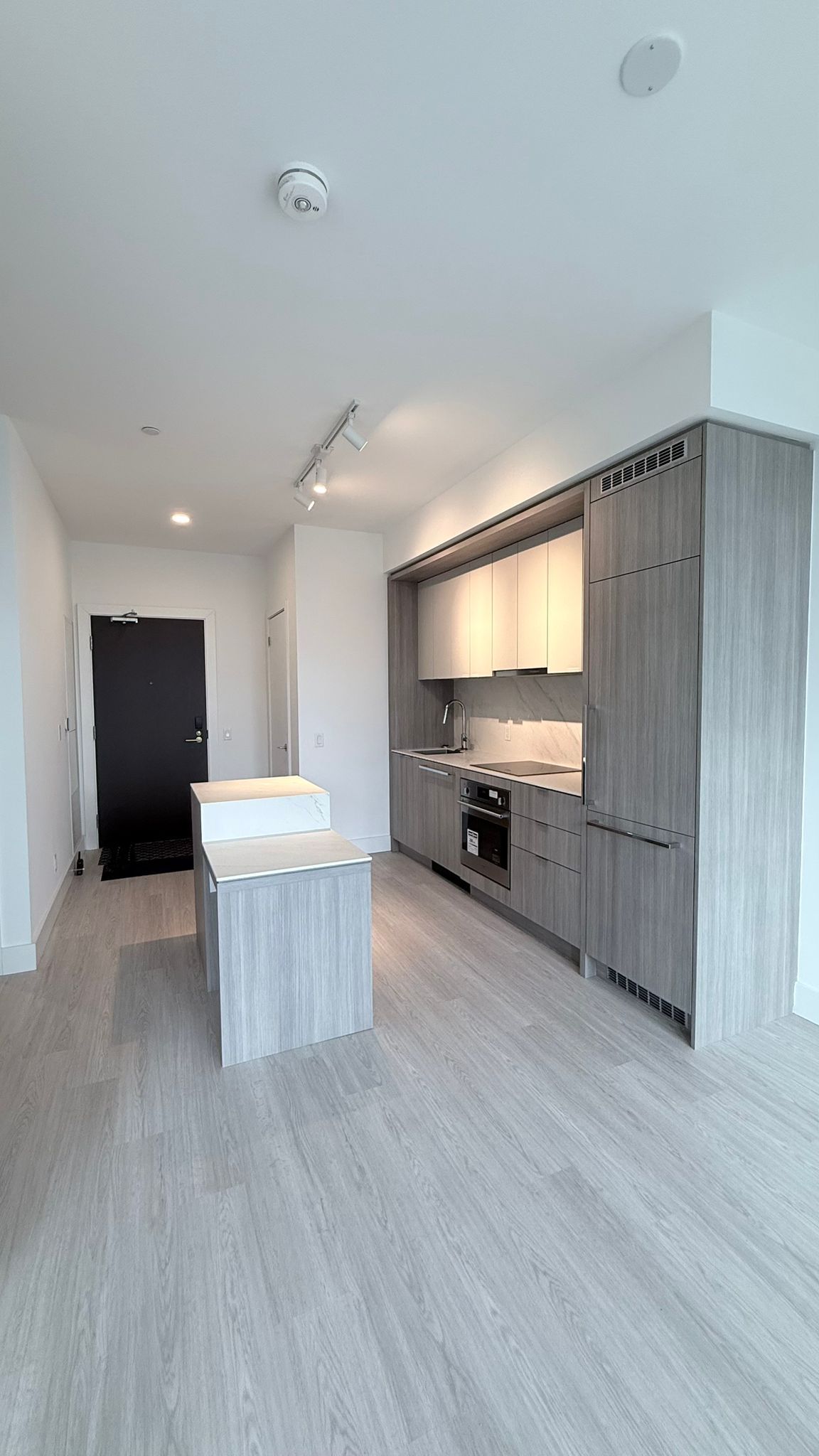 Bayview at the village - stylish 1-bedroom residence with oversized balcony and upscale finishes. Bright, open-concept 526 sq ft interior with soaring 9-ft ceilings features a sleek integrated kitchen with panelled appliances, quartz counters, and a functional island with breakfast bar. The smart, *efficient* floor plan offers a generous living/dining area with direct walk-out to an impressive 111 sq ft balcony complete with gas line for bbq, perfect for relaxing or entertaining. Well-proportioned bedroom provides a comfortable retreat, complemented by a separate large linen closet in the foyer. The spacious, spa-inspired bathroom includes an oversized glass shower and contemporary vanity for a luxurious daily routine. Suite also comes with full-size stacked laundry, tall interior doors, and a separate storage area, creating a clean, streamlined living space with no wasted square footage. Residents enjoy exceptional building amenities; fitness centre, party/meeting room, guest suites, 24-hr concierge and more, in a prime location just steps to both bayview and bessarion subway stations, bayview village shopping centre, restaurants, groceries, parks and quick access to hwy 401 and hwy 404.