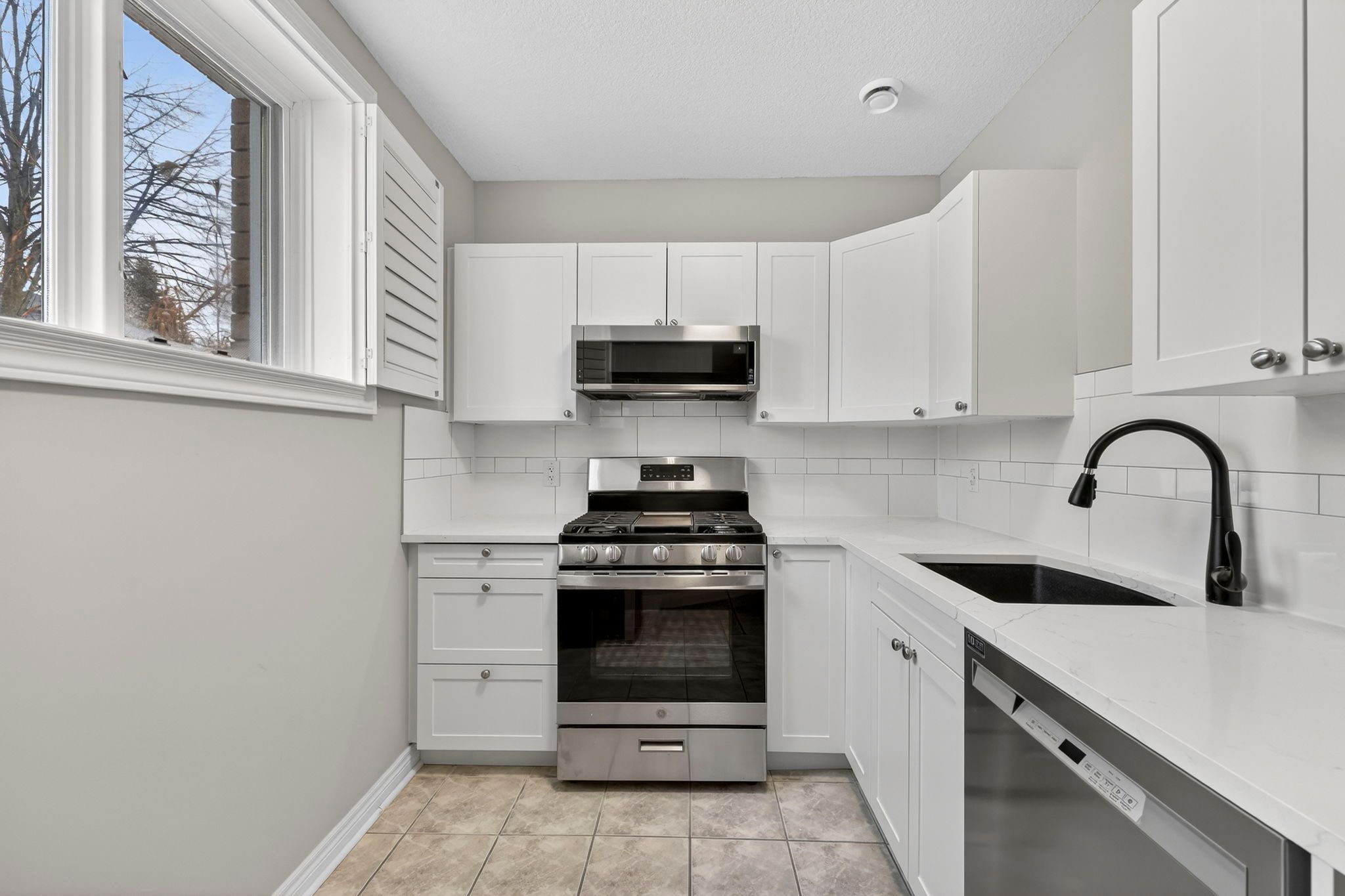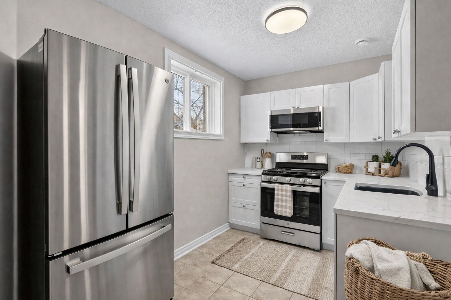 • High-end finishes like quartz countertops and stainless steel appliances elevate the space.