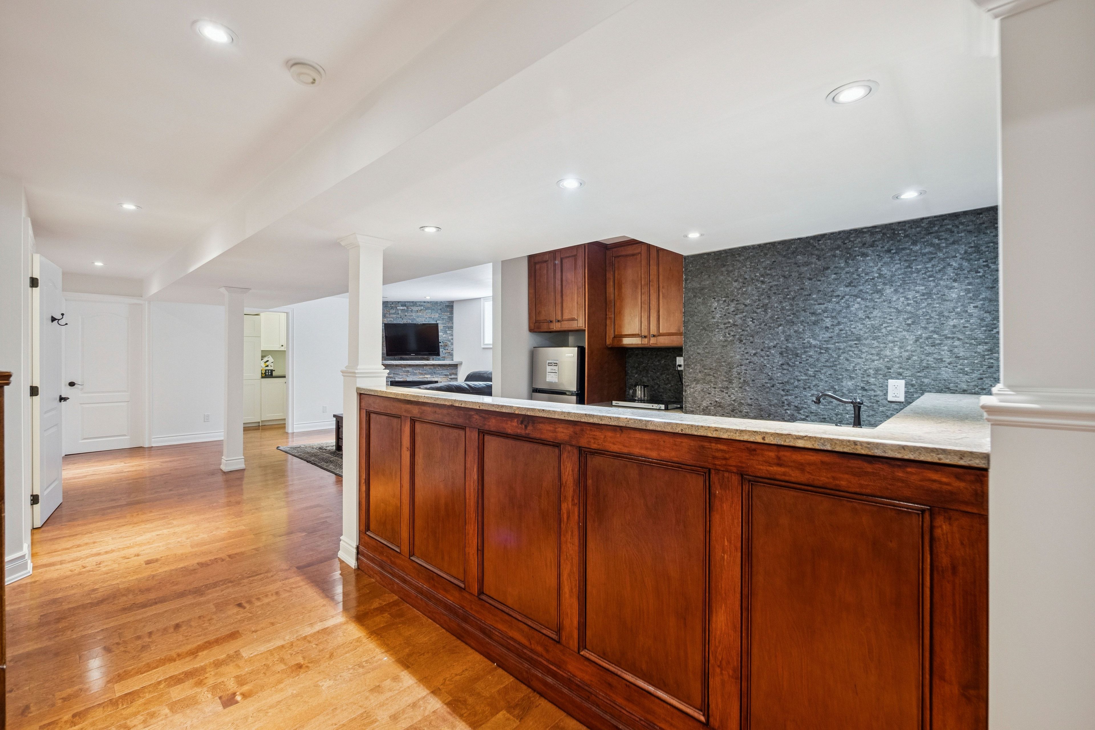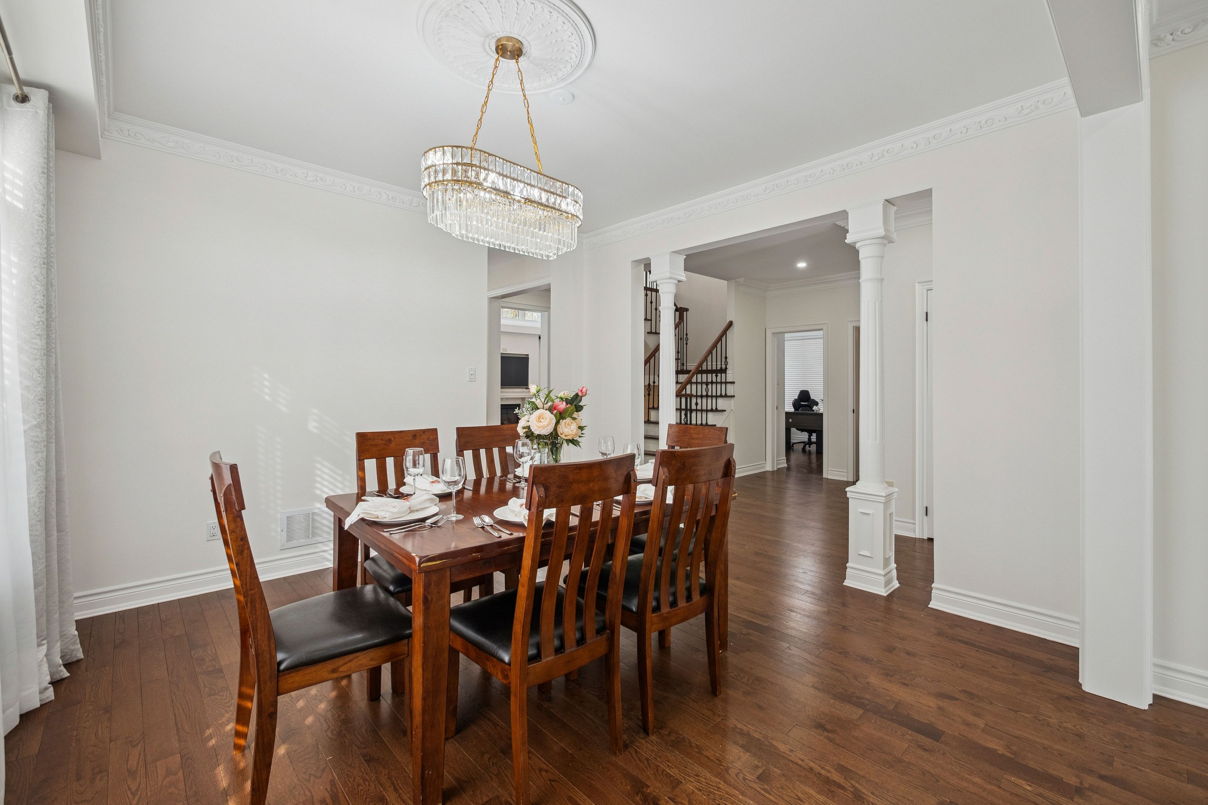 Welcome to this exceptional home in the heart of mill pond, richmond hill - where elegance, space, and comfort come together. Step into a bright, welcoming foyer leading to refined principal rooms featuring hardwood flooring, crown moulding, and decorative columns. Offering 4+3 bedrooms and 4 bathrooms, including a main-floor office, this home is thoughtfully designed for modern family living. The impressive family room features high ceilings, oversized windows, and a beautiful chandelier, filling the space with abundant natural light. A cozy main-floor fireplace adds warmth and charm. The open-concept kitchen includes granite countertops, stainless steel appliances, a large island with breakfast bar, built-in servery, ample cabinetry, and a bright eat-in area overlooking the backyard - perfect for everyday living and entertaining. Upstairs, spacious sun-filled bedrooms include a primary retreat with two walk-in closets. The fully finished basement offers generous additional living space, complete with a stone fireplace, wet bar, recreation area, and multiple rooms - ideal for extended family or entertaining. Situated on a generous 62 x 115 ft lot, the fully fenced backyard is perfect for summer enjoyment, featuring an in-ground pool, relaxing hot tub, deck, and garden shed. Located minutes from richmond hill library, downtown richmond hill, mackenzie health hospital, go stations, top-rated schools, parks, trails, shopping, and major highways. This is a rare opportunity to own a beautifully maintained, move-in-ready home in one of richmond hill's most desirable communities.