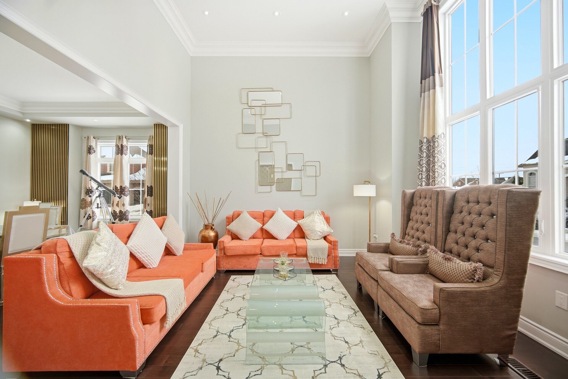 This is an absolute show-stopper in brampton's most prestigious community. Built by starlane, this "highland 5" model offers a massive 4,486 sq. Ft. As per mpac . The home features breathtaking 19' ceilings in the family room and 14' ceilings in the living room, creating an open and airy feel. The main floor has 10' smooth ceilings with beautiful hardwood floors that continue through the upper hallway and second floor with 9' ceilings. The custom chef's kitchen is a dream, complete with built-in stainless steel appliances, quartz countertops, a backsplash, and a large pantry. This home is fully loaded with modern comforts like a water softener, central vacuum, a full surveillance camera system, and a built-in sprinkler system. Outside, you'll find professional interlocking perfect for entertaining, along with elegant pot lights that make the home shine at night. Very bright home with huge windows premium corner lot and no sidewalk. As a huge bonus, the finished basement is already rented. This is a must see.