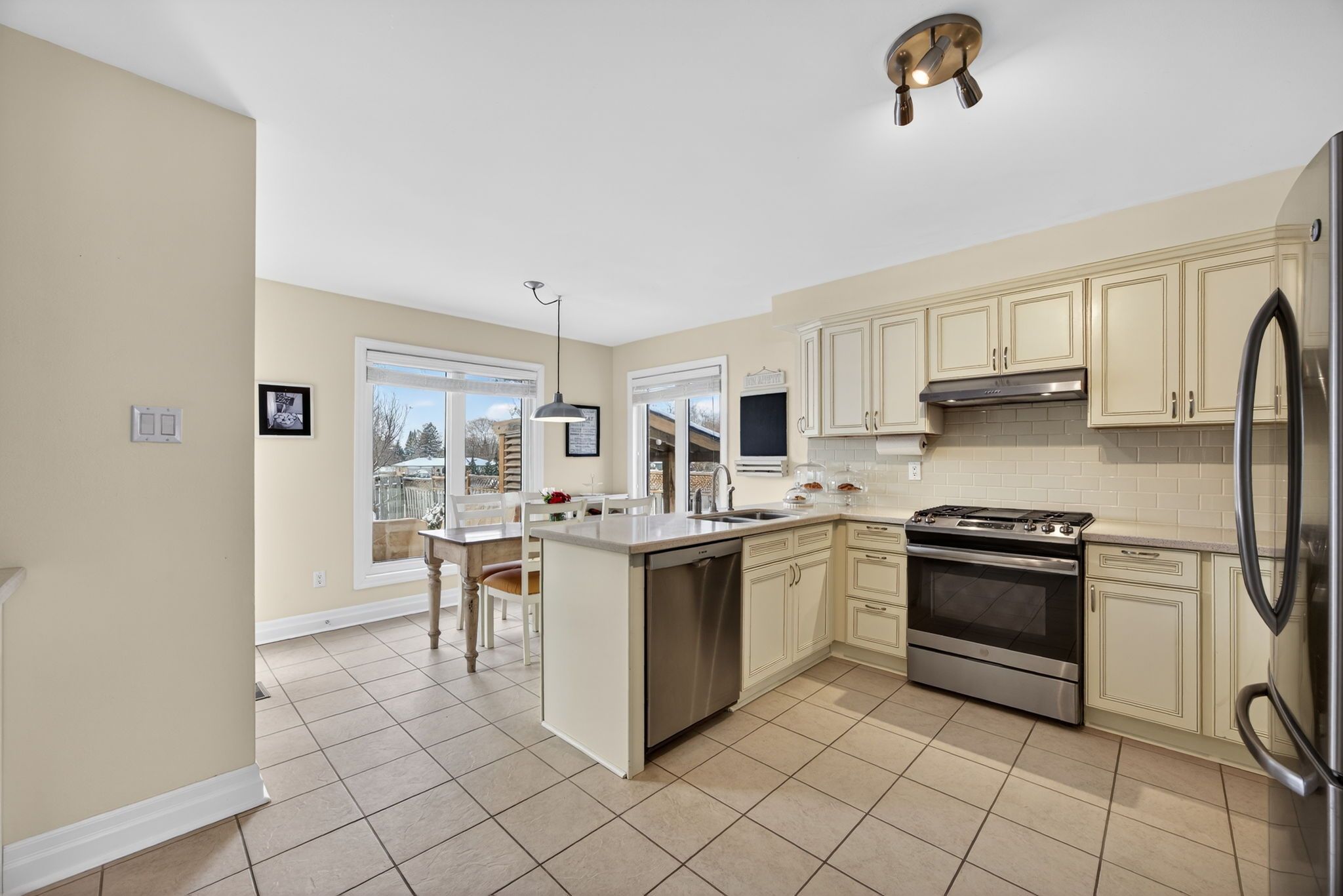 Welcome to 6 heritage rd, a warm and well-cared-for family home in one of cookstown's most established neighbourhoods. With ~1,860 sq. Ft. Above grade and a beautifully designed backyard retreat, this property offers space, comfort, and an ideal layout for family living. The main floor features a bright great room with light hardwood floors and a large picture window. The renovated kitchen includes granite counters, crown-molded cabinets, five-sided drawers, tile backsplash, undermount sink, and a spacious eat-in area with tall windows and a walkout to the deck. A separate family room with gas fireplace and built-ins provides a cozy second gathering space. The main floor also includes a convenient laundry room with cabinets, counter space, and direct access to the heated and insulated 2-car garage with 10-ft ceilings and a rear yard walkout, plus a 2-piece bath. The second floor offers 3 comfortable bedrooms and 2 full bathrooms, including a primary suite with two double-door closets and a 6-piece ensuite with soaker tub, separate tile shower, and double-sink vanity. Bedrooms 2 and 3 include hardwood floors, ceiling fans, and single-door closets, with a 4-piece main bath nearby. The finished basement adds flexible space with a 4th bedroom, large rec room with pot lights and a live-edge bar area, a 3-piece bath, and excellent storage including a cold/mechanical room with built-ins and a window. The west-facing backyard is a standout feature, offering sun and warmth throughout the day. Families will love the heated saltwater pool with multicolour lighting and a smart controller for easy maintenance. A ~15' x 19' deck, paver-stone patio, armour-stone steps, perennial gardens, and full fencing create a private space perfect for outdoor living, entertaining, and full-day enjoyment in the sun. Major updates include windows (2013), roof shingles (2018), and furnace and water tank (2024). Offers to be reviewed tuesday dec 9.