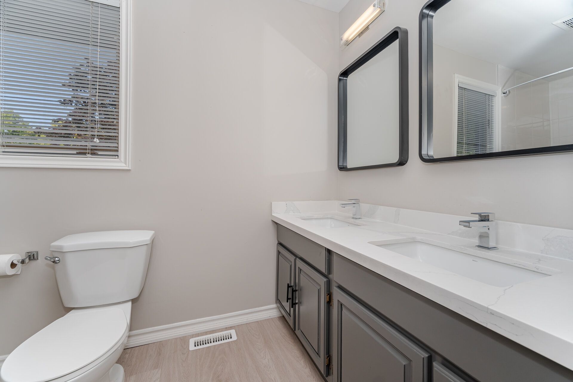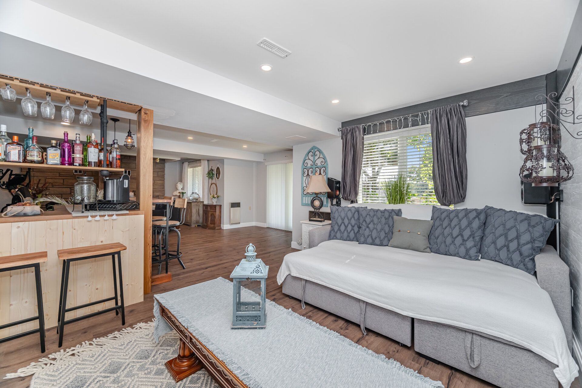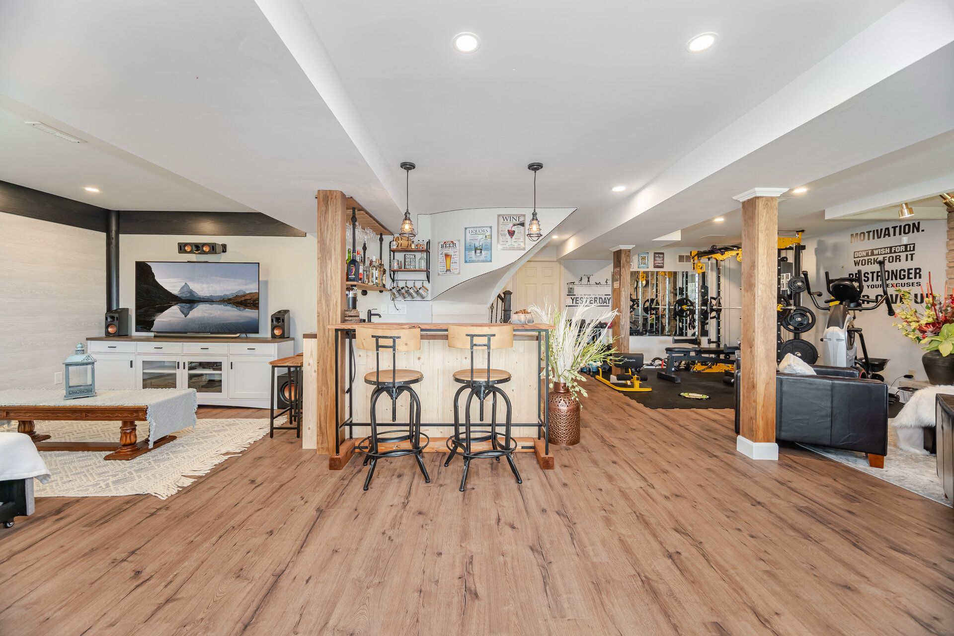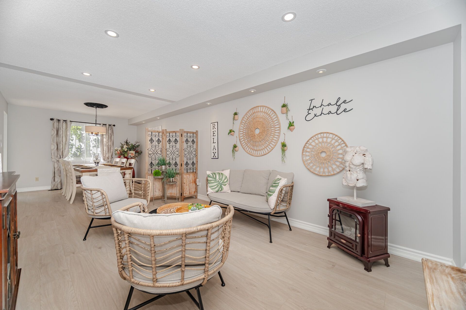 Welcome to holland landing, east gwillimbury's hidden gem! Nestled on a quiet crescent in a peaceful, family- village known for its strong sense of community, abundant parks, excellent schools, and the picturesque east holland river with surrounding trails. This beautifully updated 4-bedroom, 3-bath, 2-storey home is move-in ready. Stepping into this beautiful home you are greeted by a gorgeous foyer with new laminate floors and an updated staircases with wrought-iron spindles. The bright and spacious combined living/dining room perfect for entertaining. As the weather gets cooler, snuggle up in the cozy family room in front of the wood burning fireplace. The main floor also features a renovated powder room and laundry for modern convenience. The eat-in kitchen boasts brand-new stainless-steel appliances, a 5-stage reverse-osmosis filter and new sliding doors to a huge private deck perfect for gatherings, lounging, and evenings by the fire pit. Upstairs, engineered hardwood floors lead to a large primary suite with walk-in closet and 3-piece ensuite, plus three additional bedrooms. The fully renovated basement is a standout feature complete with 6" wide-plank laminate floors, a walkout to the backyard, wet bar, bathroom rough-in with working toilet, and replaced sliders. It also includes a fully equipped home gym, and all gym equipment is included with the sale, making it an ideal space for both fitness and relaxation. Notable updates include a 2025 roof, new garage door and opener, new front door, owned hot water tank, carbon filters, and whole-home water filtration system, ensuring comfort and peace of mind. Don't miss this opportunity to own a meticulously cared-for home in one of east gwillimbury's most desirable communities!
