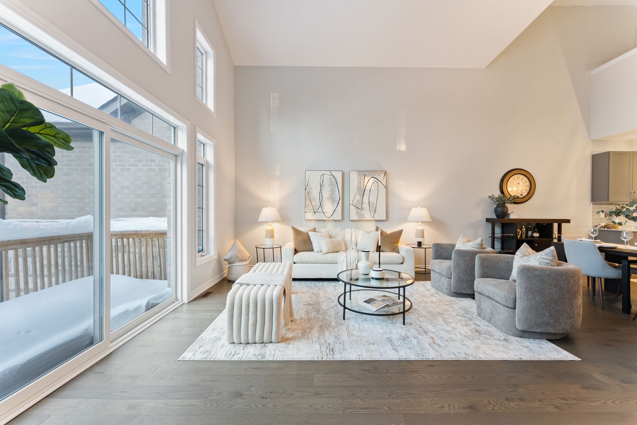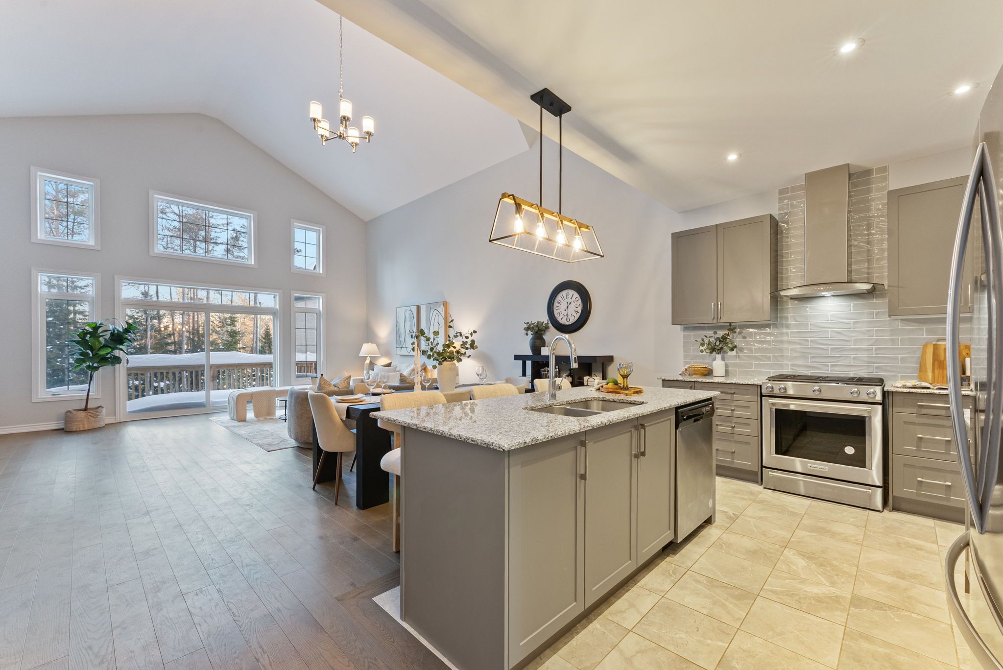 • Bright great room with dramatic 20-foot cathedral ceiling.
