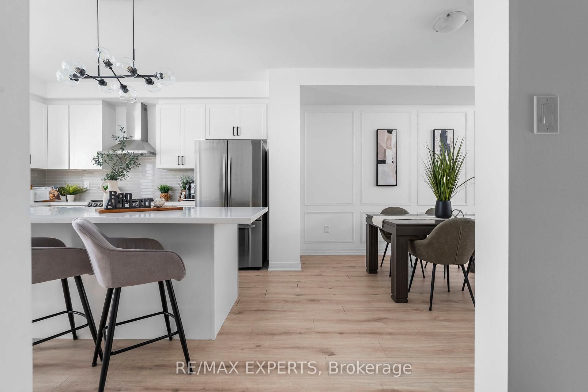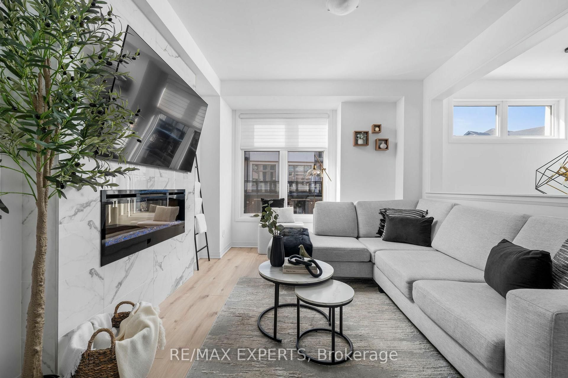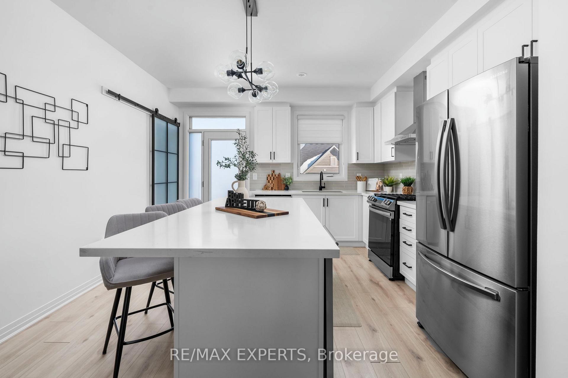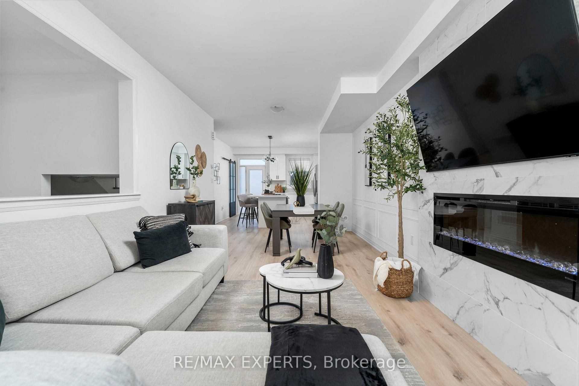 Welcome to 6 hughes lane, a magazine-worthy townhome where no detail was overlooked. This stunning 3-storey freehold townhouse offers approximately 1,730 sq ft of thoughtfully designed living space, featuring 3 spacious bedrooms plus a versatile bonus room currently used as a home office. Whether you need a home gym, a gamer's room, or extra storage, the choice is yours. Every inch of this home has been upgraded with quality finishes you'd expect in a custom build. The living room is anchored by a show stopping floor-to-ceiling marble tile accent wall with a sleek electric fireplace, creating the kind of focal point you don't forget. The kitchen features tall white cabinetry with black hardware, stone countertops, a large island with bar seating, stainless steel appliances, and designer pendant lighting throughout. Even the laundry room was finished to the same standard, complete with upper cabinetry, hexagon tile, and a stone folding counter. The clean, modern palette flows seamlessly from room to room, and with private patio access on each floor, this home is sun-filled from top to bottom. The open-concept main floor is perfect for entertaining family and friends, and inside garage access makes everyday coming and going that much more convenient. Situated in the heart of tottenham, one of simcoe county's fastest-growing and most family-friendly communities. You're walking distance to a brand new school, a large neighbourhood park, scenic walking trails, and all your everyday amenities. Small town living where you actually know your neighbours. That's getting hard to find. The monthly potl fees cover all exterior maintenance and grounds keeping, giving you that clean feel without the weekend honey-do list.