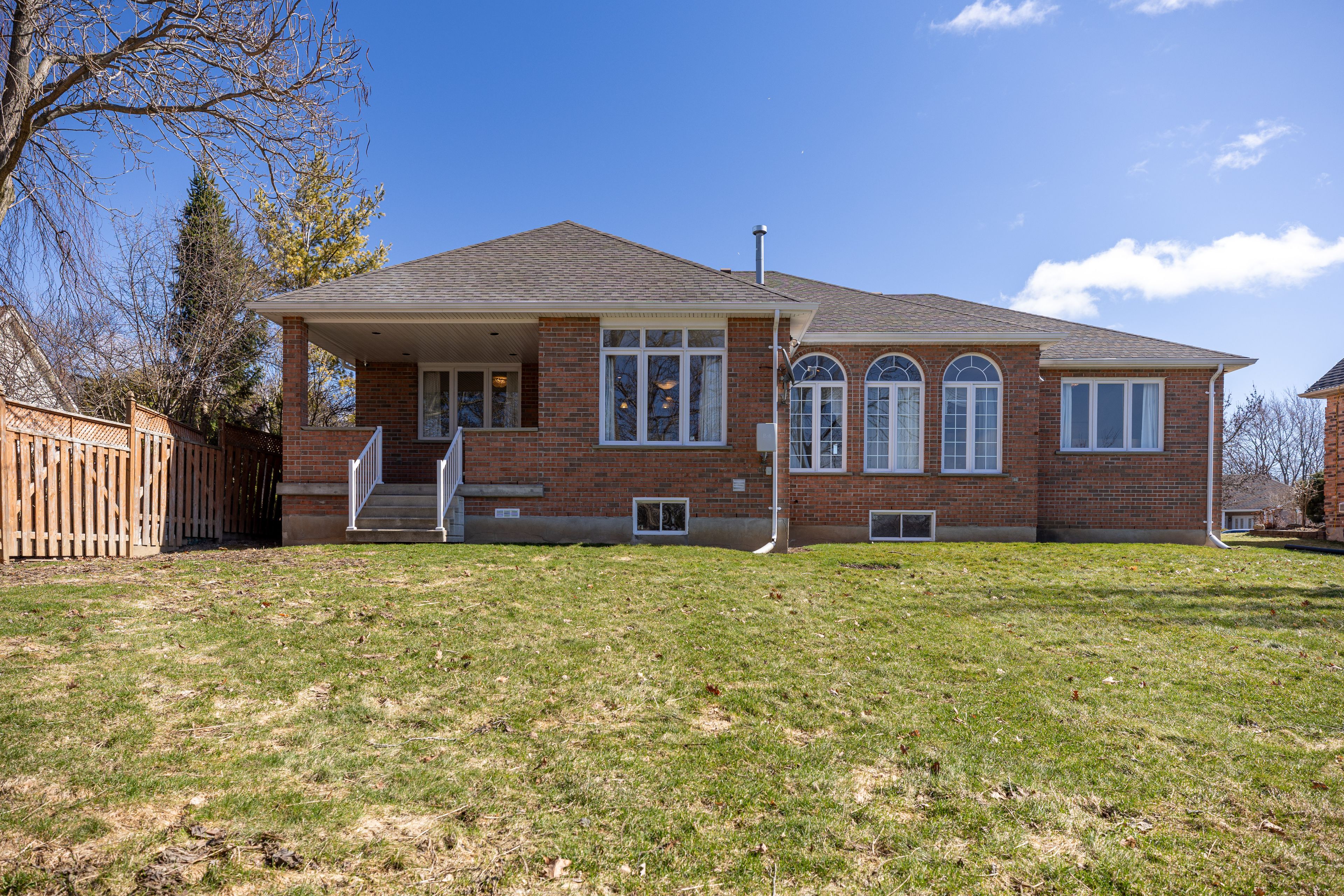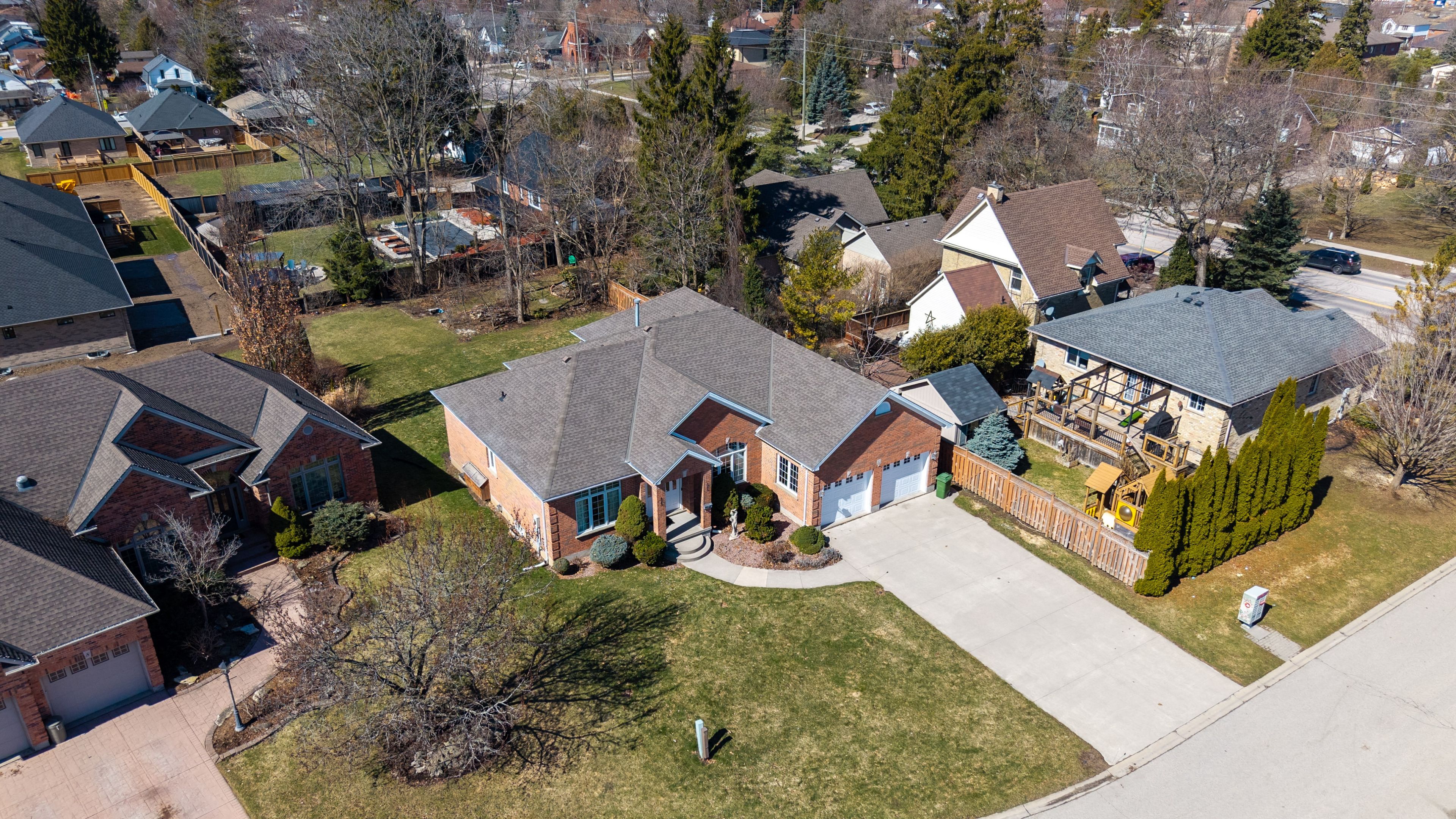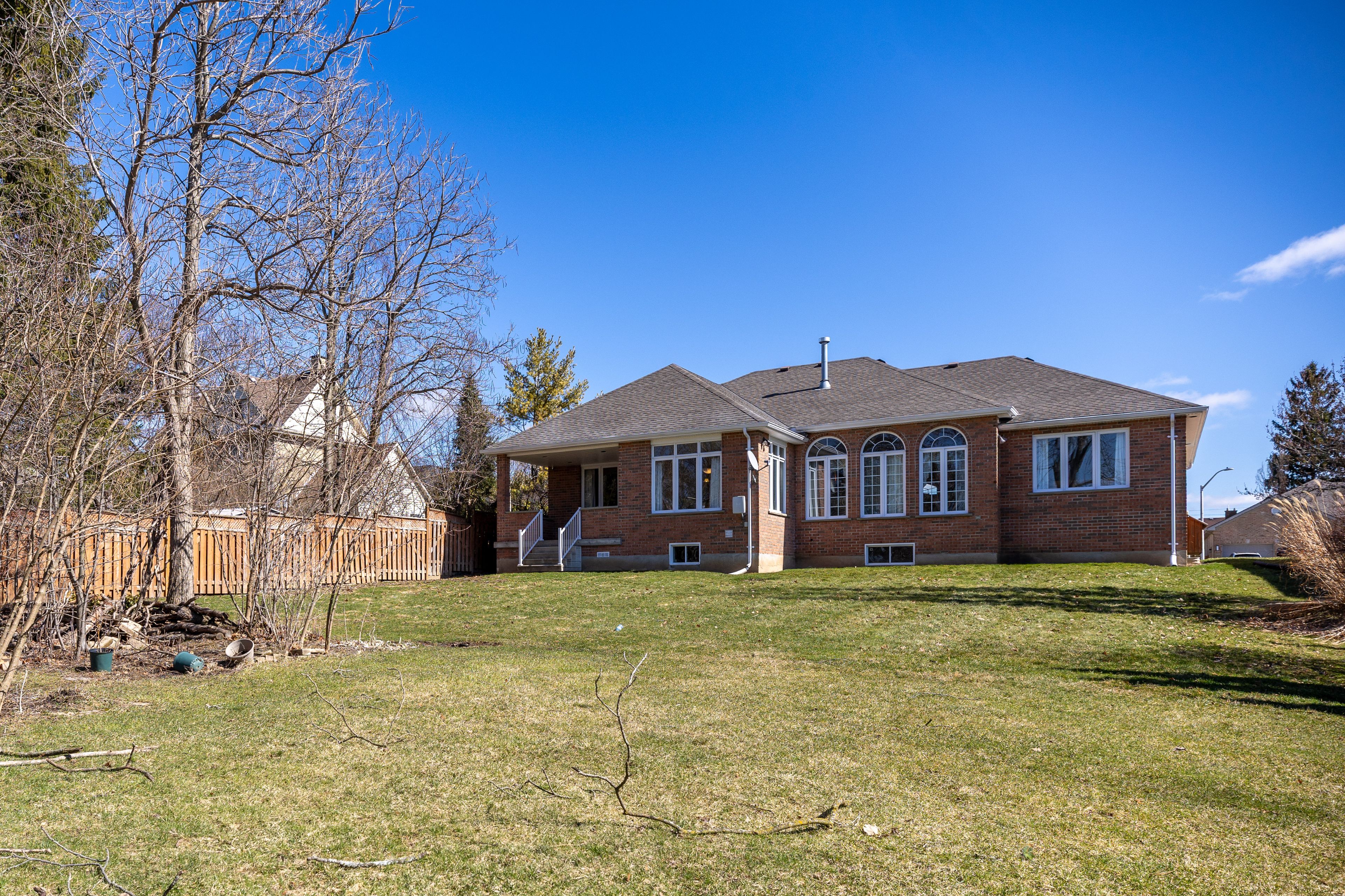 Welcome to this impressive all-brick executive bungalow offering approximately 2,300 sq ft on the main level plus a beautifully finished lower level, delivering nearly over 4,500 sq ft of total living space. This spacious home features 3+1 bedrooms and 3 full bathrooms, designed for both elegant living and everyday comfort. Step inside to soaring 10-foot ceilings, maple hardwood floors, oversized windows, with transoms that flood the home with natural light and create a bright, open atmosphere throughout the main level. The thoughtfully designed layout includes an inviting living room anchored by a stunning gas fireplace, a large formal dining room perfect for entertaining, a generous eat-in kitchen with hard-surface countertops, a large pantry, and a breakfast bar area. Convenient main floor laundry adds to the home's practicality. The primary suite offers a private retreat with a walk-in closet and a luxurious 4-piece ensuite bath. The fully finished lower level provides exceptional additional living space featuring a large recreation room with a gas fireplace and wet bar, an entertaining area, a den/craft room, along with an additional bedroom, a full bathroom, 2 cold rooms and a second full kitchen. This is an ideal setup for an in-law suite or multigenerational living. Situated on a quiet terrace in a desirable location, this home offers close proximity to shopping with easy access to port stanley and london, making it ideal for those seeking both convenience and lifestyle. Outside, enjoy the partially fenced yard, large double concrete driveway with parking for 6, oversized double car garage and rear covered porch with a gas bbq hookup. Additional features & updates, furnace (2018), central air (2012), roof (2013), fresh air exchanger system, owned water heater. A rare opportunity to own a spacious executive bungalow offering nearly 4,500 sq ft and has in-law capabilities, located in a peaceful yet convenient location.