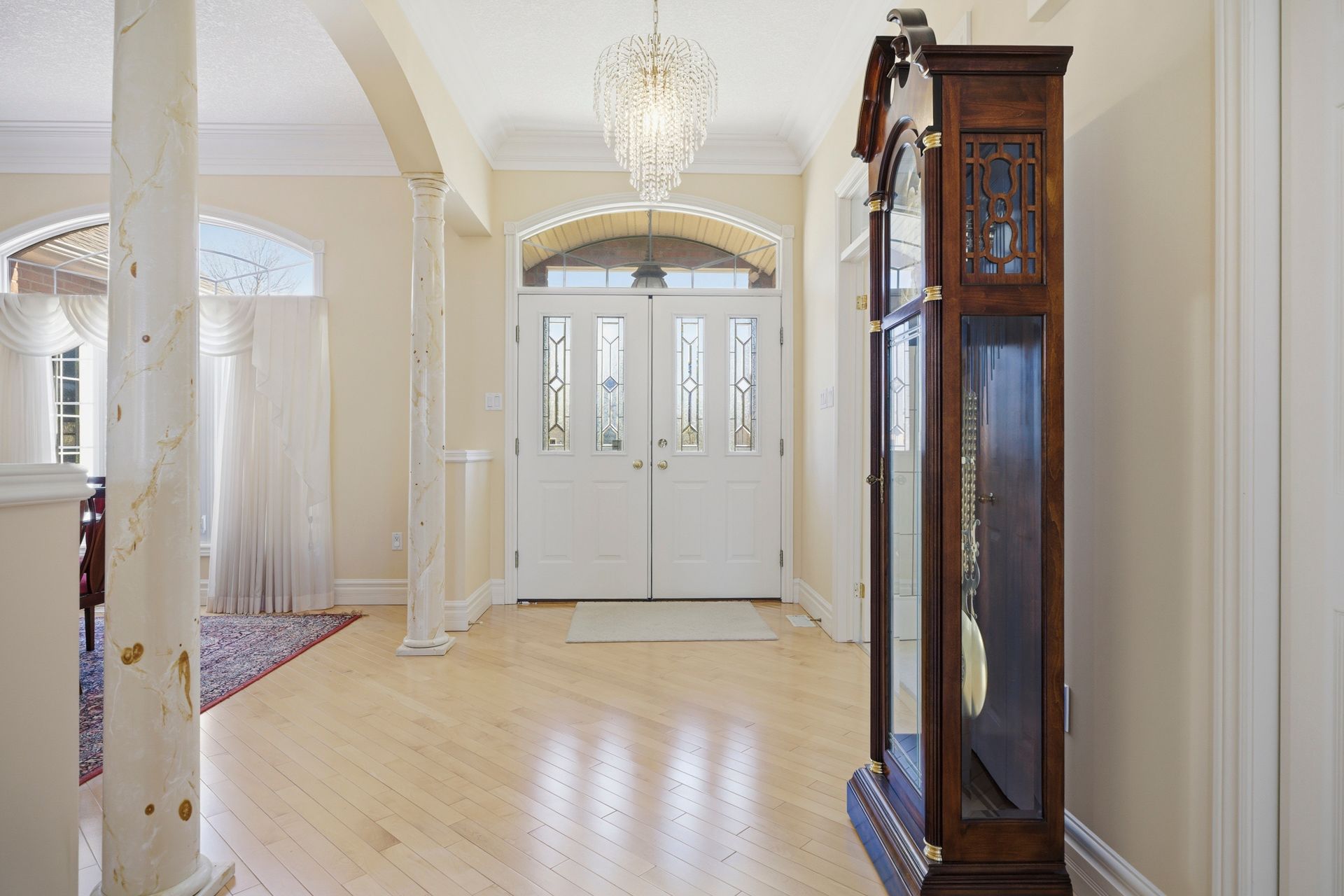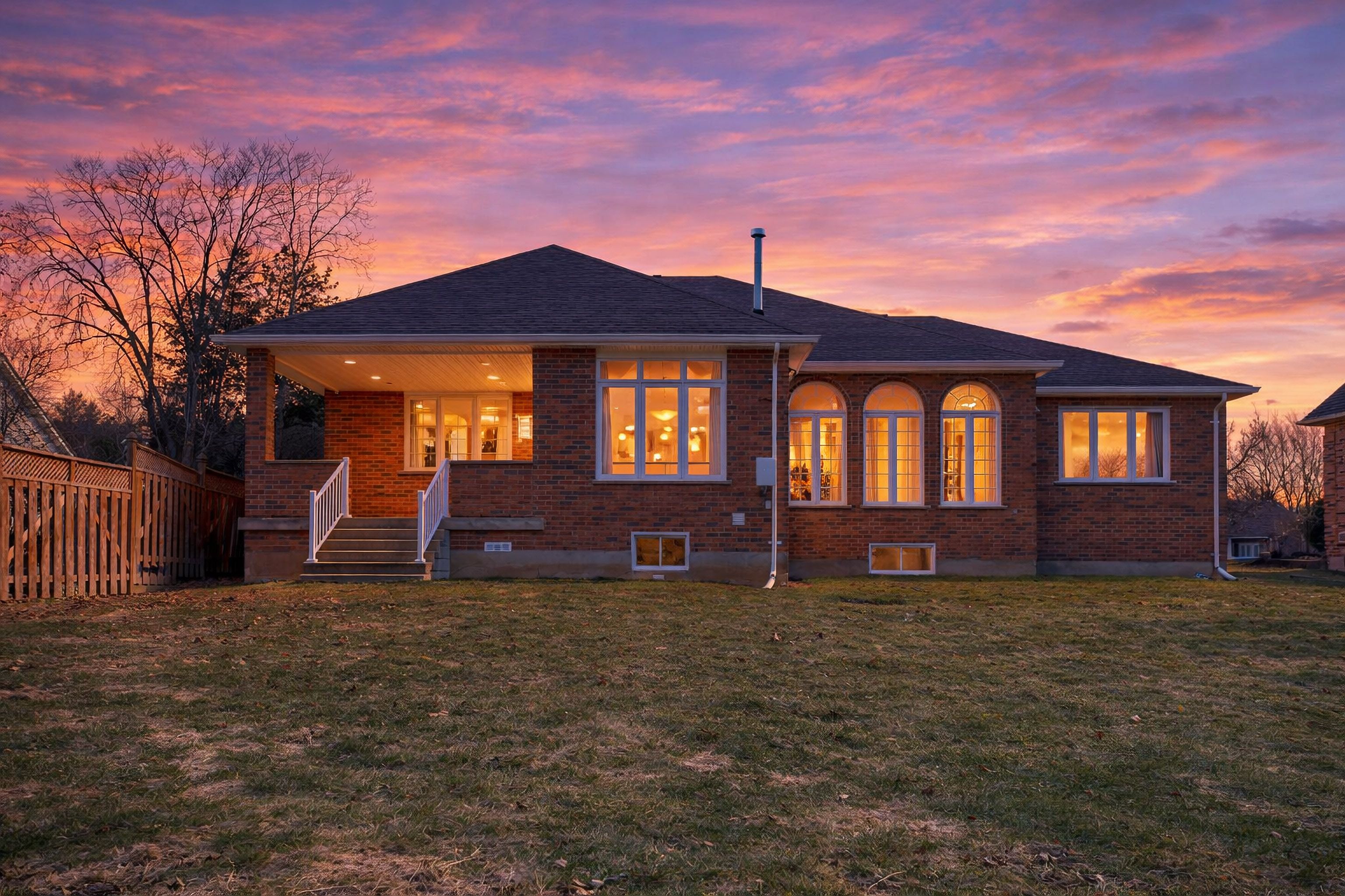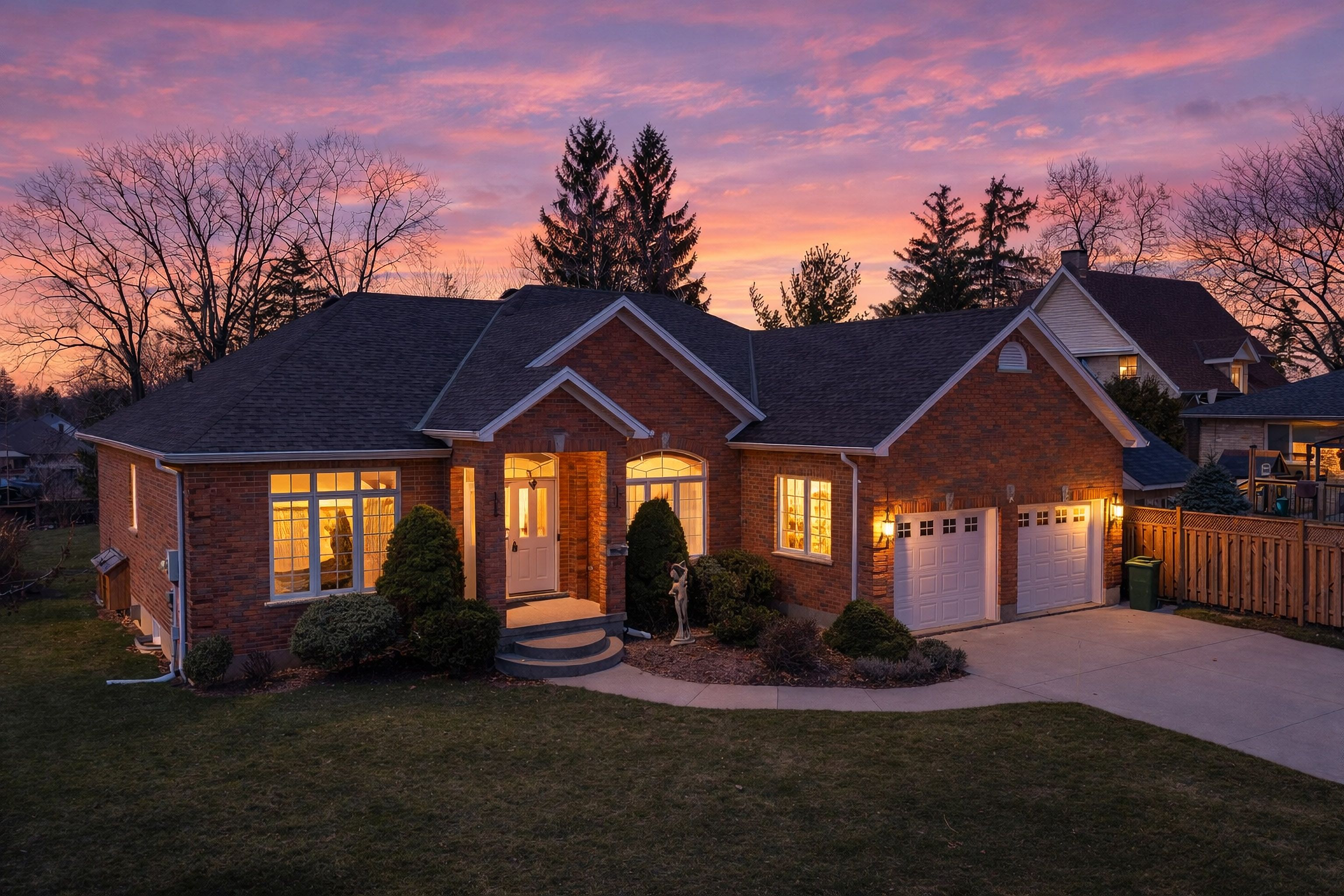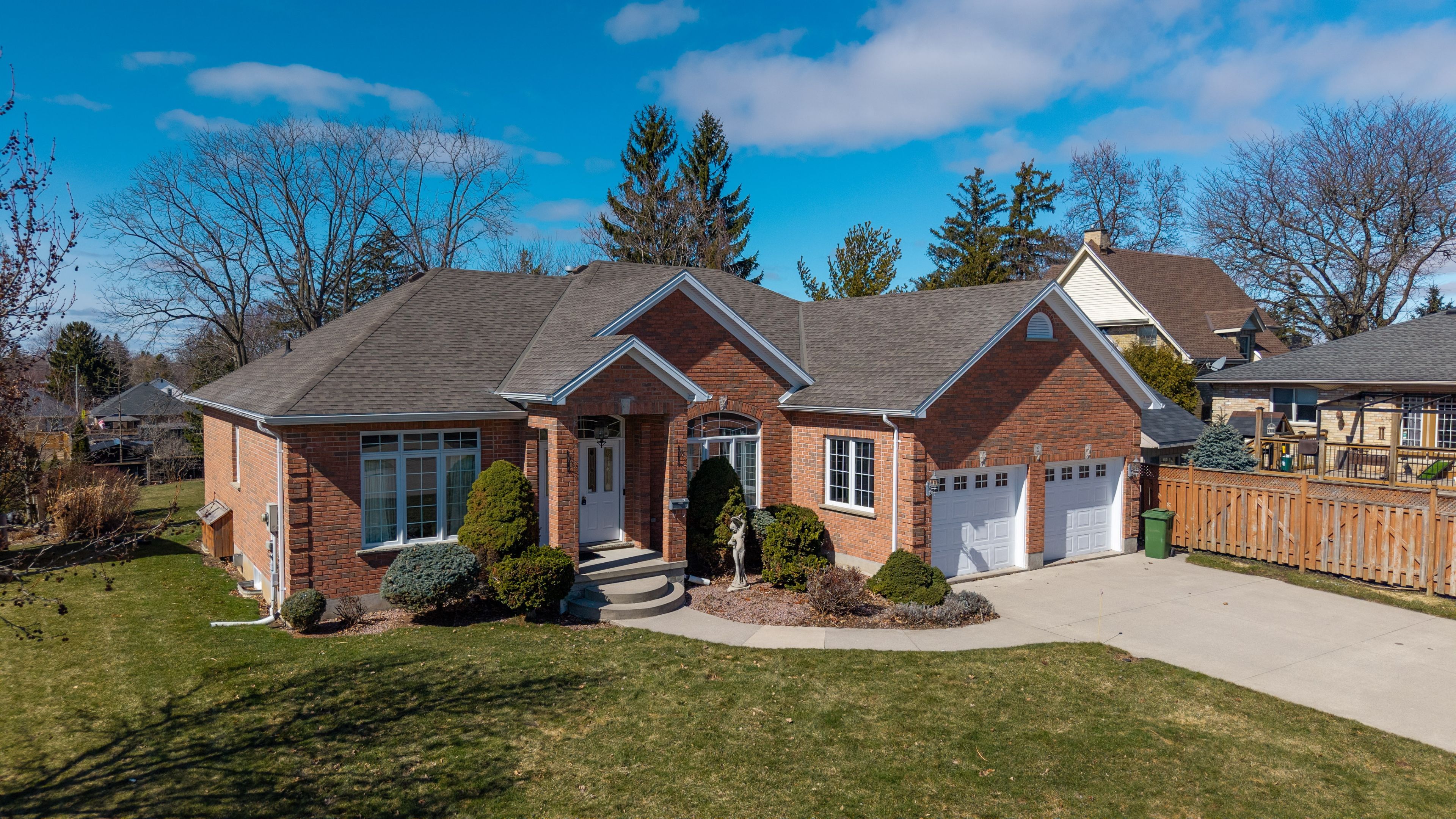 Welcome to this impressive all-brick executive bungalow offering approximately 2,300 sq ft on the main level plus a beautifully finished lower level, delivering nearly over 4,500 sq ft of total living space. This spacious home features 3+1 bedrooms and 3 full bathrooms, designed for both elegant living and everyday comfort. Step inside to soaring 10-foot ceilings, maple hardwood floors, oversized windows, with transoms that flood the home with natural light and create a bright, open atmosphere throughout the main level. The thoughtfully designed layout includes an inviting living room anchored by a stunning gas fireplace, a large formal dining room perfect for entertaining, a generous eat-in kitchen with hard-surface countertops, a large pantry, and a breakfast bar area. Convenient main floor laundry adds to the home's practicality. The primary suite offers a private retreat with a walk-in closet and a luxurious 4-piece ensuite bath. The fully finished lower level provides exceptional additional living space featuring a large recreation room with a gas fireplace and wet bar, an entertaining area, a den/craft room, along with an additional bedroom, a full bathroom, 2 cold rooms and a second full kitchen. This is an ideal setup for an in-law suite or multigenerational living. Situated on a quiet terrace in a desirable location, this home offers close proximity to shopping with easy access to port stanley and london, making it ideal for those seeking both convenience and lifestyle. Outside, enjoy the partially fenced yard, large double concrete driveway with parking for 6, oversized double car garage and rear covered porch with a gas bbq hookup. Additional features & updates, furnace (2018), central air (2012), roof (2013), fresh air exchanger system, owned water heater. A rare opportunity to own a spacious executive bungalow offering nearly 4,500 sq ft and has in-law capabilities, located in a peaceful yet convenient location.
