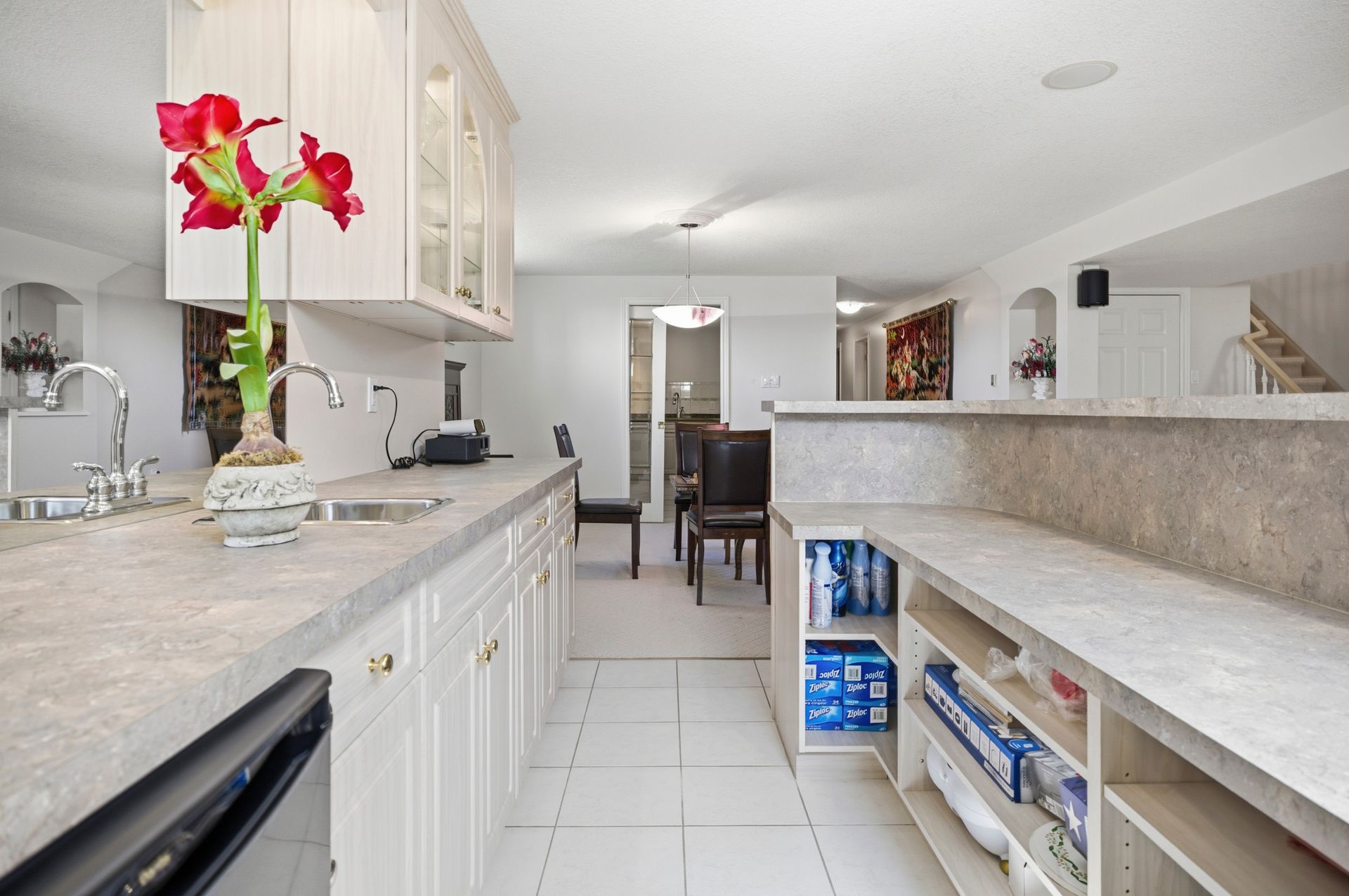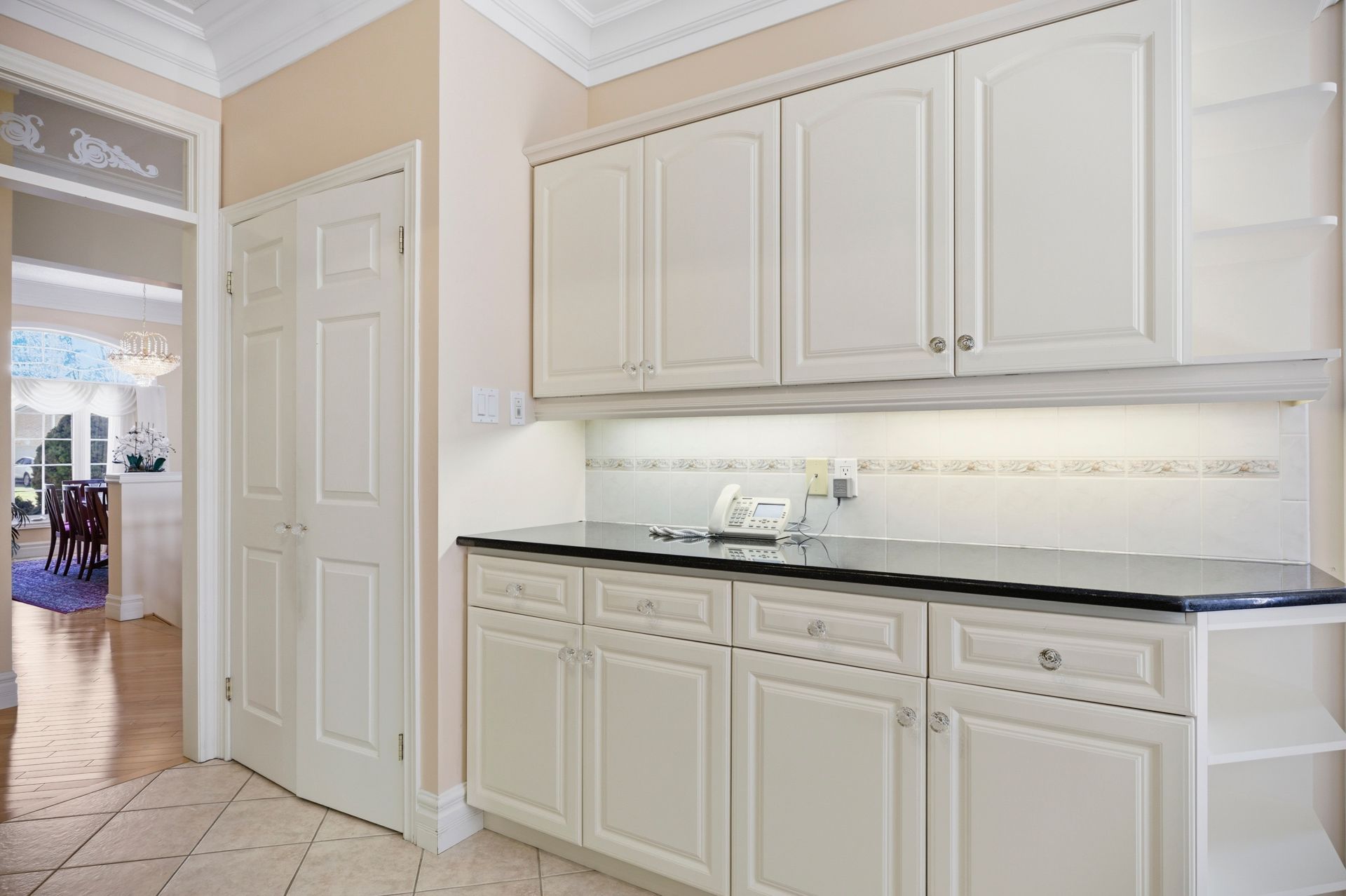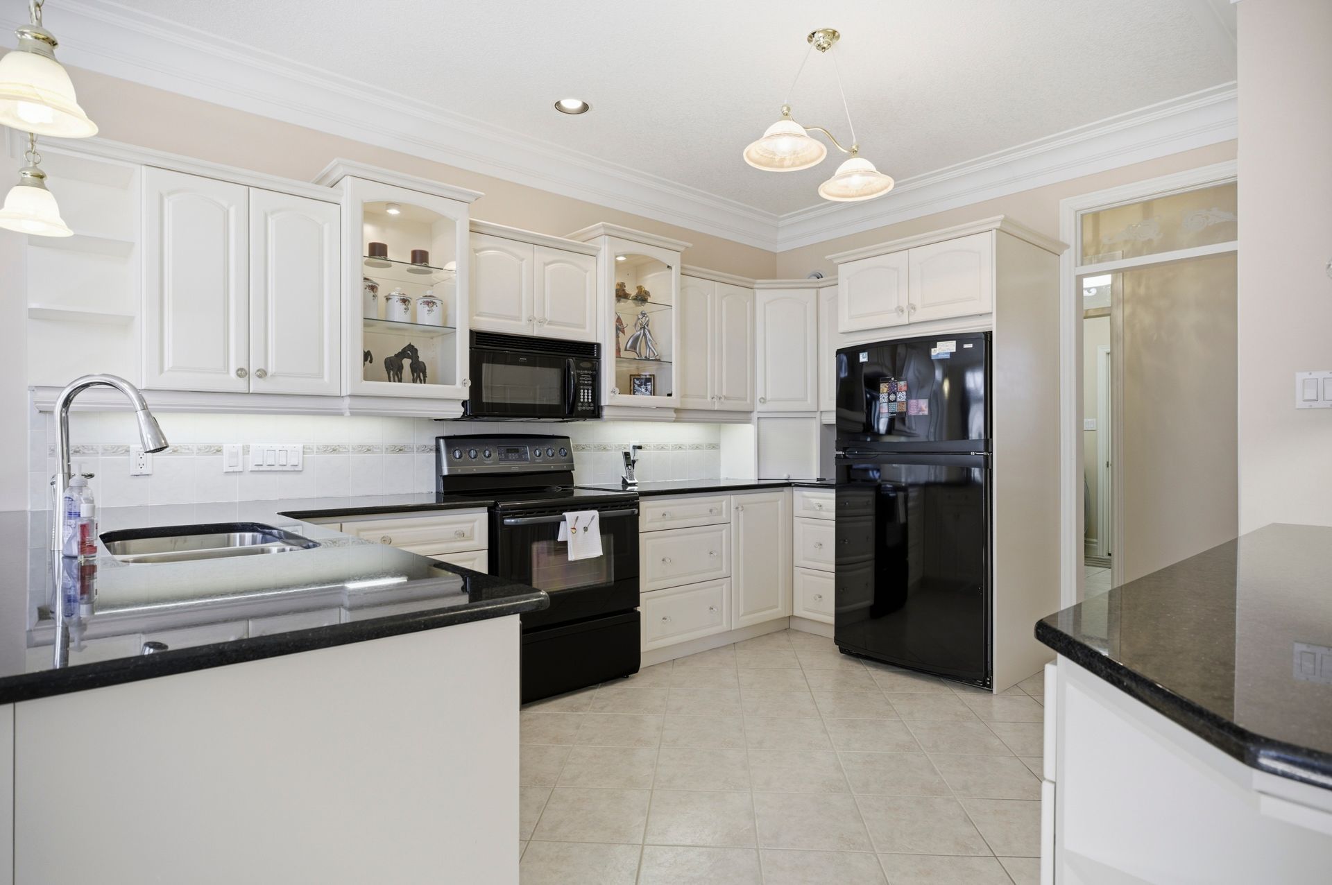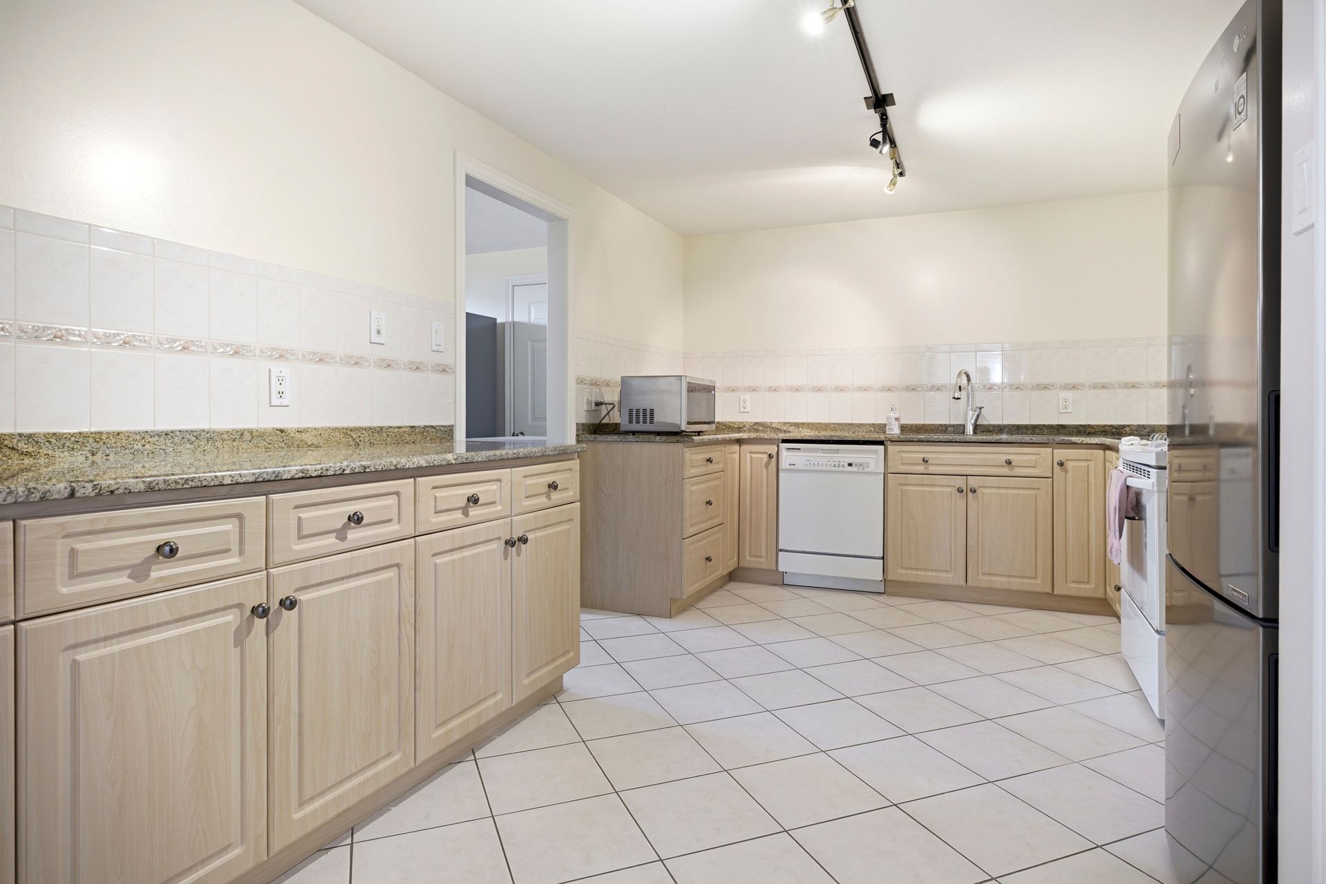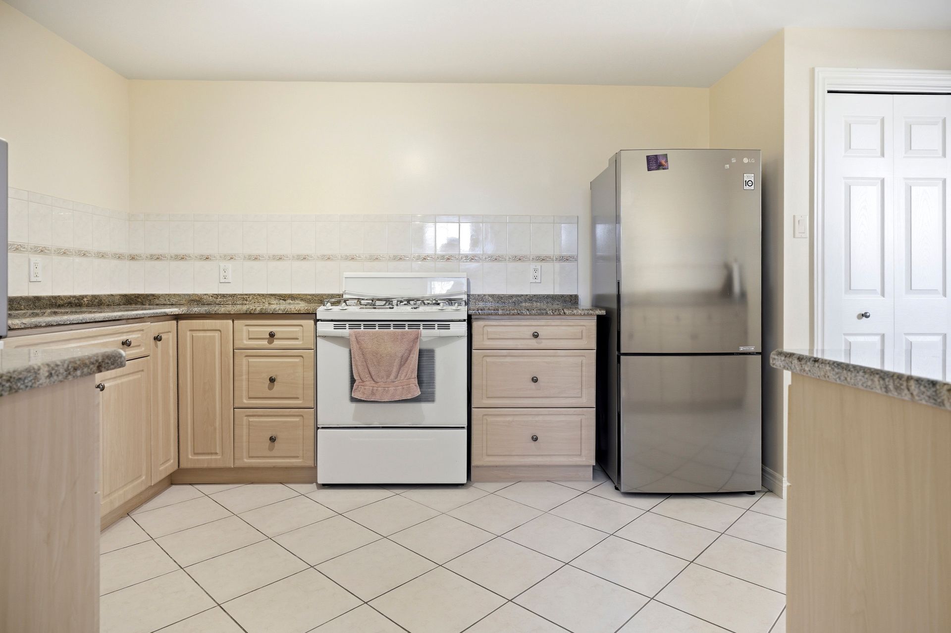 • Generous eat-in kitchen with hard-surface countertops and pantry.