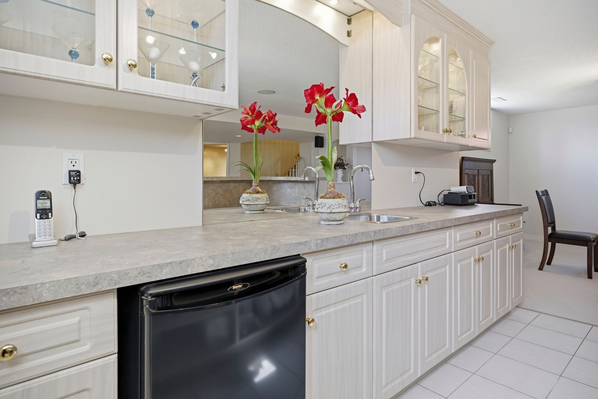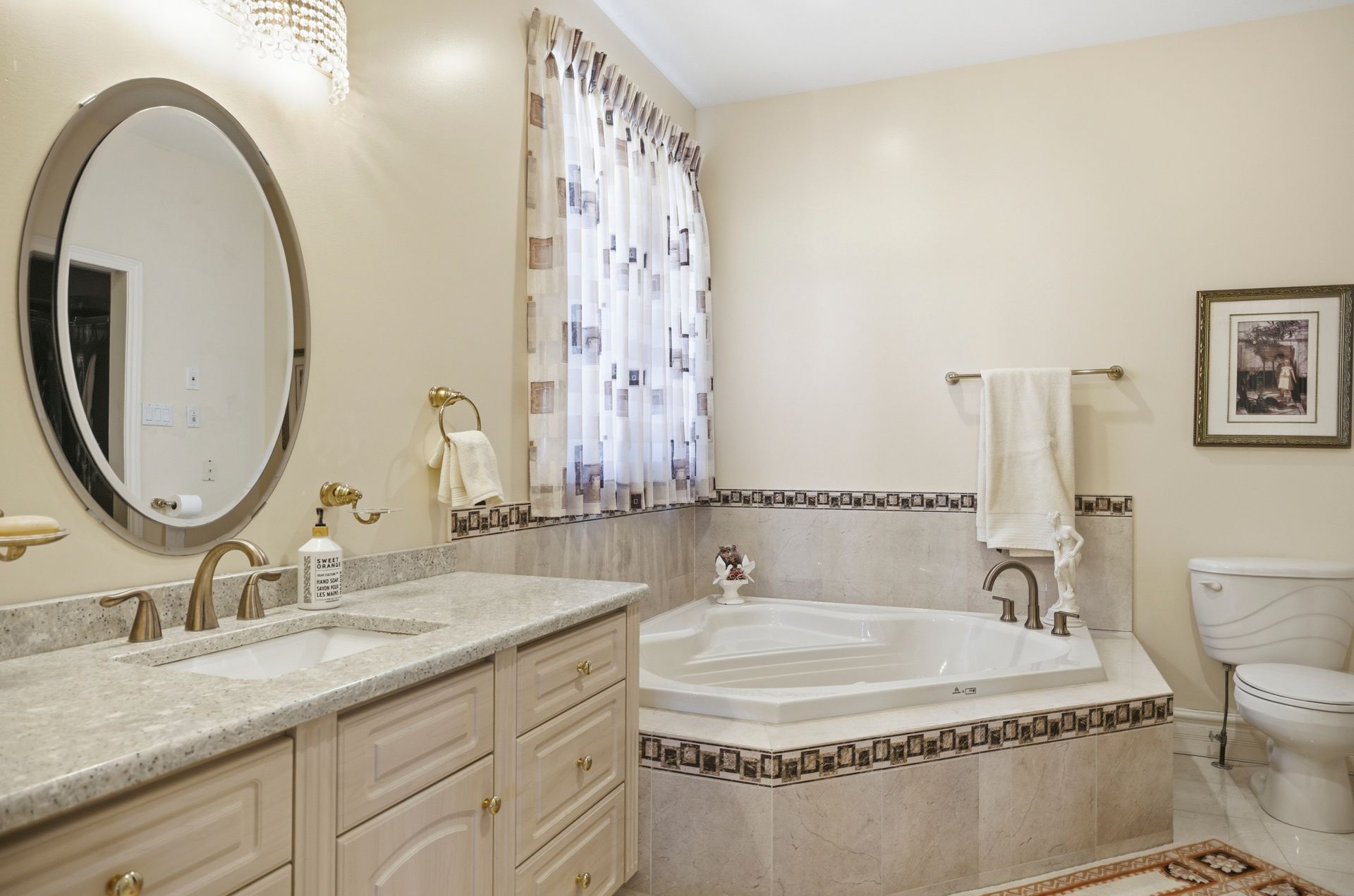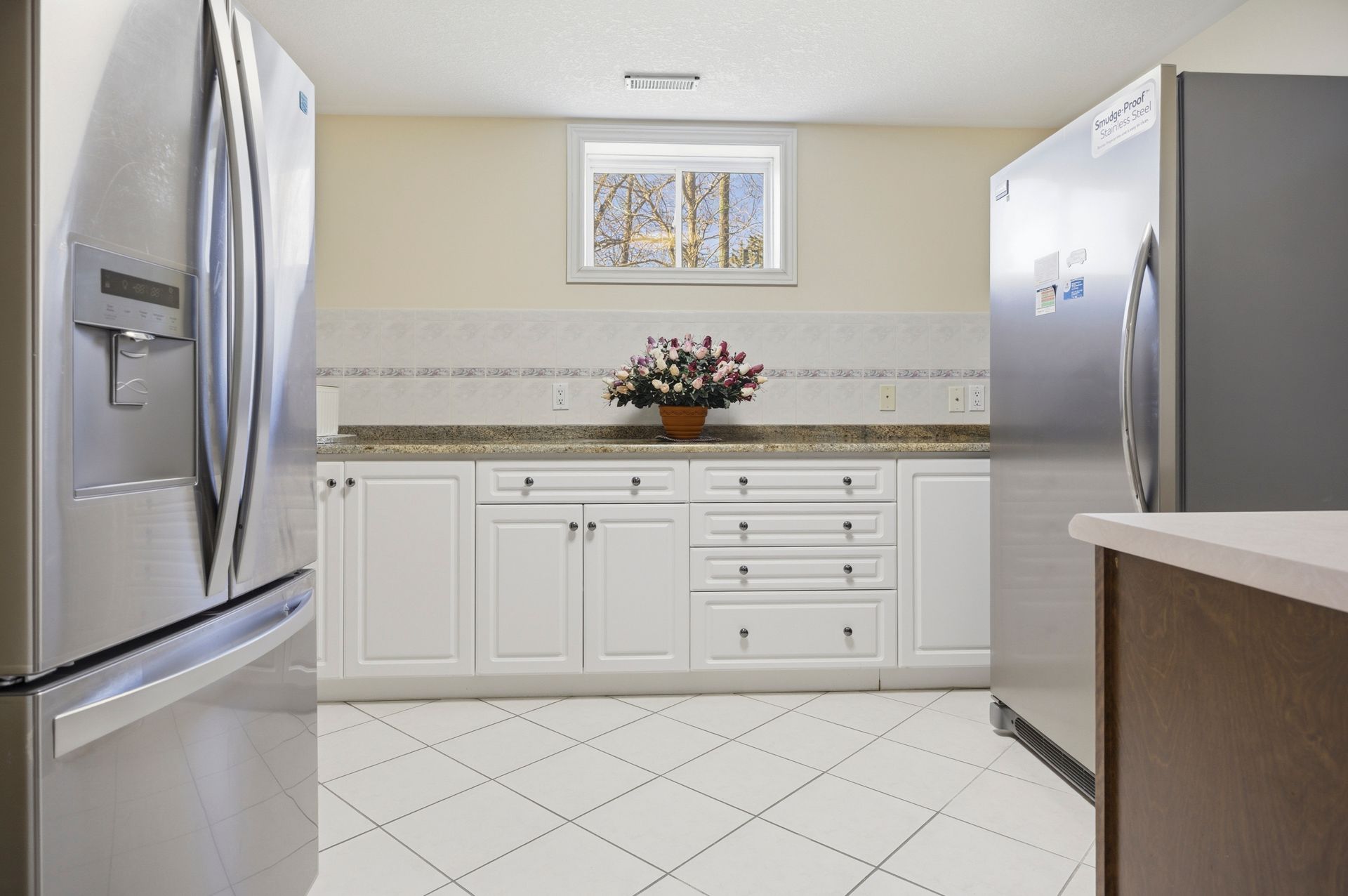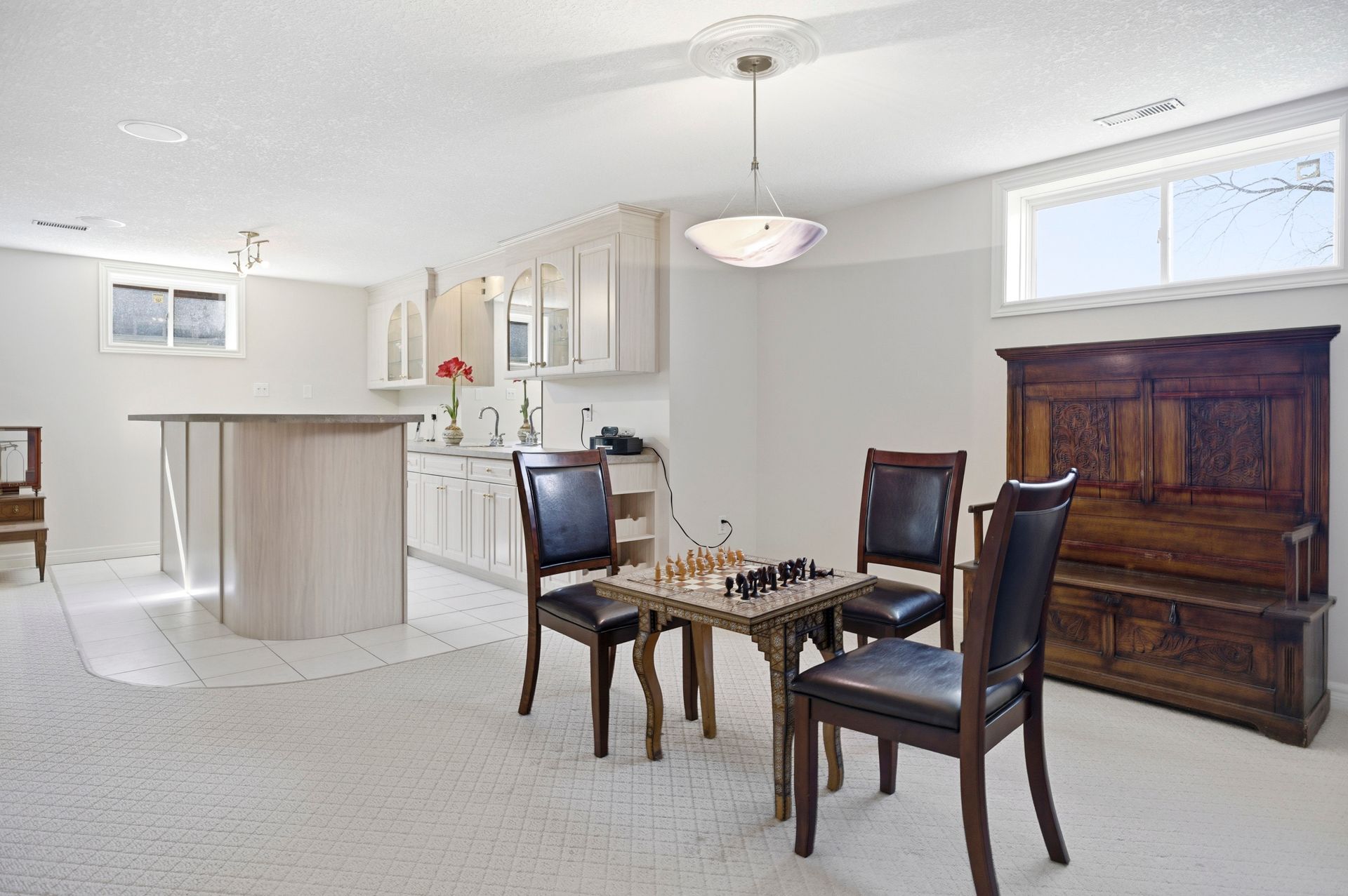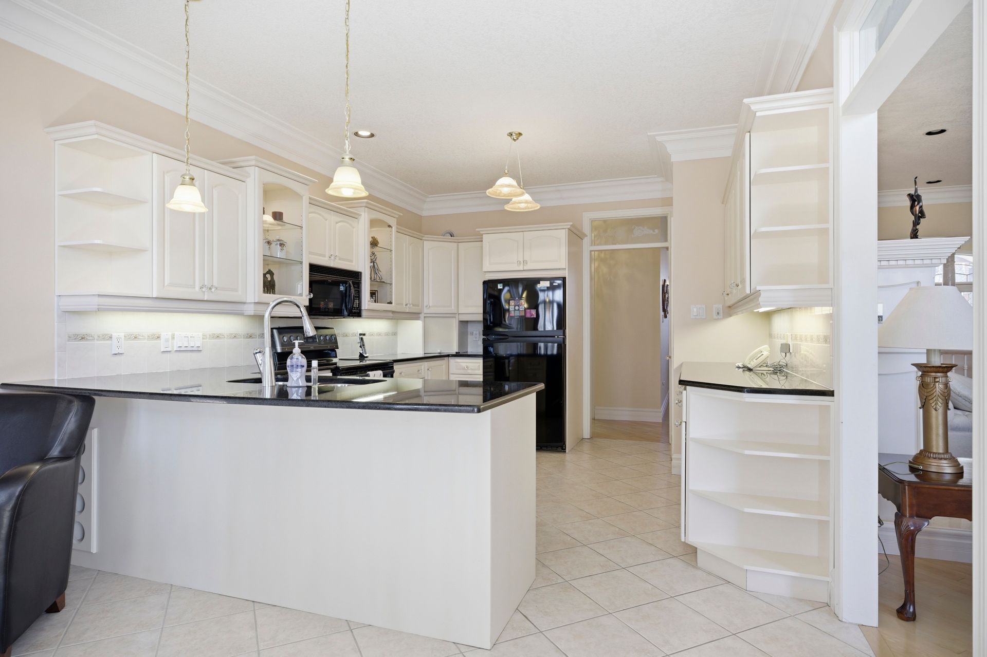 • Generous eat-in kitchen with hard-surface countertops and pantry.