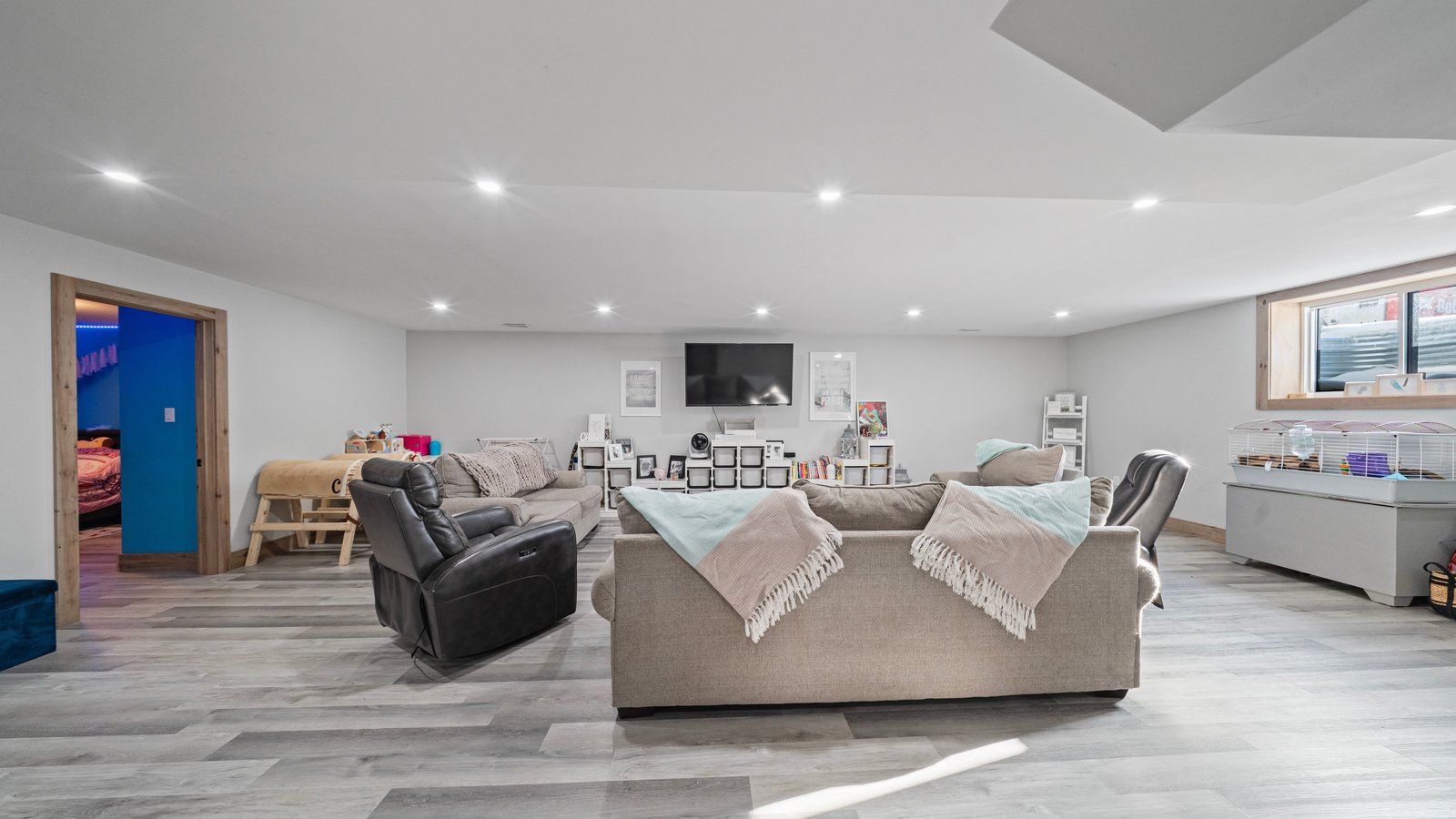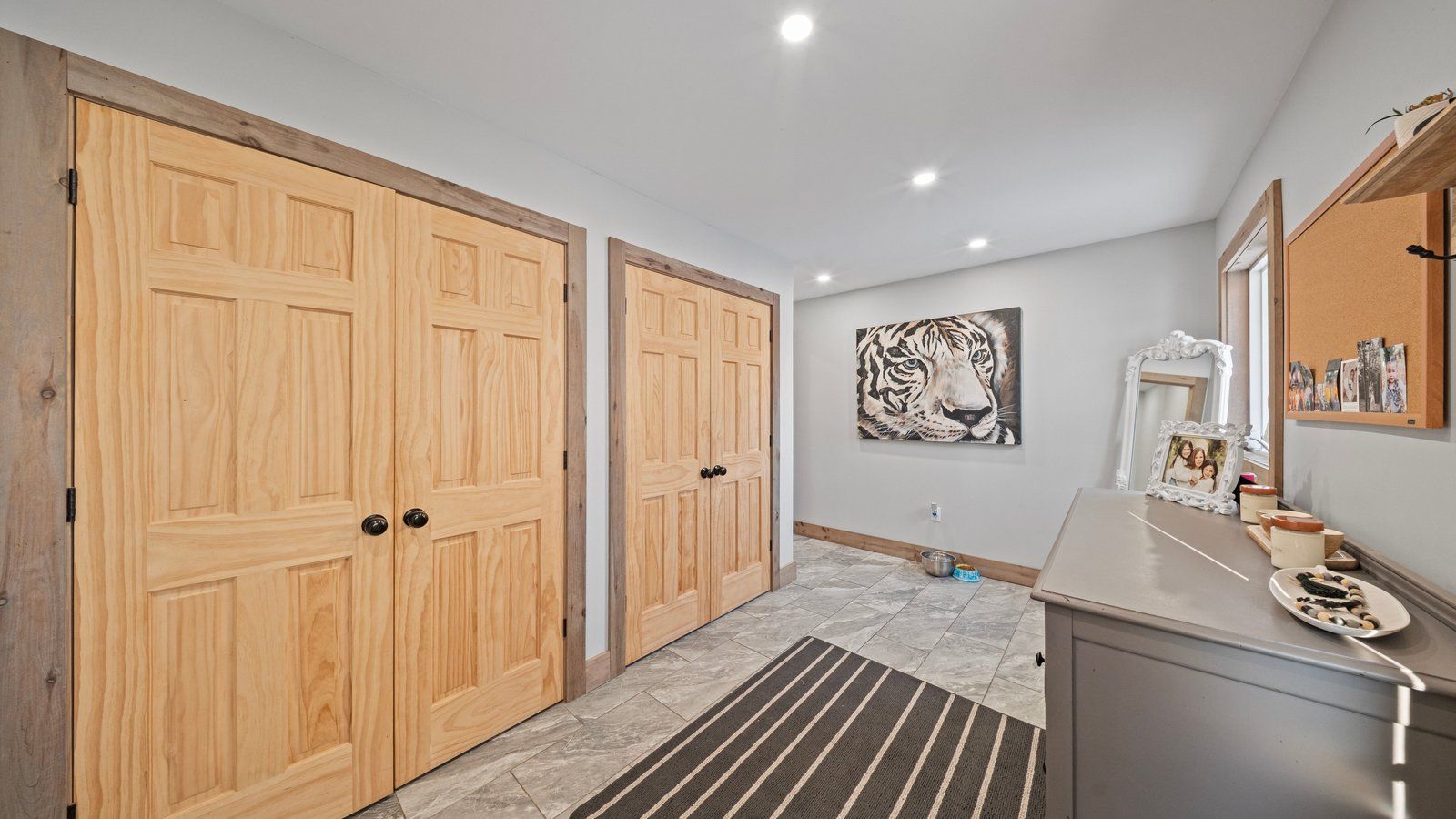 • Finished lower level includes a rec room and three additional bedrooms.