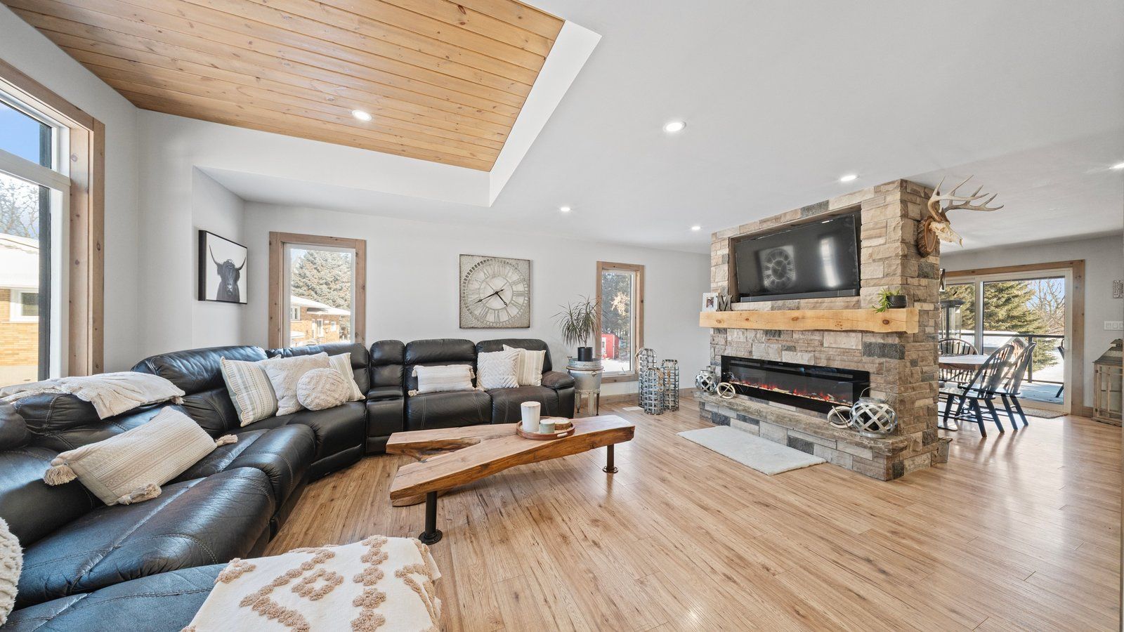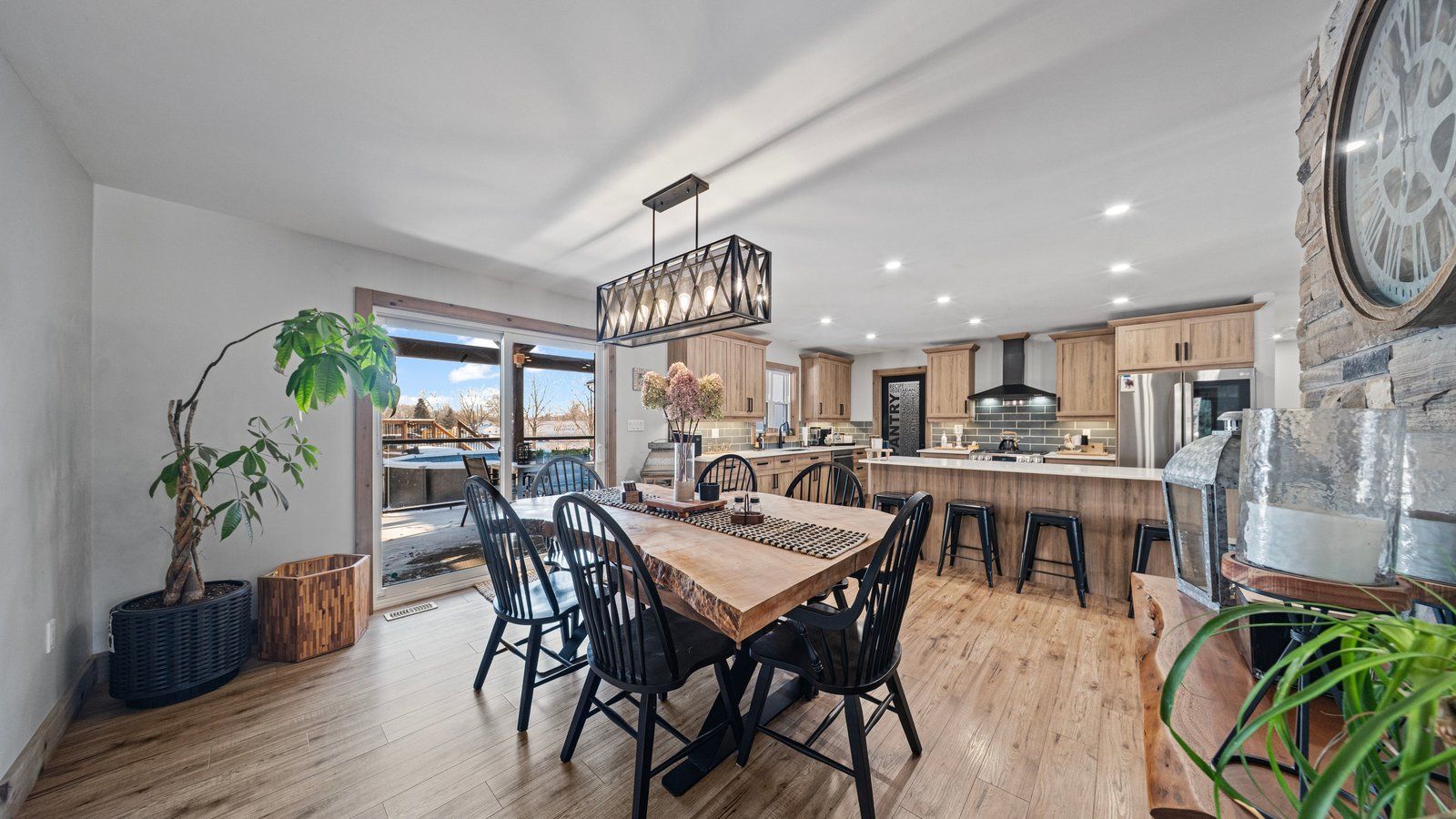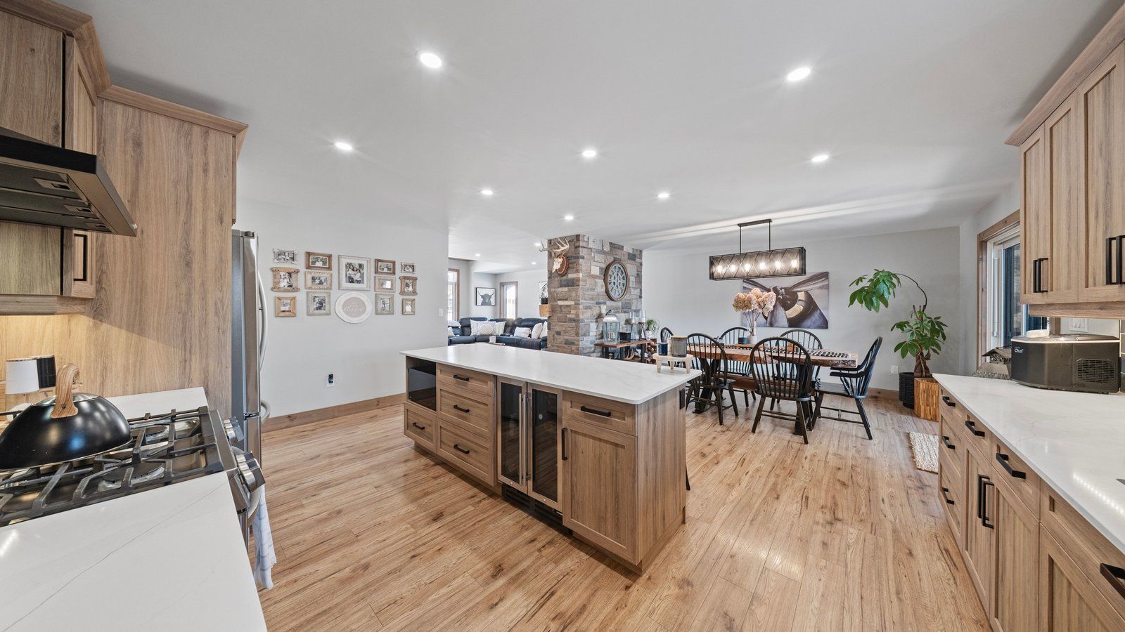 • Open-concept layout with a spacious kitchen, dining, and living areas.