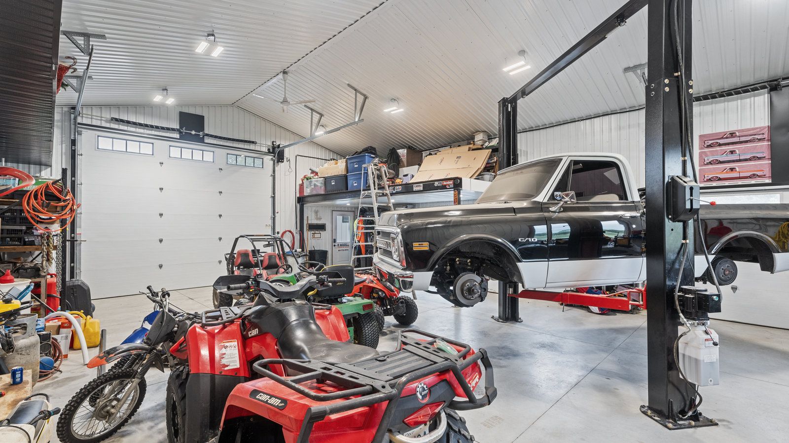 • Large heated shop ideal for hobbies or business needs with utilities included.