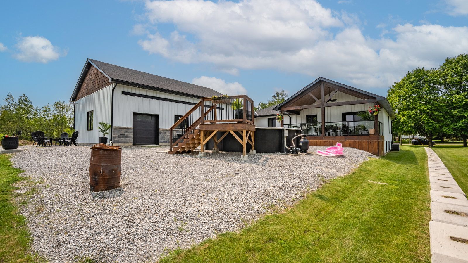 Looking for custom country living with a designer touch? Then 6 kings lane in scotland is your dream home! Step into your own slice of country paradise in this impeccably designed 2022 custom bungalow, nestled on nearly an acre in the peaceful and family-friendly community of scotland. With a warm, modern farmhouse feel and every detail thoughtfully curated, this home offers the perfect blend of luxury, comfort, and functionality. Featuring 4 spacious bedrooms (1 up, 3 down), 2. 5 bathrooms, and over 2,800 sq ft of finished living space, this home is designed for how families live today. On the main floor, enjoy a light-filled open-concept layout anchored by a dream kitchen with sleek appliances, expansive island seating, and rich wood cabinetry that flows beautifully into the dining and living areas. Retreat to the main-floor primary suite, complete with a stunning spa-inspired ensuite and a large walk-in closet-your own private oasis. Downstairs, the fully finished lower level expands your lifestyle with a generous rec room, three additional bedrooms, and a well-appointed bathroom featuring three vanities and a private water closet with a toilet and shower-perfect for busy mornings or hosting guests. Outside, enjoy your own backyard retreat with an above-ground pool, ample yard space, and scenic country views. And for those needing more than just a garage-prepare to be impressed: the 30' x 40' heated shop is fully equipped with hydro, water, and a car hoist, making it ideal for entrepreneurs, trades, or serious hobbyists. A rare find that combines modern luxury with small-town charm, 6 kings lane is everything you've been waiting for - and more.