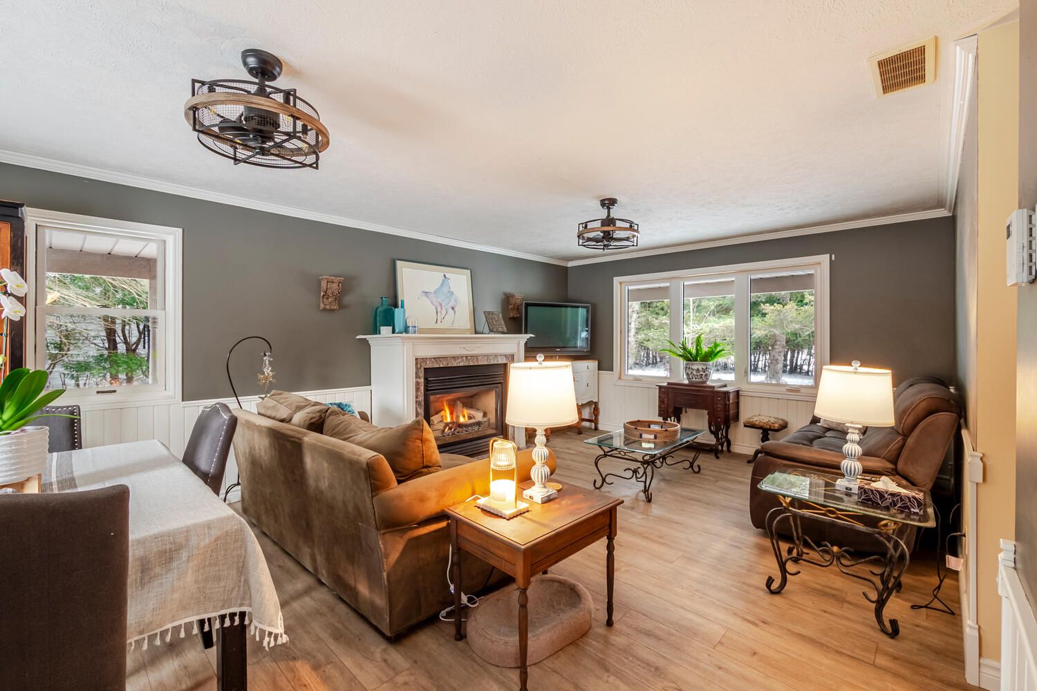 • Spacious main level with a bright living room and cozy gas fireplace.