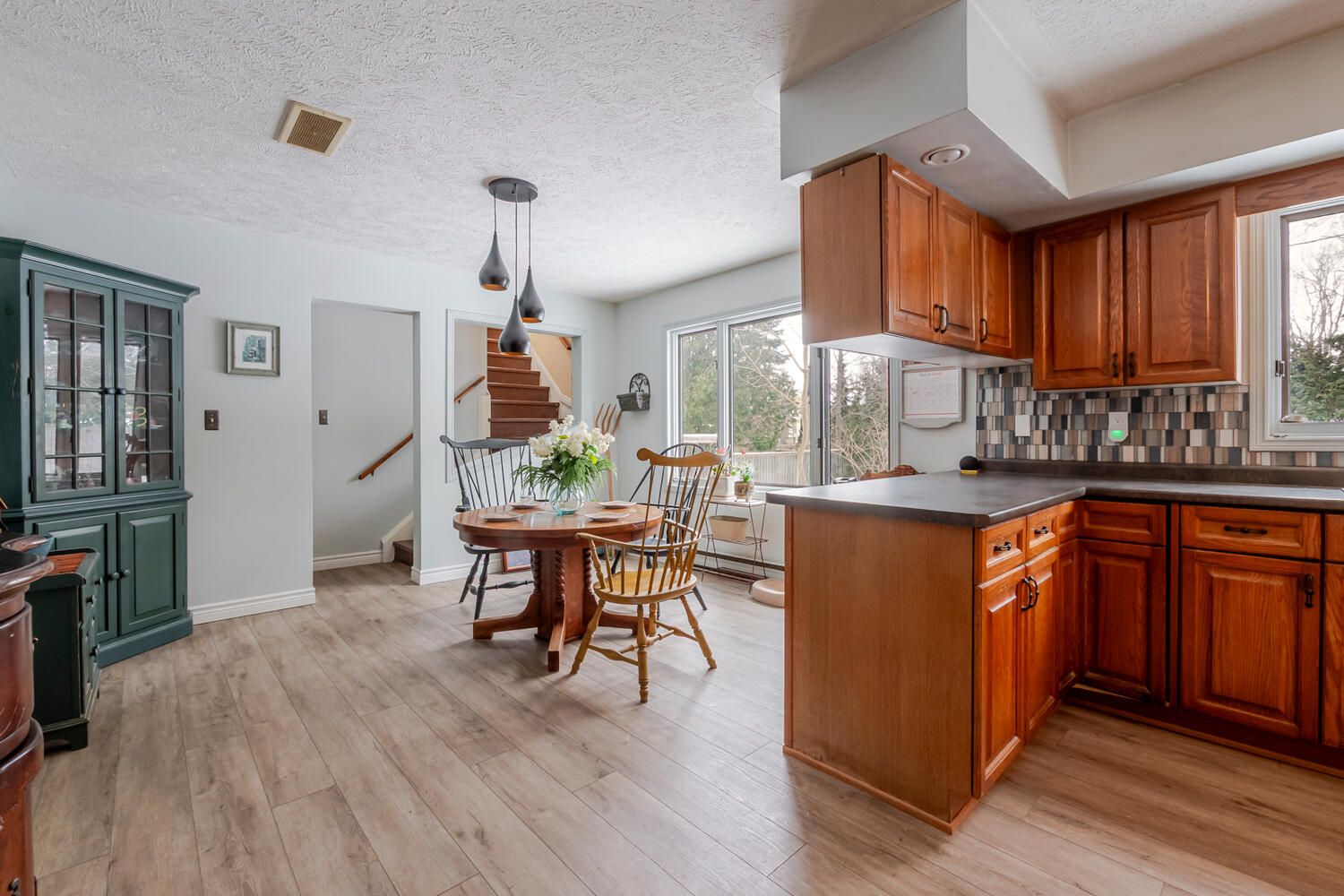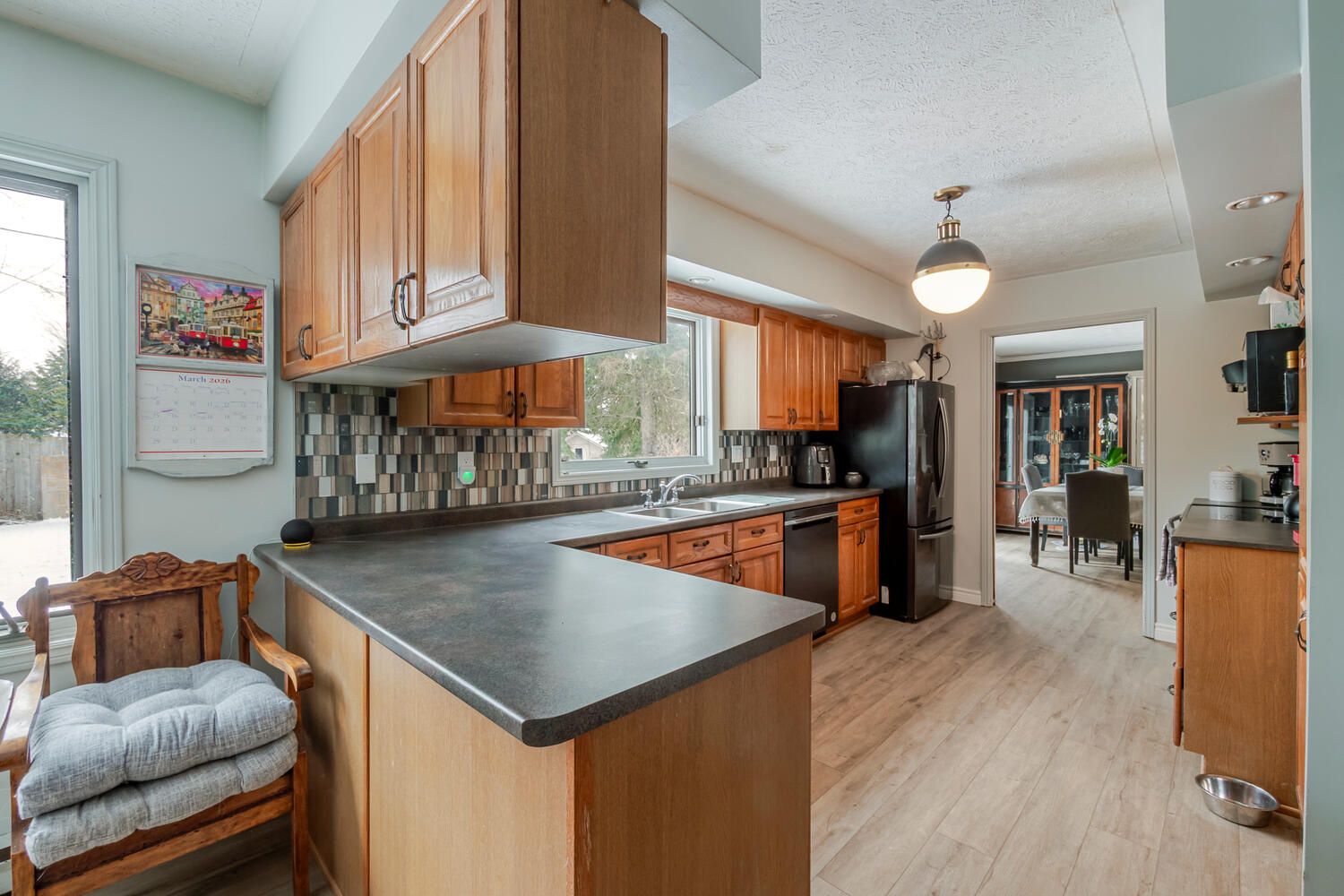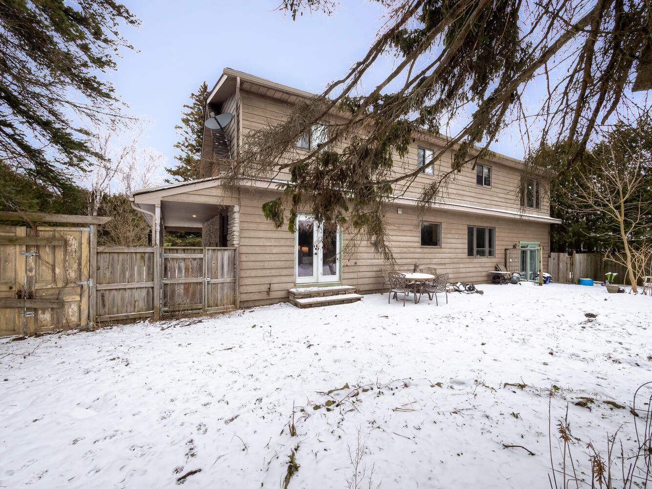Located on a quiet, family-friendly street in the heart of sauble beach, this charming 3-bedroom cape cod style home offers the perfect blend of comfort, privacy, and lifestyle. Set on a beautifully landscaped, cedar-lined lot with mature trees, perennial gardens, and an interlock driveway, the property provides a peaceful retreat just minutes from one of ontario's most sought-after beach communities. Thoughtful updates add to the home's appeal, including a roof redone in 2020, new main level flooring, and a new living room window and dishwasher installed in 2025-offering both style and peace of mind. Step inside to a spacious main level featuring a bright and inviting living room with a cozy gas fireplace and walkout to the private, fully fenced backyard-ideal for entertaining or unwinding after a day at the beach. The oak kitchen overlooks the rear yard and is filled with natural light, while the adjoining den offers convenient main floor laundry and flexible space for a home office or sitting area. Upstairs, you'll find a generous primary bedroom, a 4-piece bath, and two additional bedrooms-one with access to a versatile upper family room, perfect for kids, guests, or a quiet reading nook. Enjoy everything sauble beach has to offer-famous sandy shoreline, stunning lake huron sunsets, vibrant local shops and restaurants, and year-round recreation including boating, trails, and nearby golf courses. Whether you're searching for a full-time residence or a weekend getaway, this property delivers the ultimate beach town lifestyle.