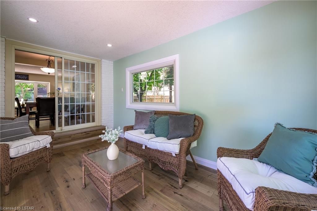 Beautiful ranch in northridge. Upper unit with three bedrooms, living room, dining room, kitchen, and sunroom. Renovated and decorated. Laundry on main floor, hardwood flooring, tile bath. Appliances, fridge, stove, washer/dryer, dishwasher. On bus route for schools, western and fanshawe. Gas furnace, central air. Front covered porch. Large lot on court, fenced yard.