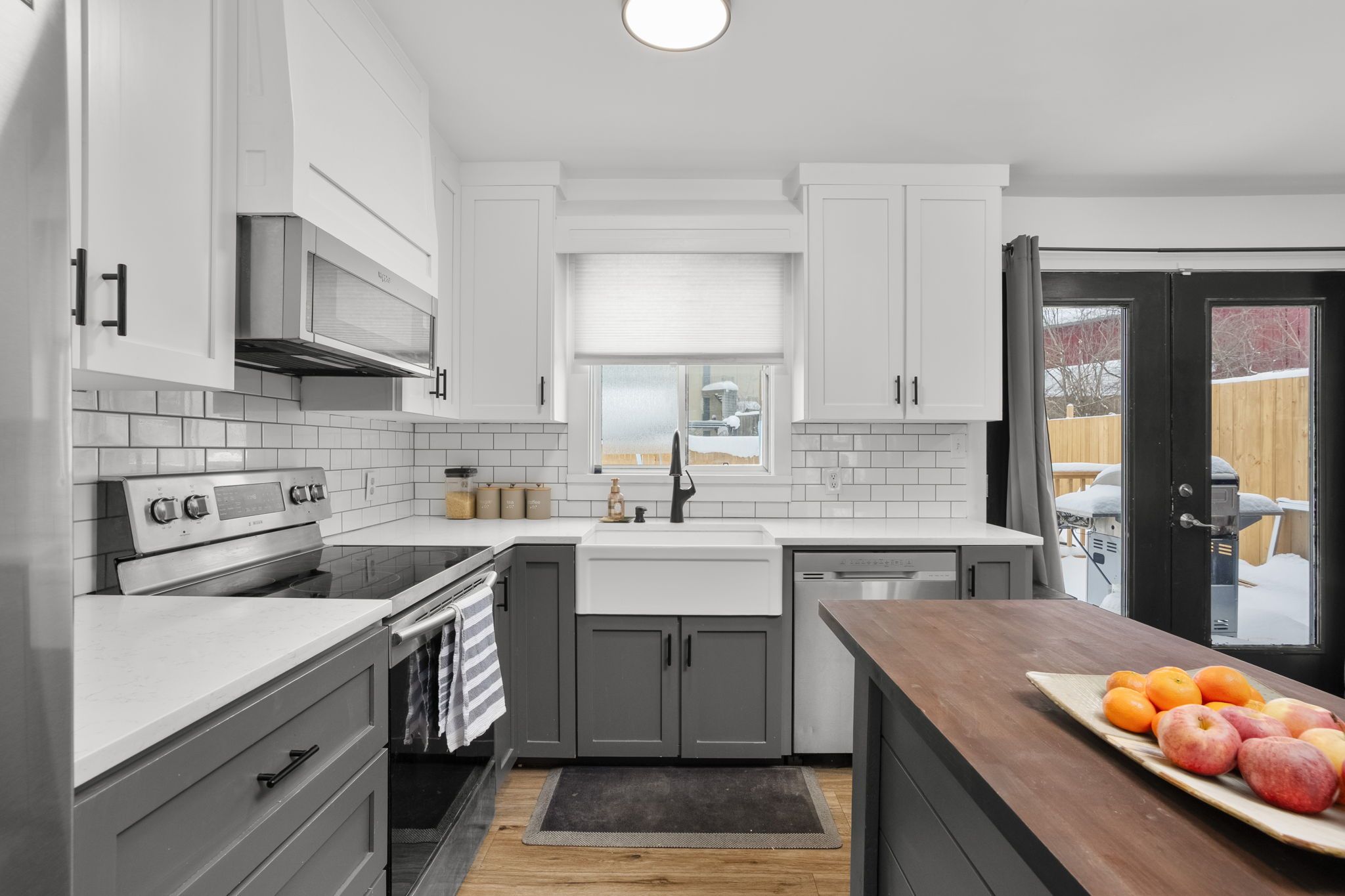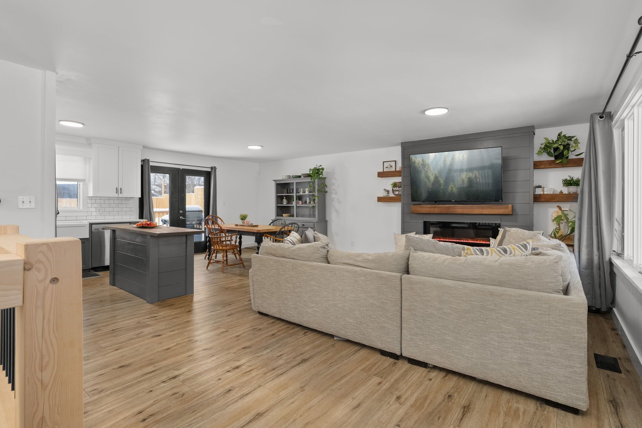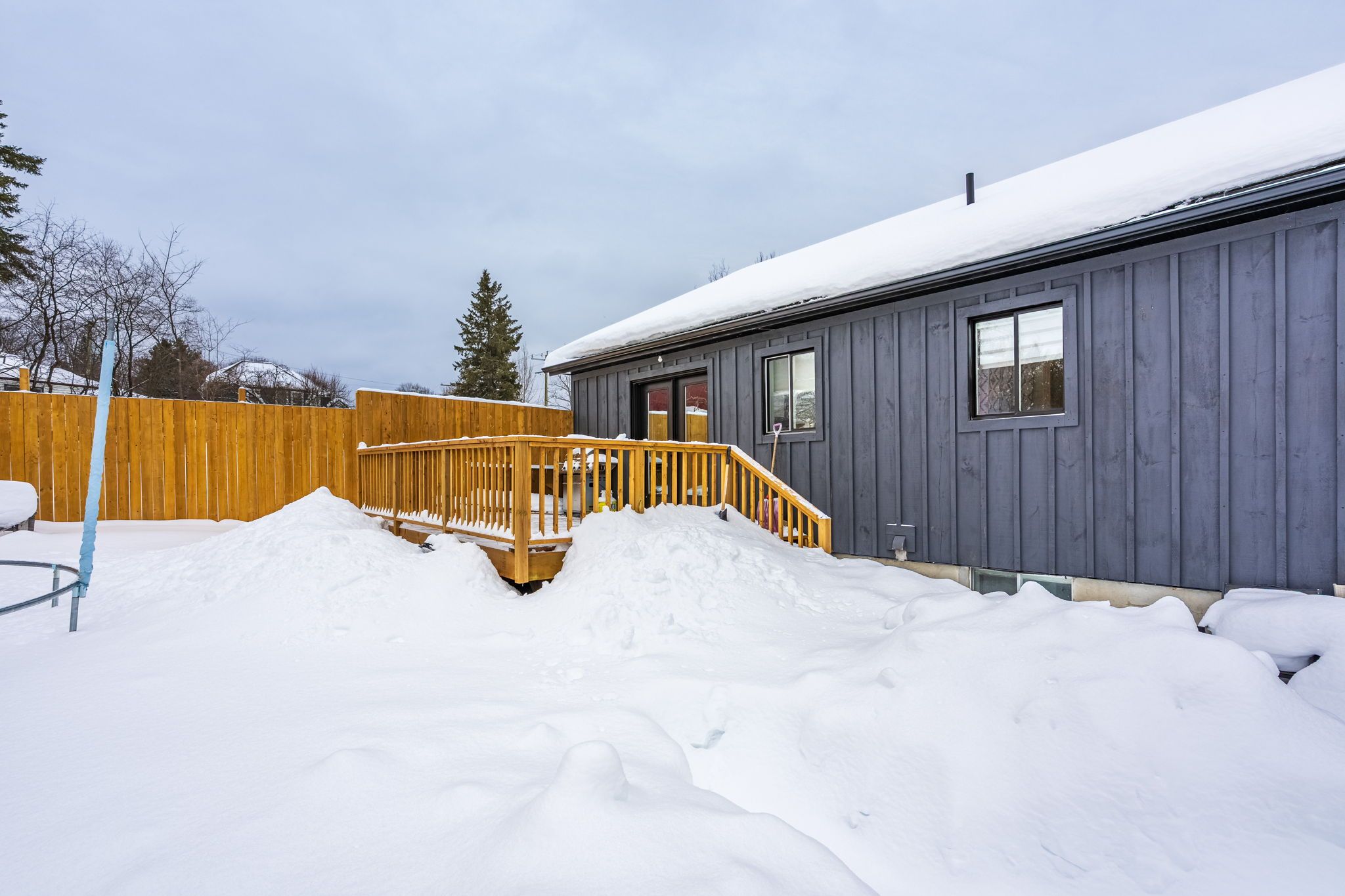 Beautifully renovated bungalow offering modern comfort and thoughtful design throughout. This move-in-ready home features 3 bedrooms and 2 bathrooms, with a bright, open-concept living area that seamlessly blends style and function. The tastefully updated kitchen (2021) boasts newer appliances and flows effortlessly into the living space, where a cozy built-in electric fireplace (2024) creates a warm and inviting atmosphere. Patio doors lead out to a spacious deck overlooking the fenced backyard, newly installed in 2025, perfect for relaxing or entertaining. The finished basement provides additional living space, ideal for a family room, home office, or guest retreat. Recent upgrades include new siding, new shingles, and new flooring throughout in 2025, as well as a new furnace installed in 2023 for added peace of mind. Enjoy the charm of the covered front deck and the convenience of a prime location just minutes from highway 11 and downtown huntsville, offering easy access to shopping, dining, and all the area has to offer. A thoughtfully updated home, ready for you to enjoy.