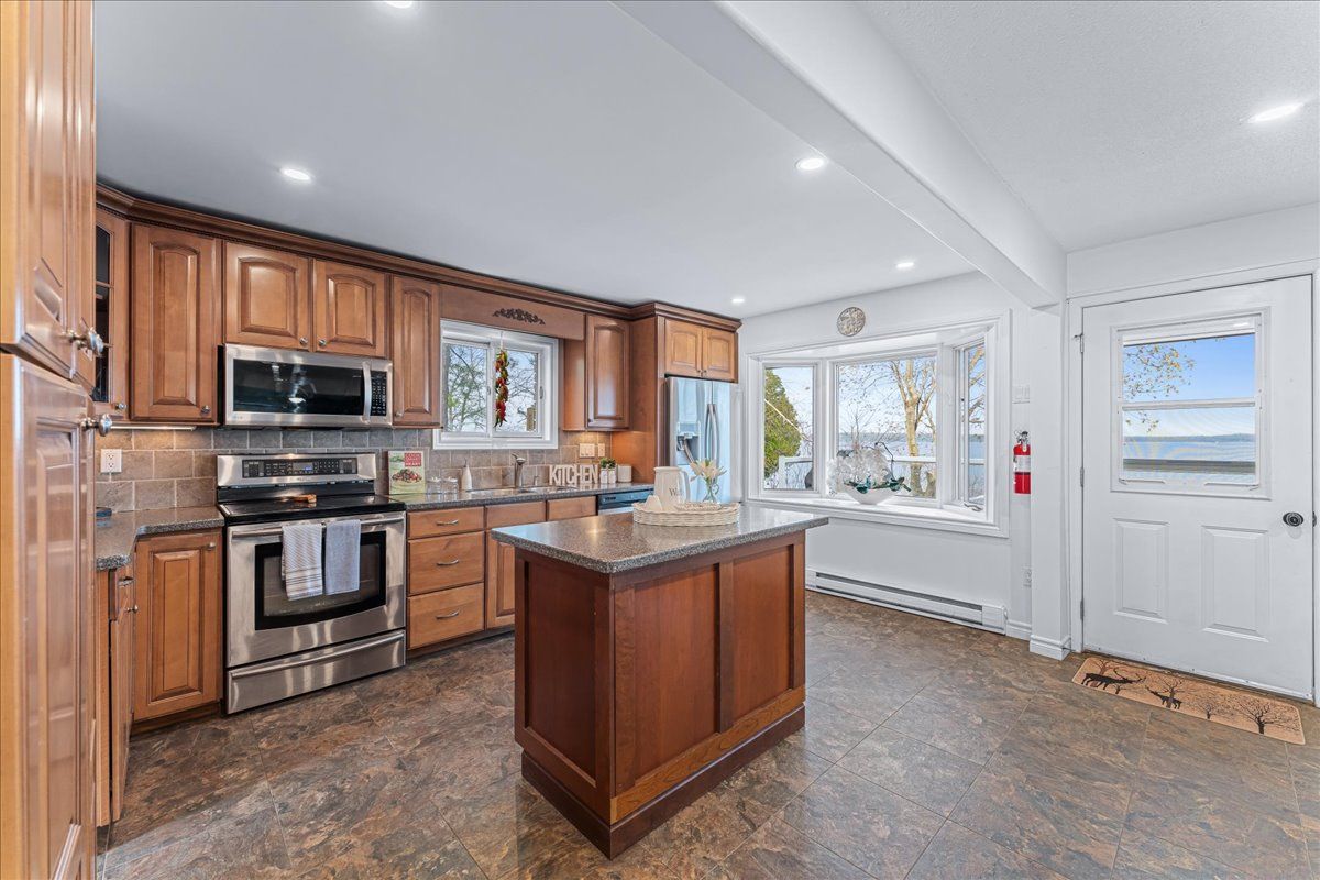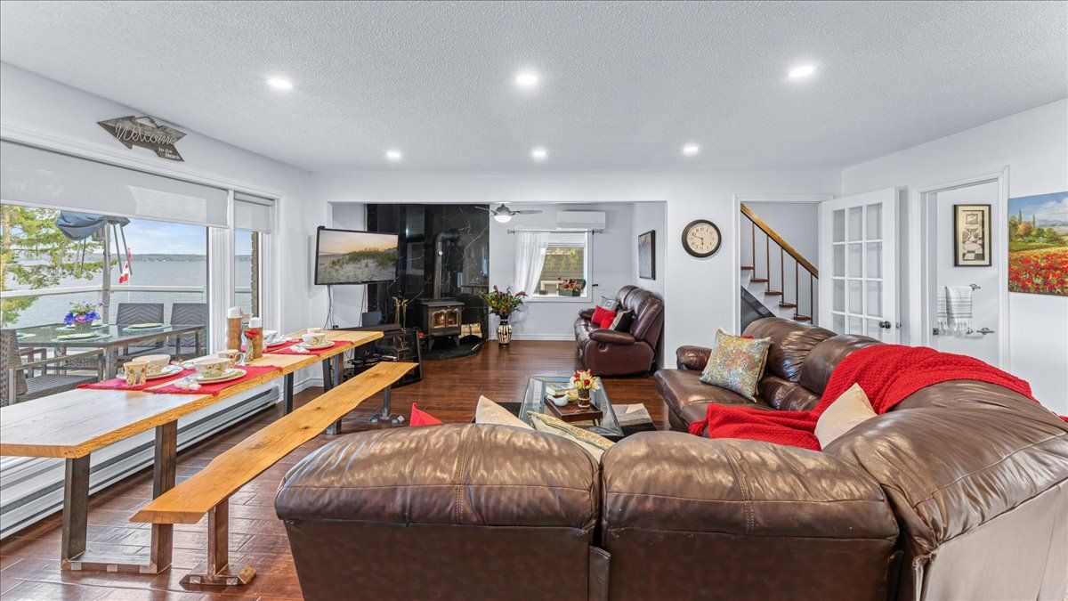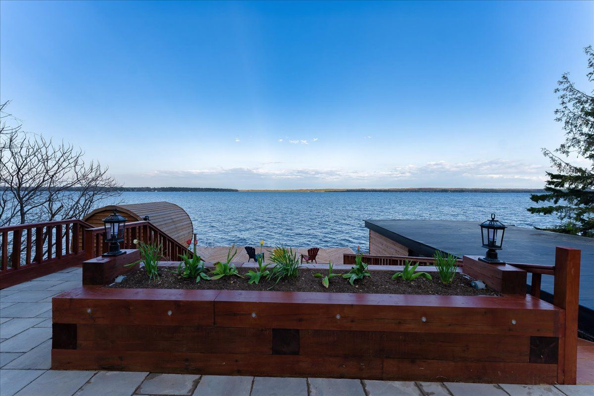 Stunning lakefront retreat with breathtaking south-facing views of sturgeon lake! This exceptional 4-season home offers a rare chance to embrace the ultimate lakeside lifestyle, featuring panoramic south-facing views of the pristine waters of sturgeon lake. Enjoy these spectacular vistas from the spacious bedroom, living room, & kitchen, all designed to maximize natural light & showcase the surrounding beauty. Set on a beautifully landscaped lot, this home is a water lover's dream. It boasts a renovated wet slip boathouse for storage, a newly built sauna for relaxation, & a sprawling deck perfect for entertaining or unwinding while taking in the view. The seaweed-free, crystal-clear waterfront is ideal for swimming, boating, fishing, & water sports. The large dock offers ample space for gatherings or quiet moments, with incredible lake views in all directions. Just steps away, enjoy 2 nearby golf courses, snowmobile & atv trails, & miles of boating along the trent-severn waterway. Easy access to lindsay, fenelon falls, & bobcaygeon ensures convenience. Inside, the home impresses with a newly renovated 3-piece bath, a kitchen with sleek quartz countertops, center island, & open-concept living/dining area featuring a cozy wood-fire stove. The spacious primary bedroom has a luxurious 5-piece ensuite, while 3 additional lower-level bedrooms (1 with a fireplace) offer ample space for family & guests. Recent upgrades totaling over $200k include professional landscaping, utility ramp, indoor storage, & water filtration system. Dual heating (baseboard & heat pump) ensures comfort year-round. Thoughtful touches like a dog bathroom, underdeck ceiling with drainage, & a veggie garden with irrigation add even more appeal. Whether a full-time home or perfect cottage getaway, this incredible property offers everything you need for lakeside living.