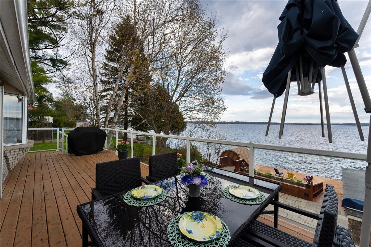 Stunning lakefront retreat with breathtaking south-facing views of sturgeon lake! This exceptional 4-season home offers a rare chance to embrace the ultimate lakeside lifestyle, featuring panoramic south-facing views of the pristine waters of sturgeon lake. Enjoy these spectacular vistas from the spacious bedroom, living room, & kitchen, all designed to maximize natural light & showcase the surrounding beauty. Set on a beautifully landscaped lot, this home is a water lover's dream. It boasts a renovated wet slip boathouse for storage, a newly built sauna for relaxation, & a sprawling deck perfect for entertaining or unwinding while taking in the view. The seaweed-free, crystal-clear waterfront is ideal for swimming, boating, fishing, & water sports. The large dock offers ample space for gatherings or quiet moments, with incredible lake views in all directions. Just steps away, enjoy 2 nearby golf courses, snowmobile & atv trails, & miles of boating along the trent-severn waterway. Easy access to lindsay, fenelon falls, & bobcaygeon ensures convenience. Inside, the home impresses with a newly renovated 3-piece bath, a kitchen with sleek quartz countertops, center island, & open-concept living/dining area featuring a cozy wood-fire stove. The spacious primary bedroom has a luxurious 5-piece ensuite, while 3 additional lower-level bedrooms (1 with a fireplace) offer ample space for family & guests. Recent upgrades totaling over $200k include professional landscaping, utility ramp, indoor storage, & water filtration system. Dual heating (baseboard & heat pump) ensures comfort year-round. Thoughtful touches like a dog bathroom, underdeck ceiling with drainage, & a veggie garden with irrigation add even more appeal. Whether a full-time home or perfect cottage getaway, this incredible property offers everything you need for lakeside living.