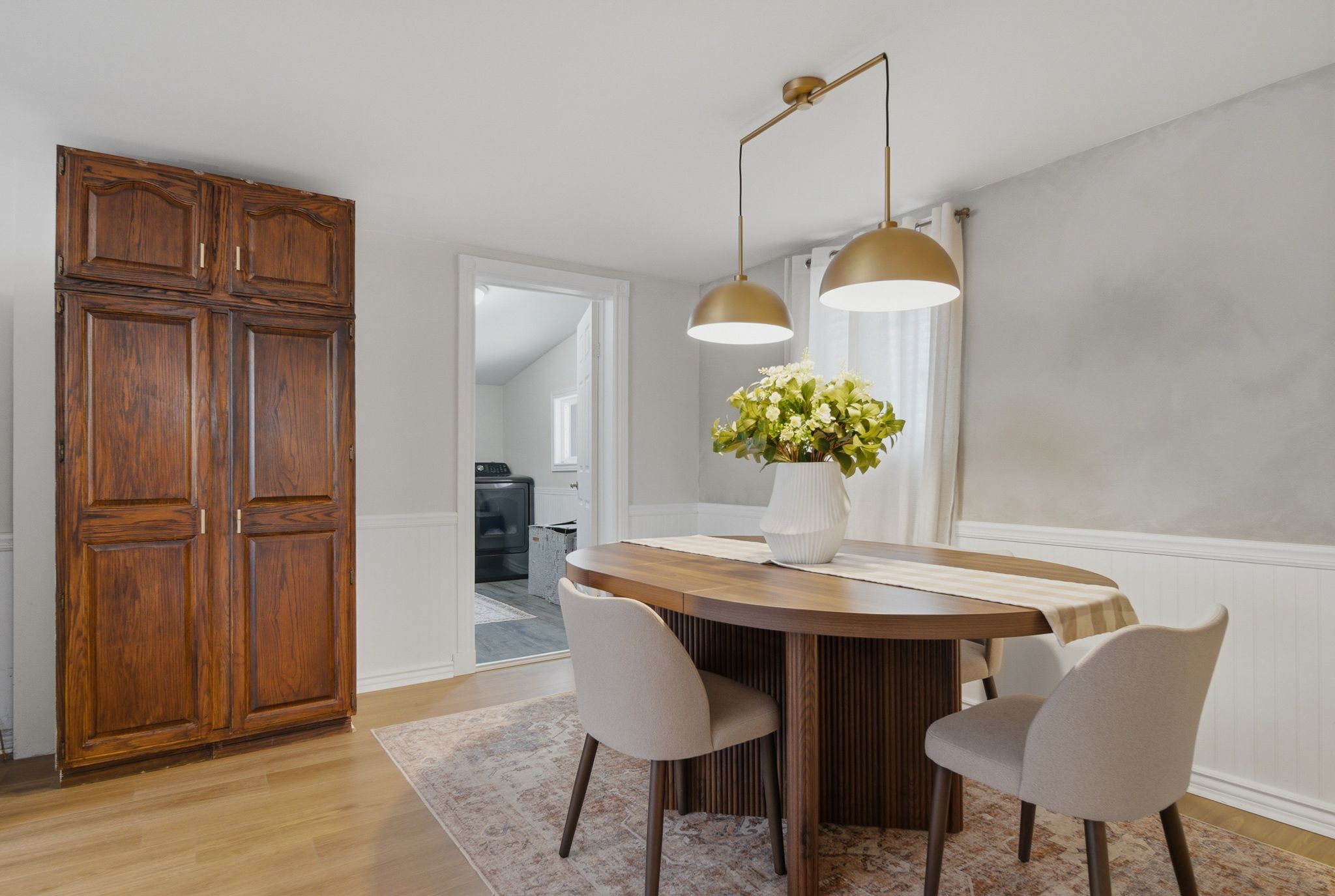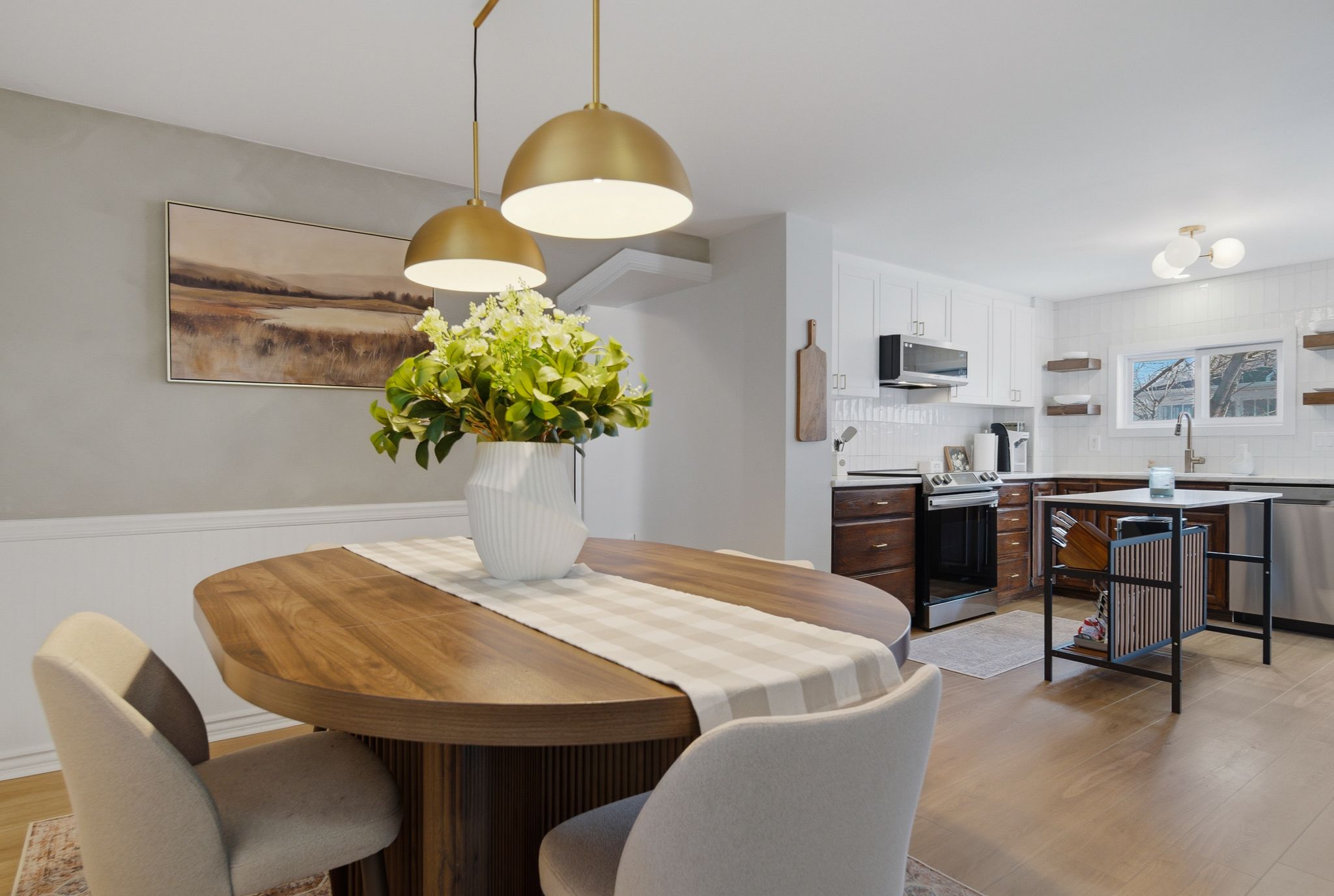 • Spacious open kitchen and dining area with modern updates.