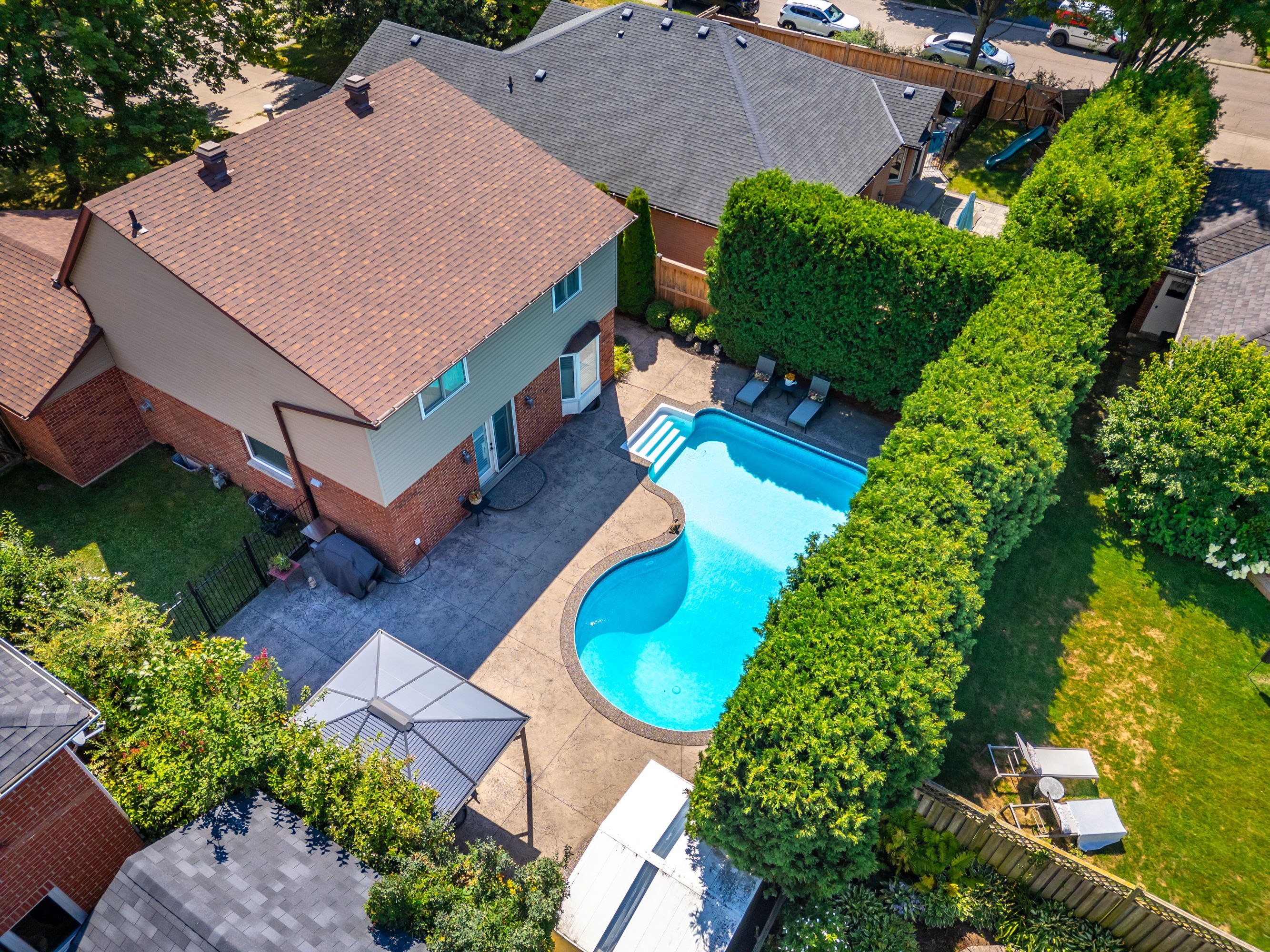 • Private backyard oasis with a pool for summer enjoyment.