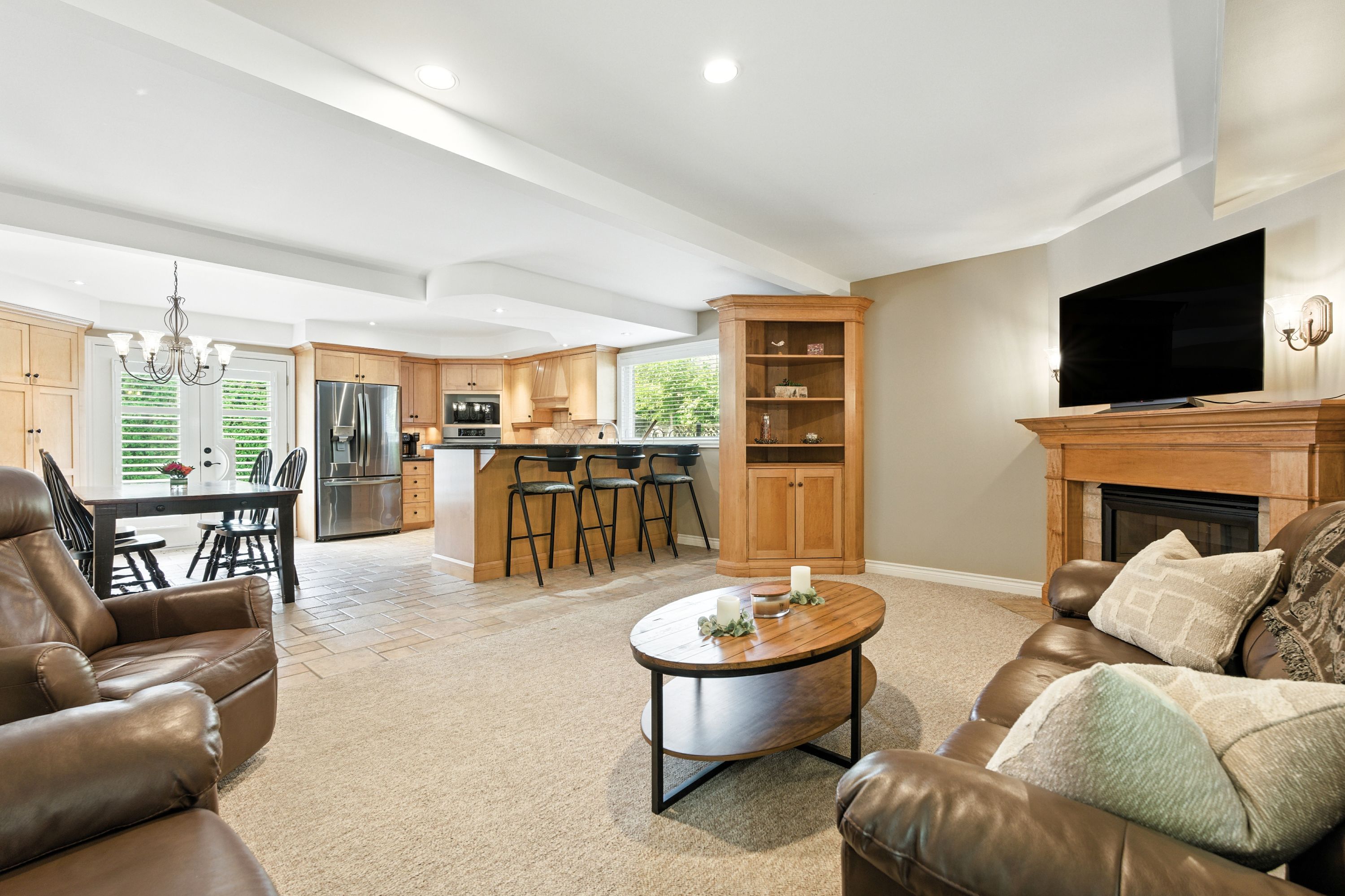 • Finished basement with wet bar provides extra space for family fun.