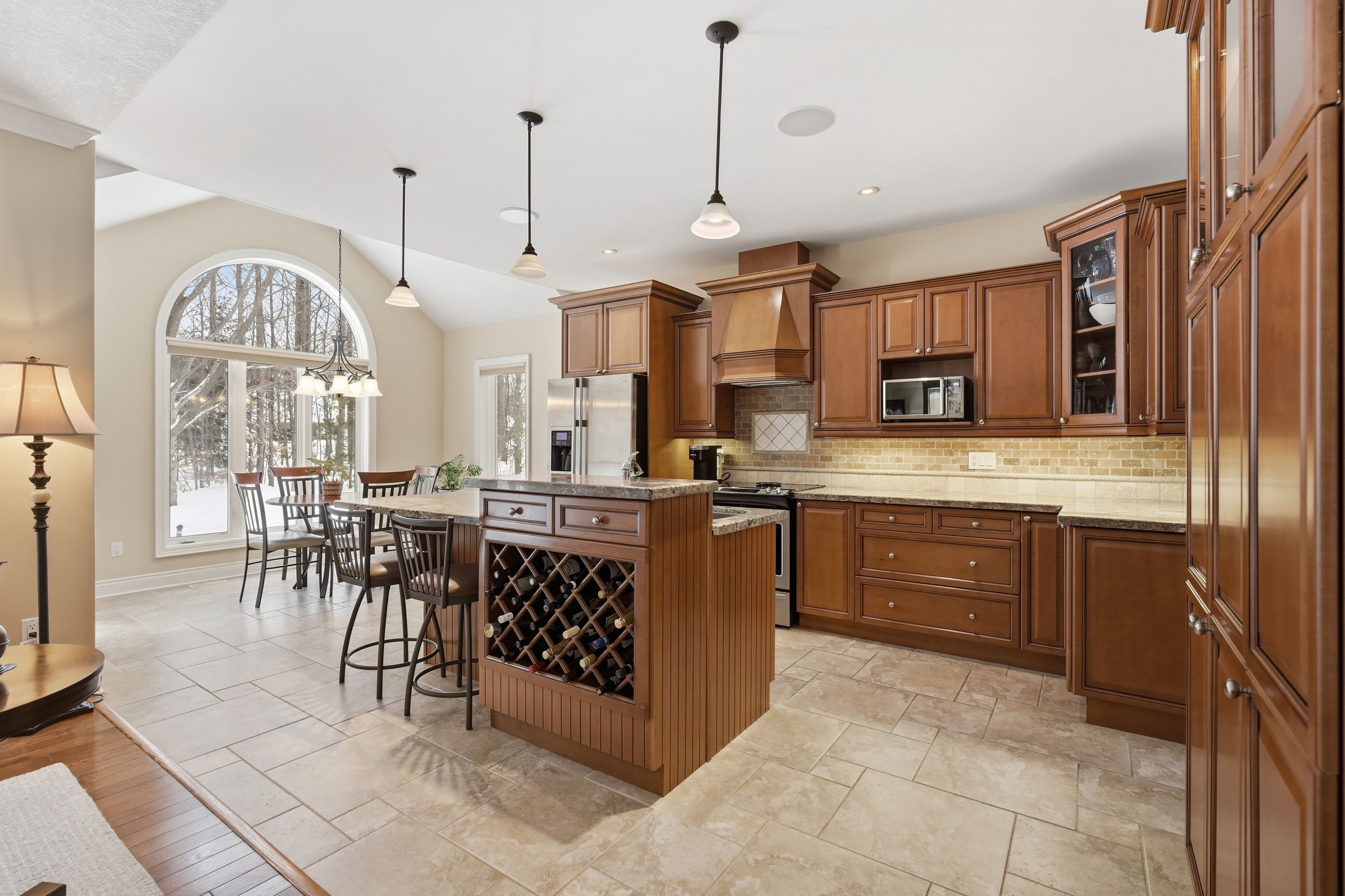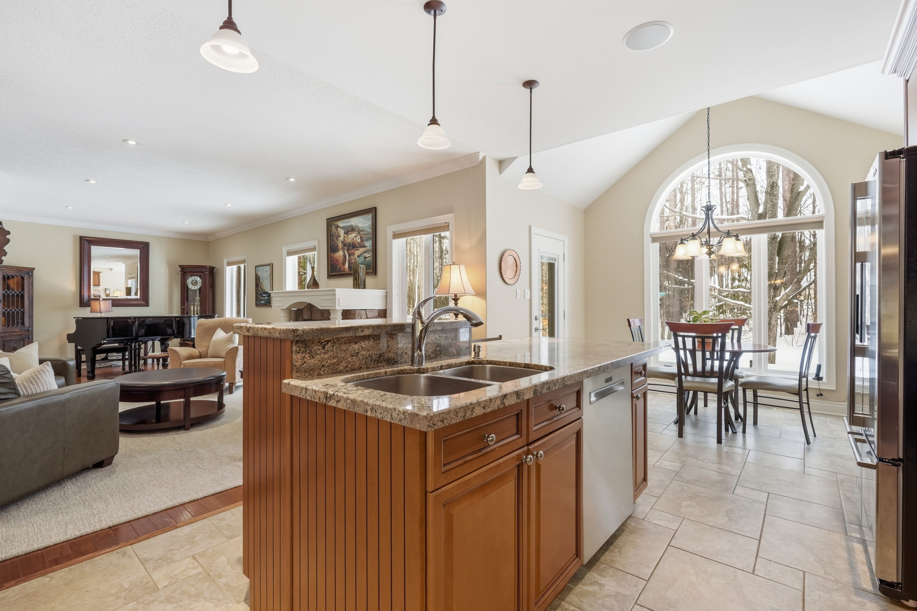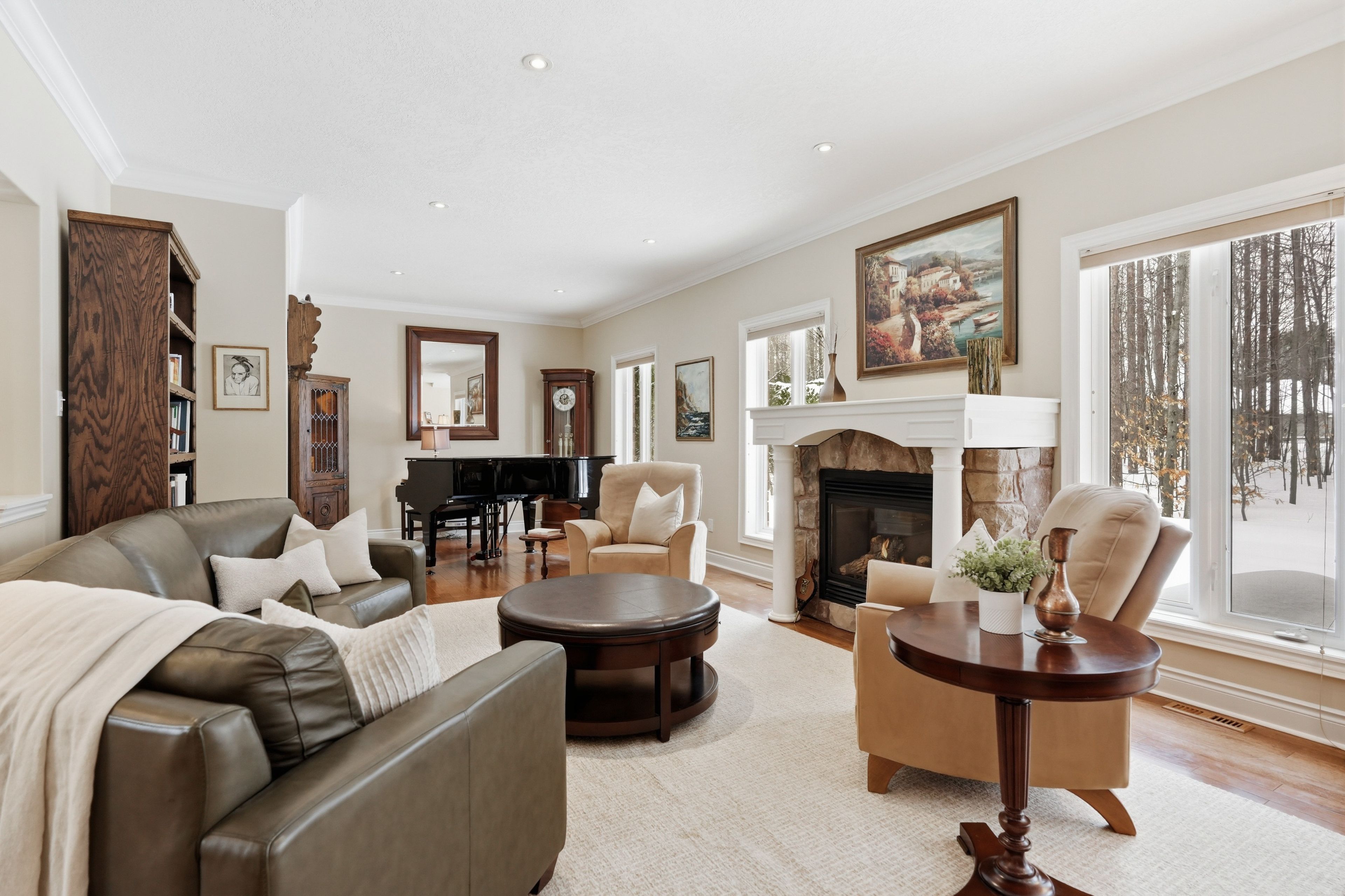 Timeless estate living in one of simcoe county's most prestigious enclaves. Gracefully poised on a private, fully landscaped estate lot framed by towering mature trees, this former model home by esteemed builder s. L. Witty is a masterclass in timeless architecture and enduring craftsmanship. A grand stone walkway and impeccably manicured grounds create a striking arrival, setting the tone for the elegance within. Inside, a thoughtfully designed split-bedroom layout offers 3 bedrooms, 4 bathrooms, and an impressive loft, blending refined privacy with exceptional functionality. The open-concept main level is illuminated by expansive windows that flood the home with natural light. Rich hardwood floors, crown moulding, california knockdown ceilings, and a gas fireplace create a warm yet sophisticated ambiance. At the heart of the residence, the gourmet kitchen showcases stainless steel appliances, gleaming granite countertops, and seamless flow into the living and dining areas, perfectly suited for elegant entertaining and elevated everyday living. The primary suite is a private sanctuary, complete with a walk-in closet, luxurious 5-pc. Ensuite, and walkout to the serene backyard retreat. Above, the expansive loft with its own 2-pc. Bath offers exceptional versatility, ideal as an executive office, guest suite, or media lounge. The fully finished lower level extends the living space with an additional bedroom, full 3-pc. Bath, fully equipped wet bar, spacious recreation & games area, and abundant storage, designed for entertaining and multigenerational comfort. Outdoors, a stone patio anchors the professionally landscaped grounds, offering rare privacy and tranquility. Perfectly positioned to enjoy the best of the region, this distinguished residence is moments from prestigious golf courses, the fresh harvests of barrie hill farms, and premier ski resorts, offering four-season recreation and an exceptional lifestyle in one of simcoe county's most coveted neighbourhoods.