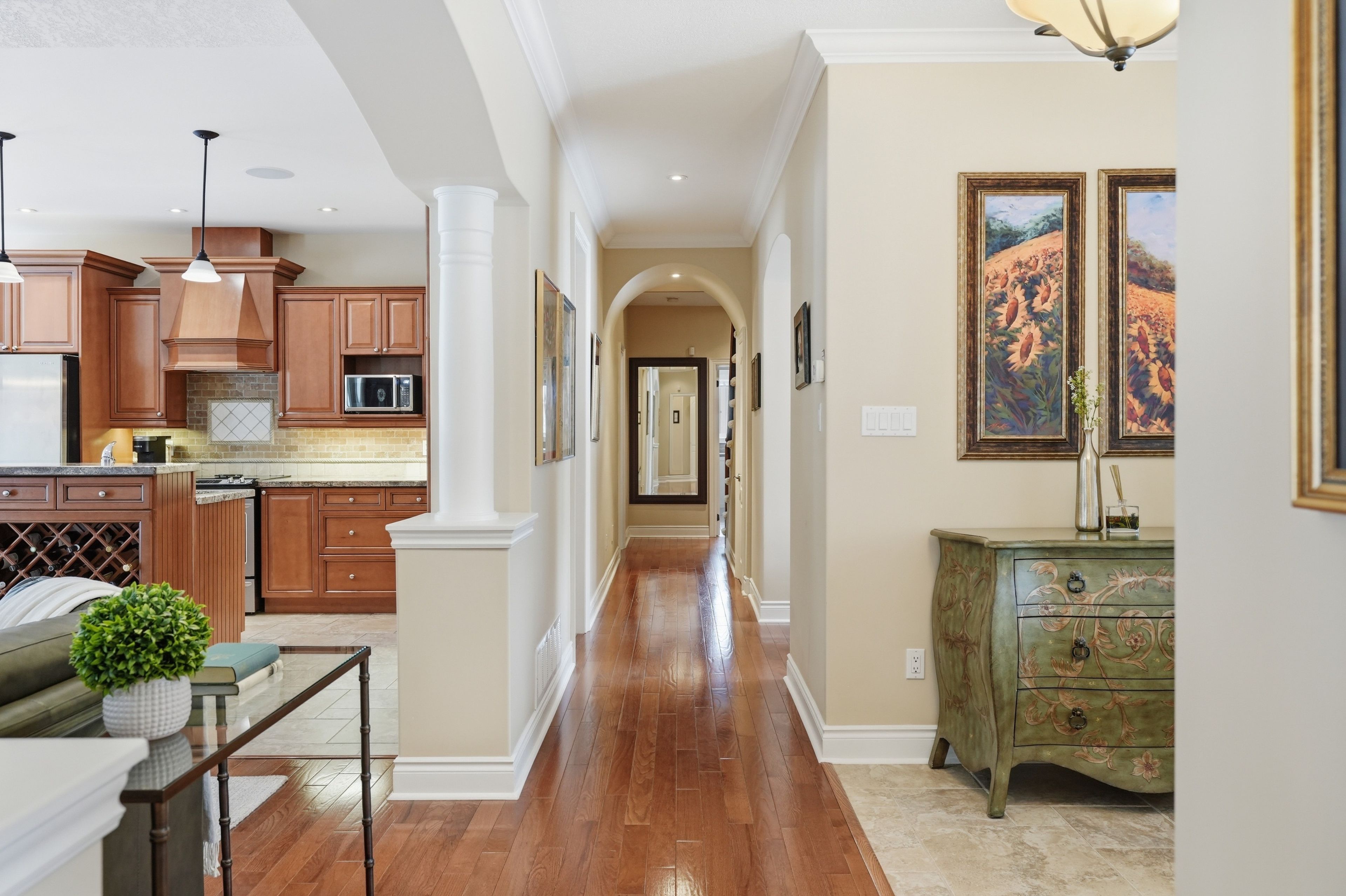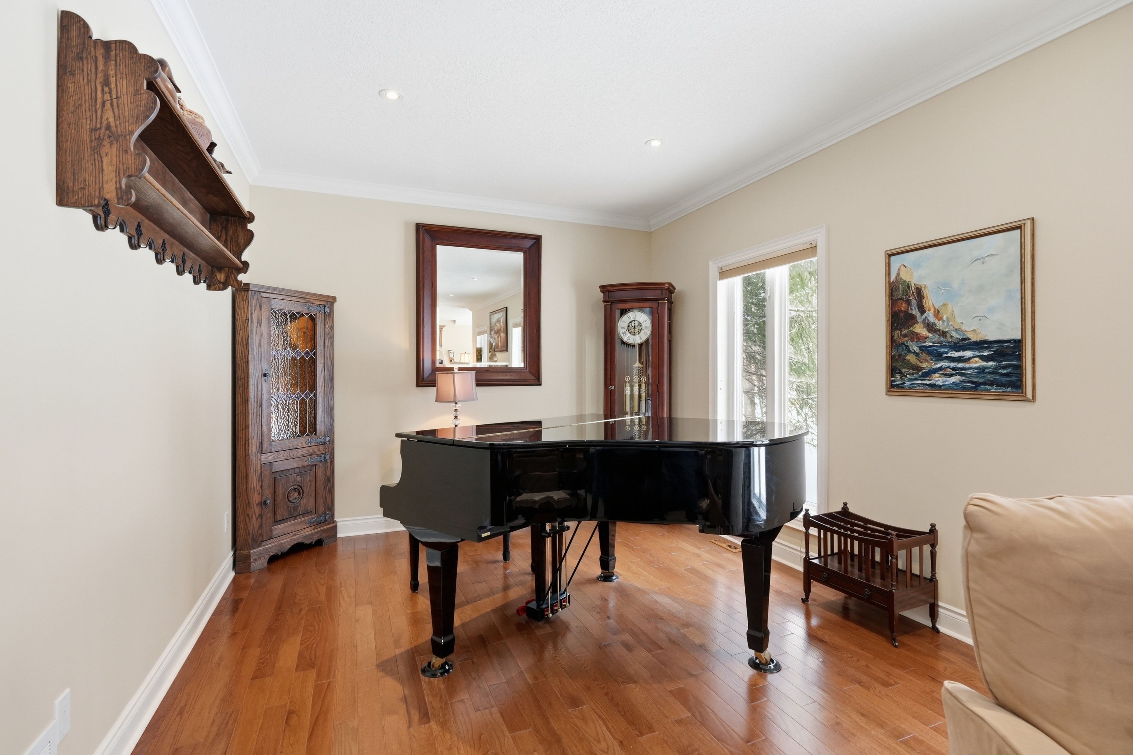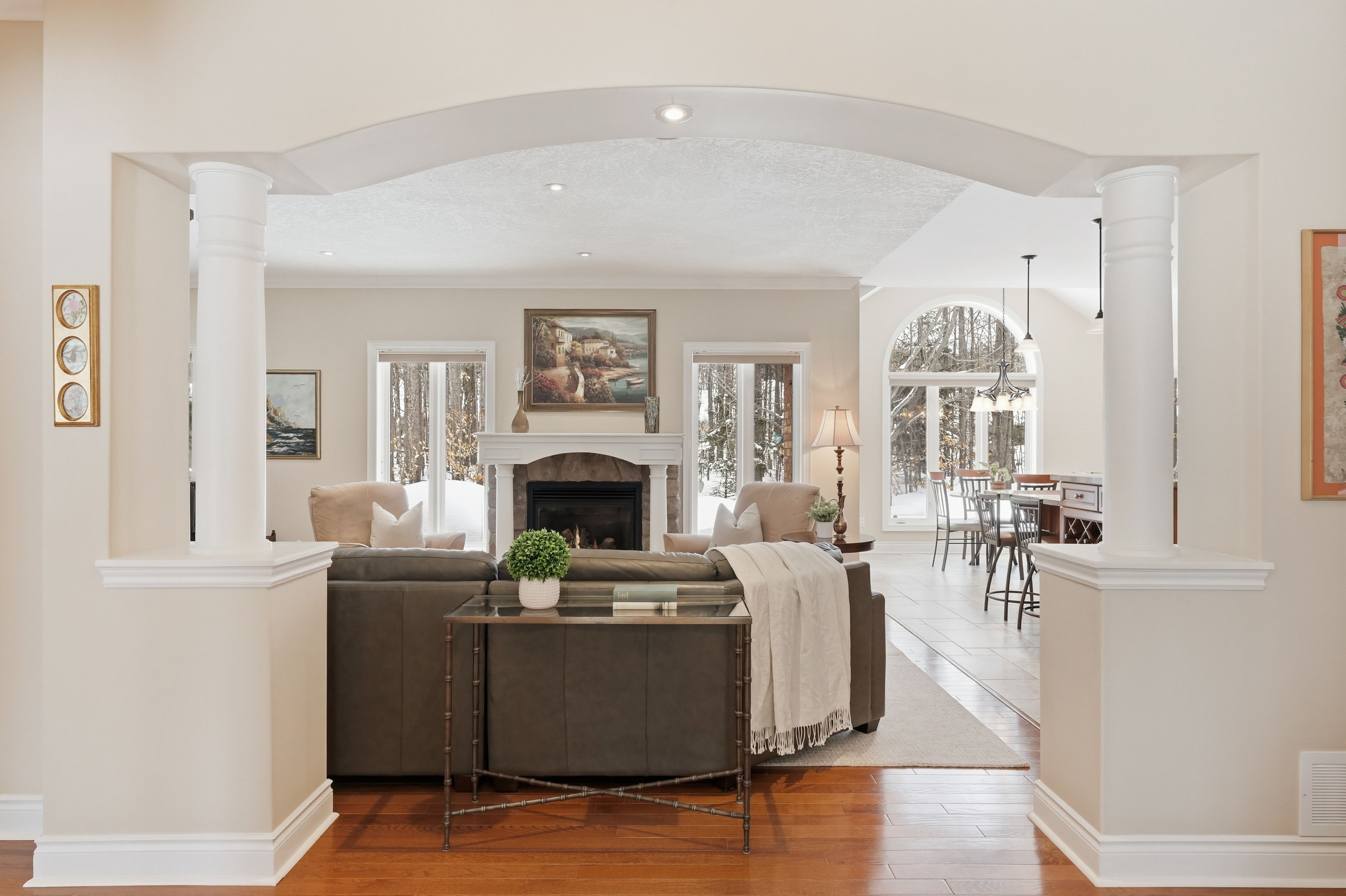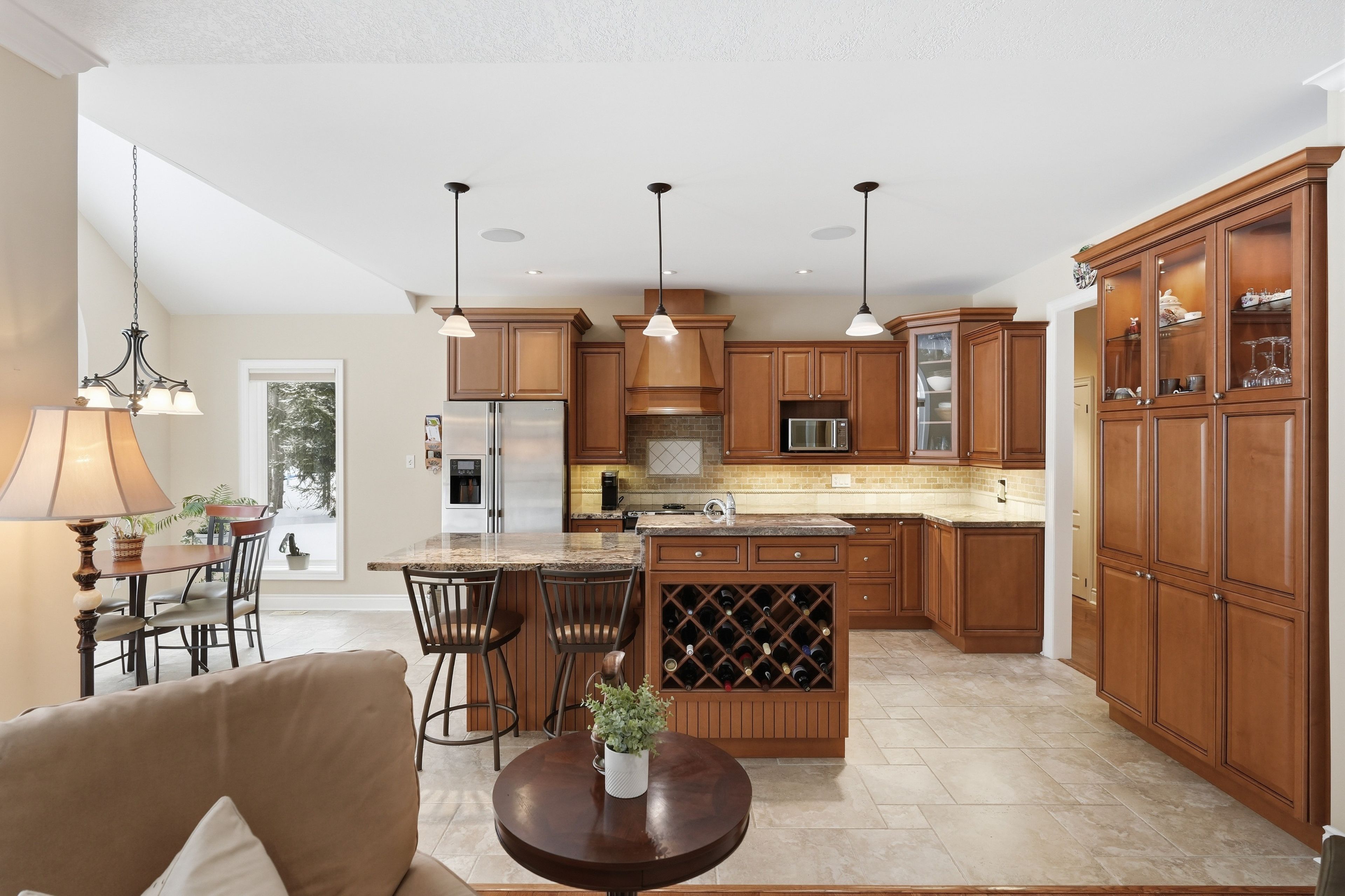 Timeless estate living in one of simcoe county's most prestigious enclaves. Gracefully poised on a private, fully landscaped estate lot framed by towering mature trees, this former model home by esteemed builder s. L. Witty is a masterclass in timeless architecture and enduring craftsmanship. A grand stone walkway and impeccably manicured grounds create a striking arrival, setting the tone for the elegance within. Inside, a thoughtfully designed split-bedroom layout offers 3 bedrooms, 4 bathrooms, and an impressive loft, blending refined privacy with exceptional functionality. The open-concept main level is illuminated by expansive windows that flood the home with natural light. Rich hardwood floors, crown moulding, california knockdown ceilings, and a gas fireplace create a warm yet sophisticated ambiance. At the heart of the residence, the gourmet kitchen showcases stainless steel appliances, gleaming granite countertops, and seamless flow into the living and dining areas, perfectly suited for elegant entertaining and elevated everyday living. The primary suite is a private sanctuary, complete with a walk-in closet, luxurious 5-pc. Ensuite, and walkout to the serene backyard retreat. Above, the expansive loft with its own 2-pc. Bath offers exceptional versatility, ideal as an executive office, guest suite, or media lounge. The fully finished lower level extends the living space with an additional bedroom, full 3-pc. Bath, fully equipped wet bar, spacious recreation & games area, and abundant storage, designed for entertaining and multigenerational comfort. Outdoors, a stone patio anchors the professionally landscaped grounds, offering rare privacy and tranquility. Perfectly positioned to enjoy the best of the region, this distinguished residence is moments from prestigious golf courses, the fresh harvests of barrie hill farms, and premier ski resorts, offering four-season recreation and an exceptional lifestyle in one of simcoe county's most coveted neighbourhoods.