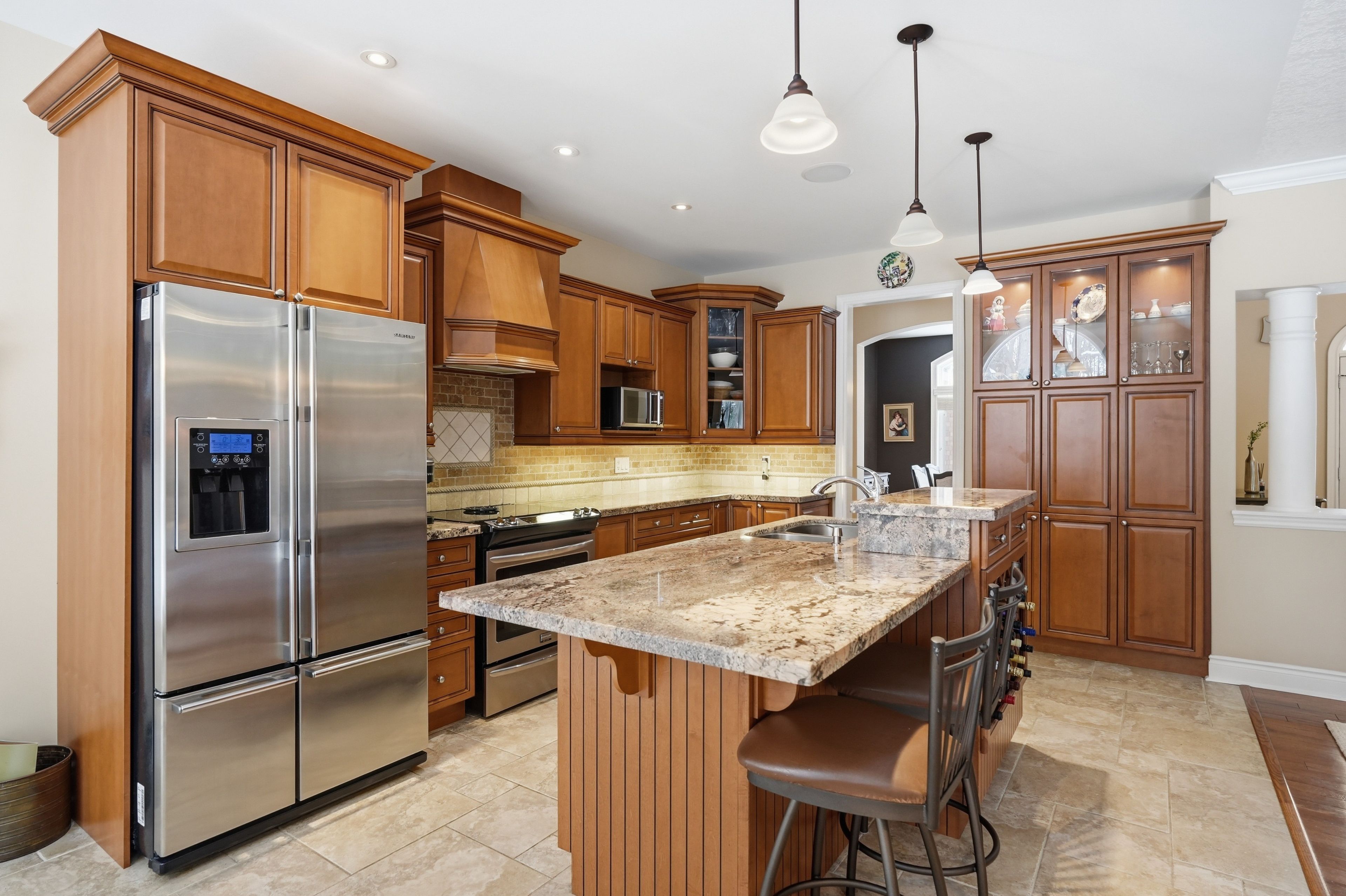 • Gourmet kitchen with stainless steel appliances and granite countertops for elegant entertaining.