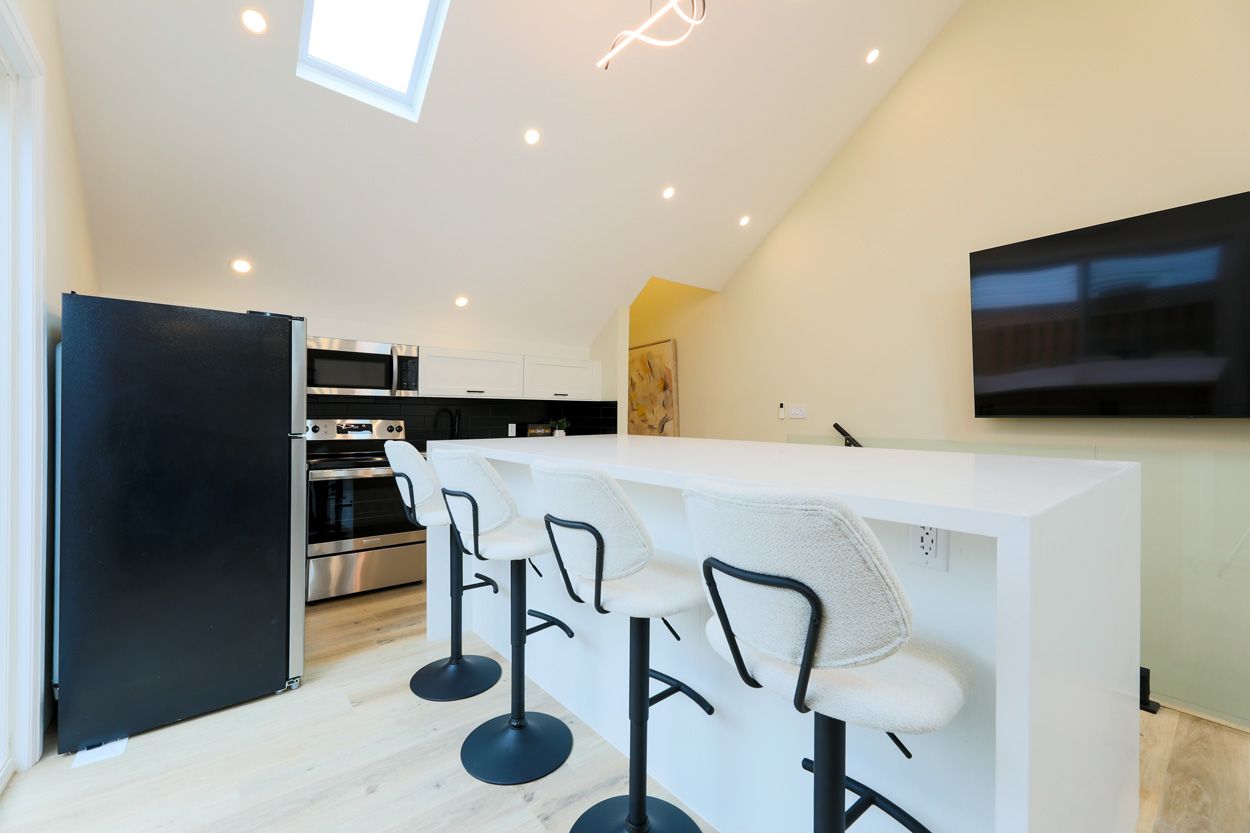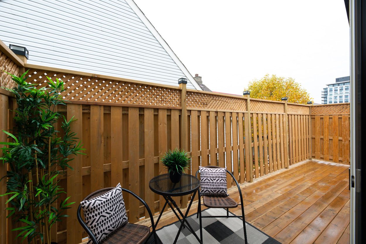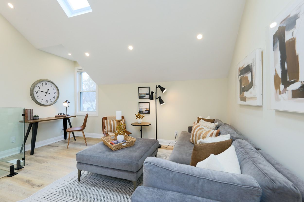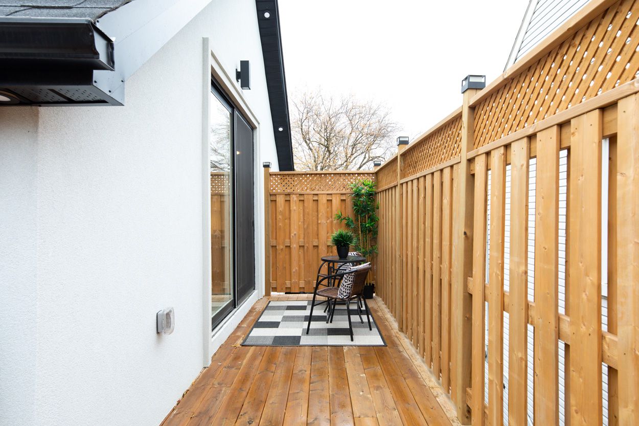 Introducing an exceptional standard of luxury living. Presenting a unique one-bedroom suite that seamlessly integrates modern elegance with practicality. Upon entry, one is welcomed by exquisite vinyl flooring that cohesively connects each area of the suite. The contemporary kitchen is equipped with sophisticated stainless steel appliances and features an oversized layout, providing ample space for culinary endeavours. The four-piece, spa-like washroom includes modern fixtures, complete with a relaxing tub and a stylish vanity that enhances the overall sophistication of the suite. The generously sized bedroom is thoughtfully designed, featuring a vaulted ceiling and a skylight that allows for an abundance of natural light. Additionally, it is equipped with double closets that offer substantial storage capacity for personal belongings. This suite is the ideal retreat for those seeking both comfort and style. Additionally, the 2nd floor features a private deck/patio for entertaining guests and a shared backyard patio for added convenience. Included is 1 parking space off the laneway. The tenant is responsible for paying the hydro. The landlord will be responsible for water/waste, landscaping, and snow removal. This location is unbeatable, with the metro and go station within walking distance, the ttc at your doorstep, and nearby victoria park subway, as well as la fitness and schools.