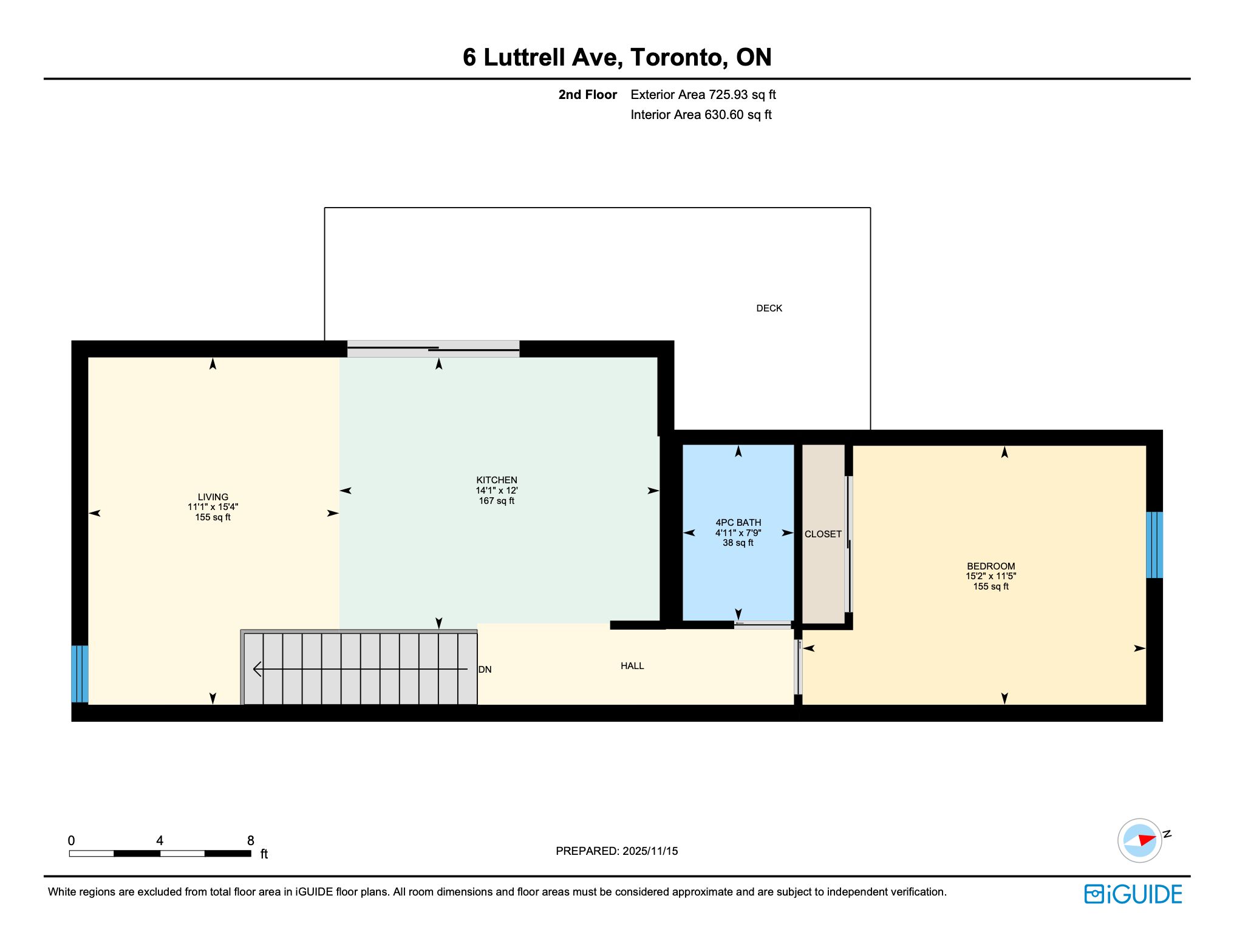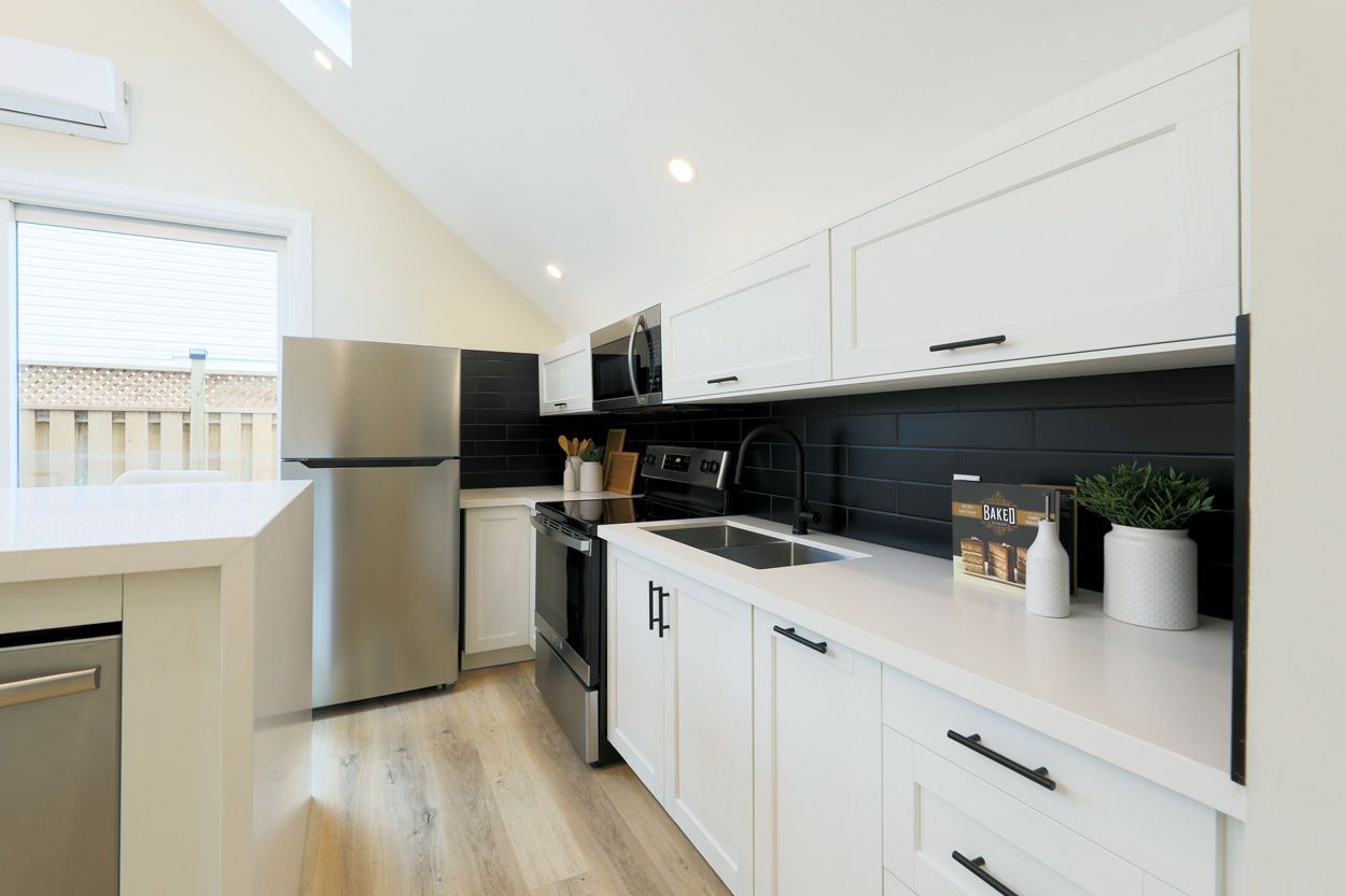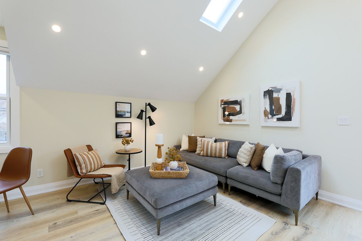Introducing an exceptional standard of luxury living. Presenting a unique one-bedroom suite that seamlessly integrates modern elegance with practicality. Upon entry, one is welcomed by exquisite vinyl flooring that cohesively connects each area of the suite. The contemporary kitchen is equipped with sophisticated stainless steel appliances and features an oversized layout, providing ample space for culinary endeavours. The four-piece, spa-like washroom includes modern fixtures, complete with a relaxing tub and a stylish vanity that enhances the overall sophistication of the suite. The generously sized bedroom is thoughtfully designed, featuring a vaulted ceiling and a skylight that allows for an abundance of natural light. Additionally, it is equipped with double closets that offer substantial storage capacity for personal belongings. This suite is the ideal retreat for those seeking both comfort and style. Additionally, the 2nd floor features a private deck/patio for entertaining guests and a shared backyard patio for added convenience. Included is 1 parking space off the laneway. The tenant is responsible for paying the hydro. The landlord will be responsible for water/waste, landscaping, and snow removal. This location is unbeatable, with the metro and go station within walking distance, the ttc at your doorstep, and nearby victoria park subway, as well as la fitness and schools.
