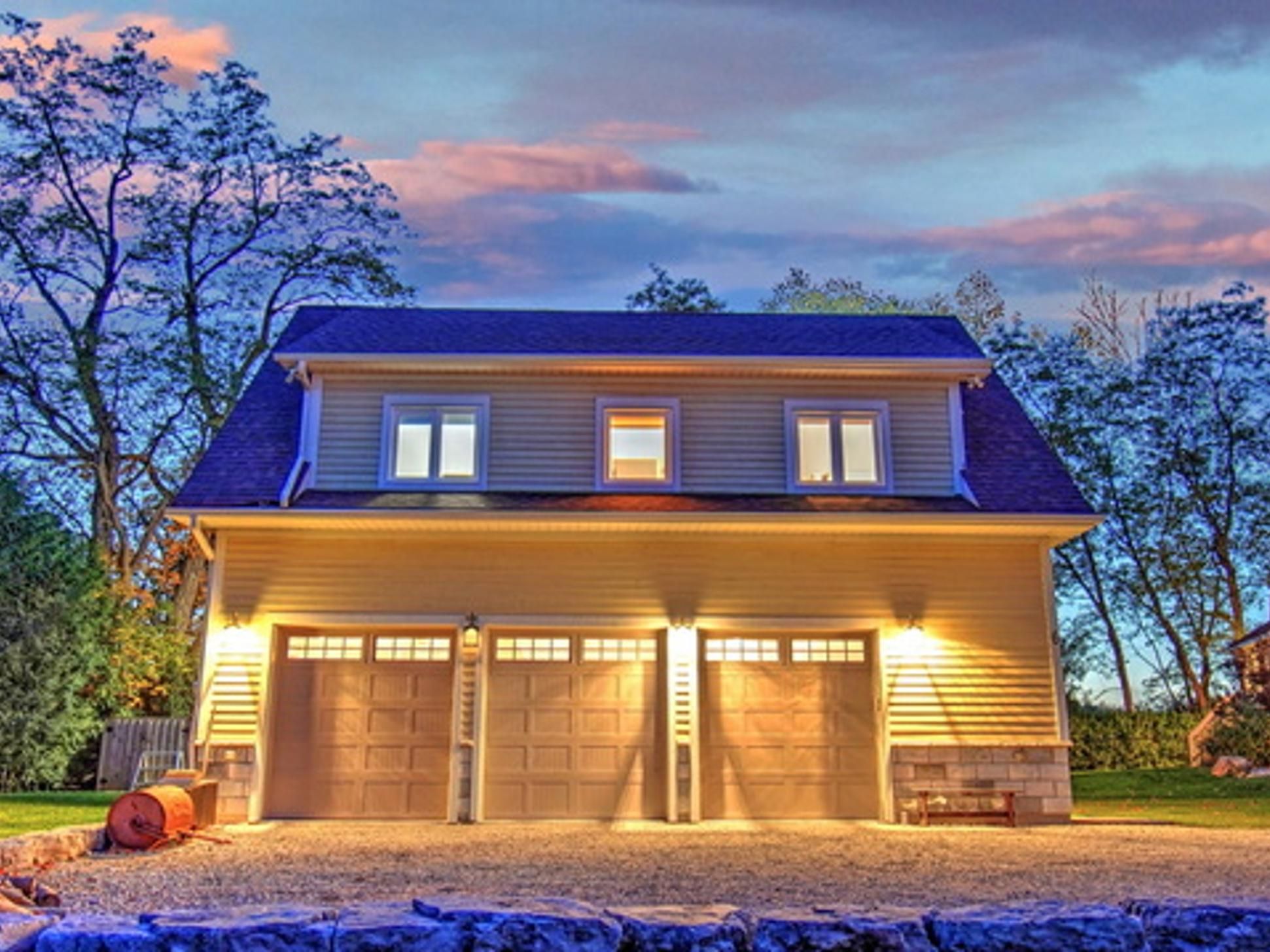 • Heated three-car garage with elevator access for convenience.