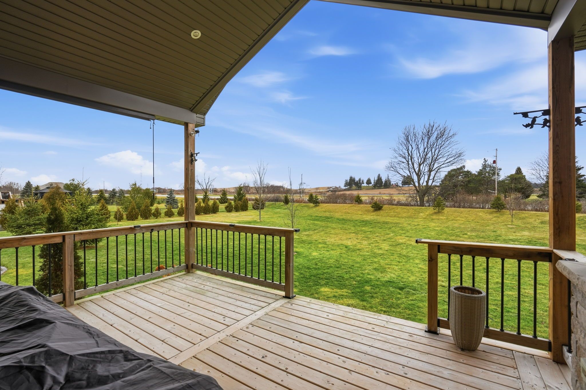 • Expansive 1.24-acre lot with covered back deck, perfect for relaxing outdoors.