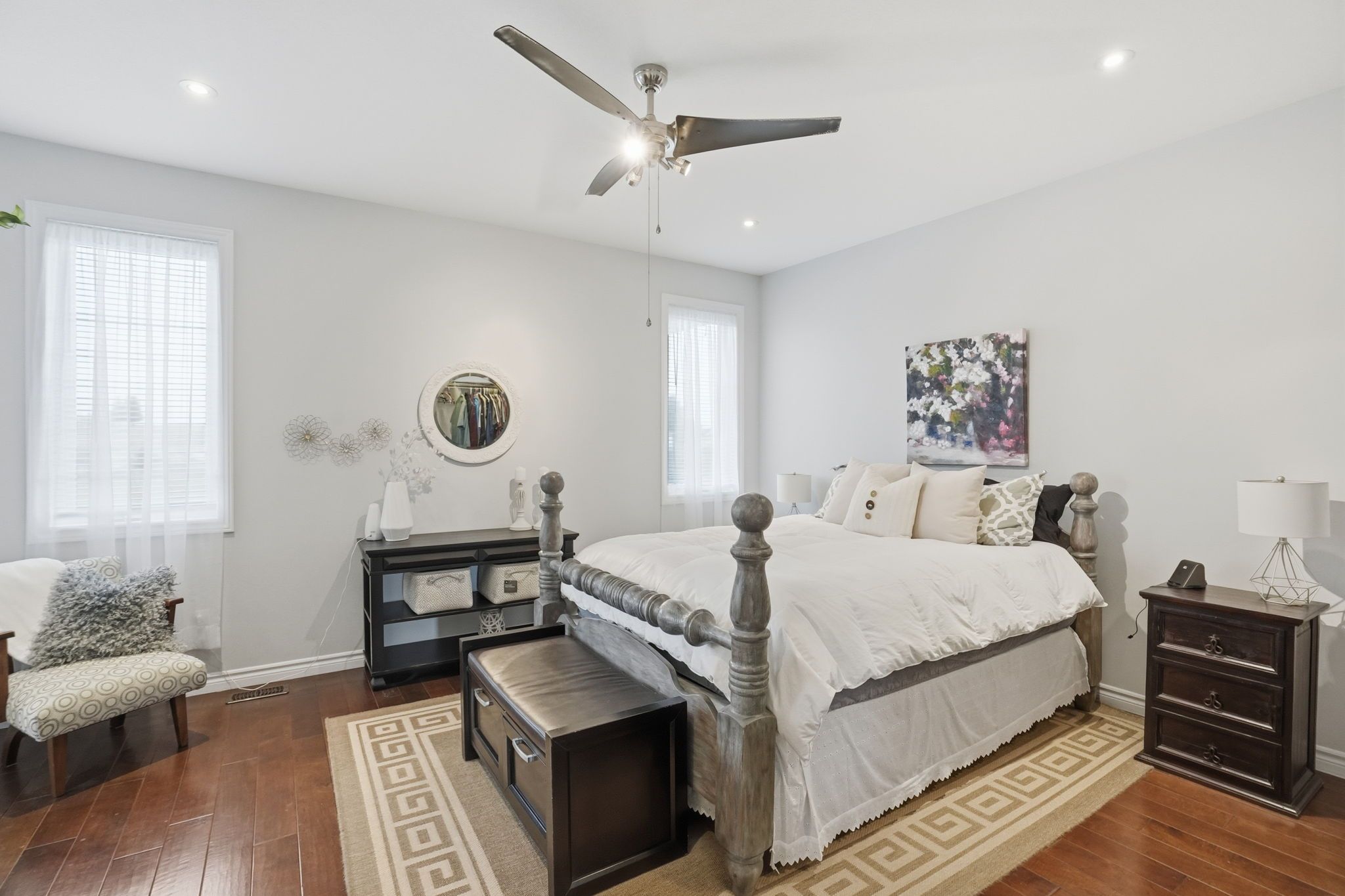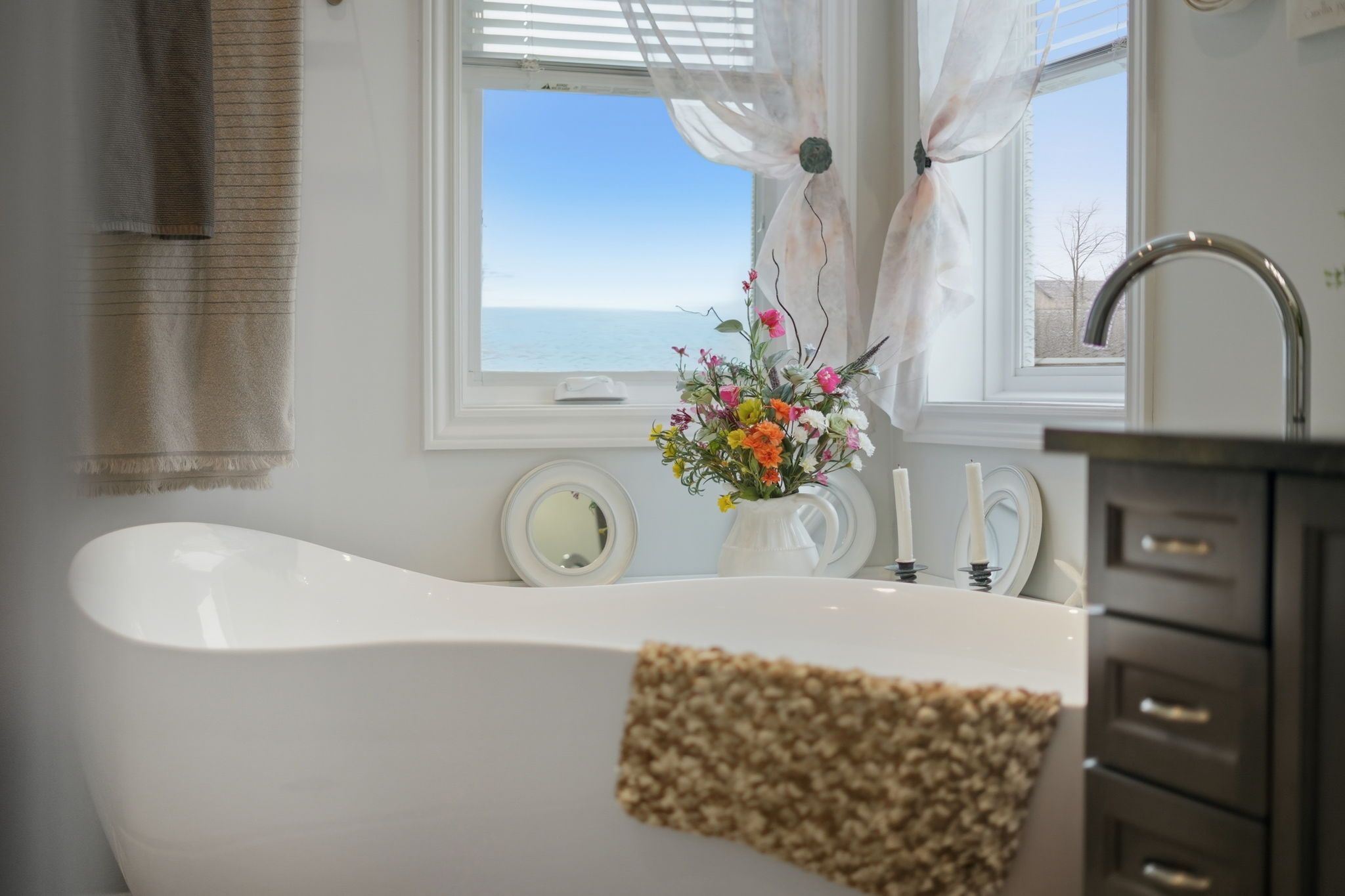 • Primary bedroom features a spa-like ensuite with floating tub and glass shower.