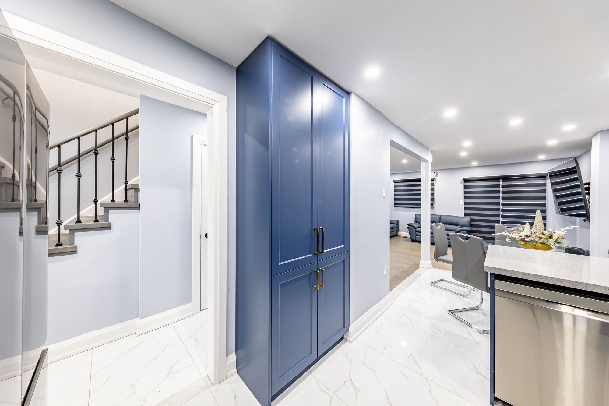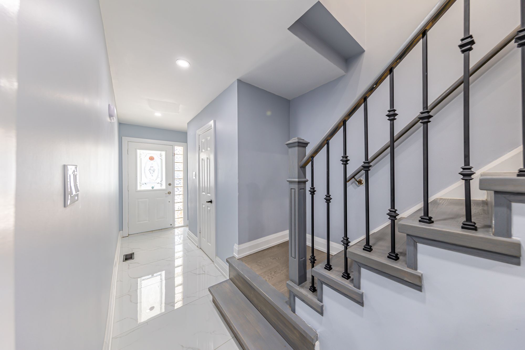 Beautifully renovated from top to bottom, this move-in ready home features new drywall, upgraded insulation, fresh paint, and modern flat ceilings throughout. Fully remodelled bathrooms include walk-in showers, plus a stylish updated powder room. Custom-built closets in the primary and one additional bedroom add functional elegance. Enjoy hardwood flooring on the main and upper levels, vinyl in the basement, and tile in the kitchen and foyer. The updated kitchen boasts new cabinetry, upgraded quartz countertops, and tile flooring. The finished basement features upgraded wood studs (replacing aluminum), adding quality and durability. Pot lights throughout and upgraded zebra blinds complete the modern look. Mechanical upgrades include new hvac units installed in october 2023, a replaced furnace, and an upgraded a/c system converted to a modern heat pump, ensuring year-round comfort and energy efficiency. Conveniently located close to ttc, schools, library, shopping, and all amenities, this home is a perfect blend of style, comfort, and convenience!