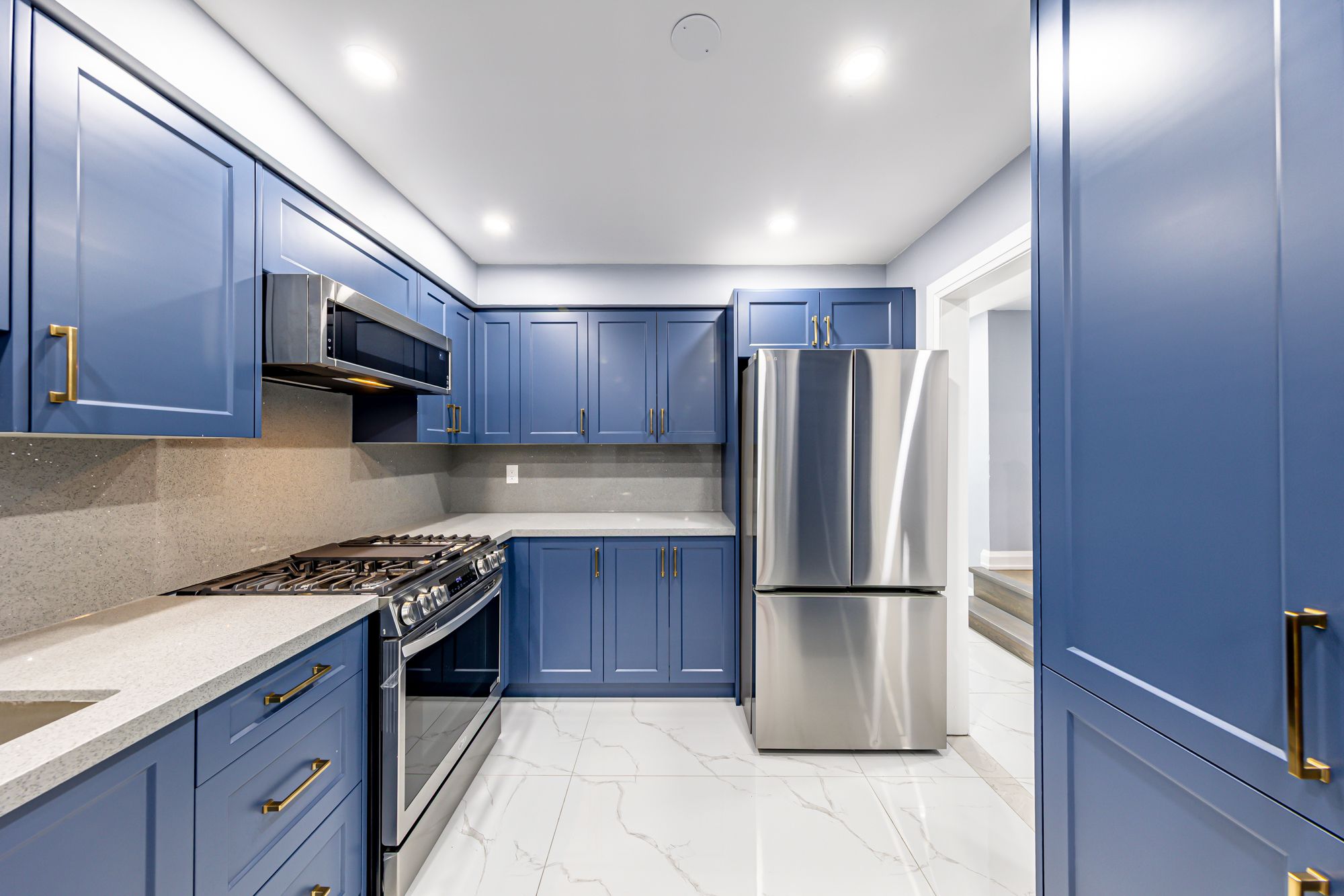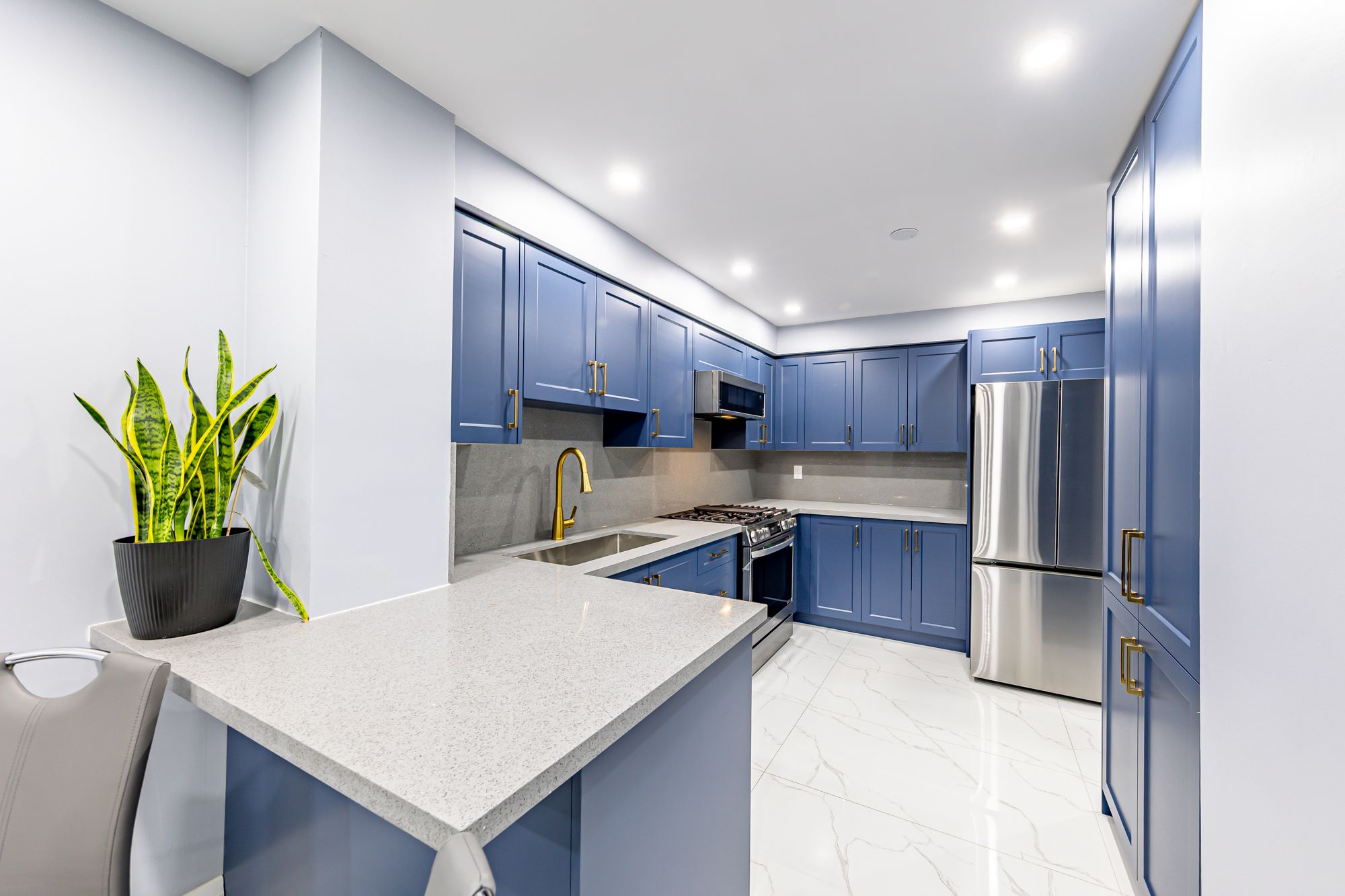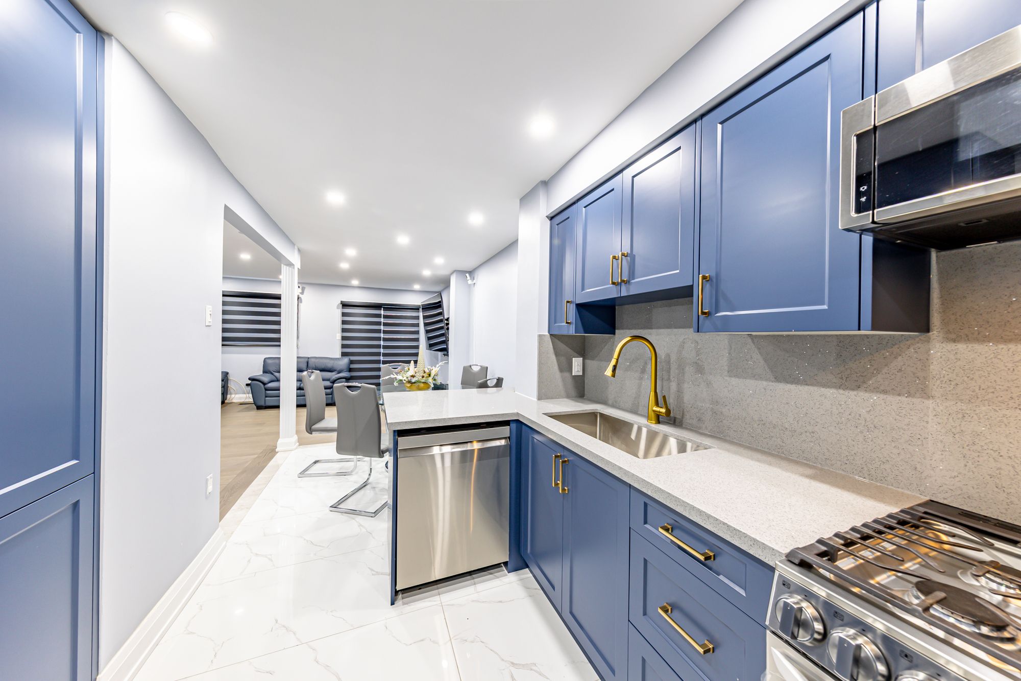 • Updated kitchen features quartz countertops and new cabinetry.