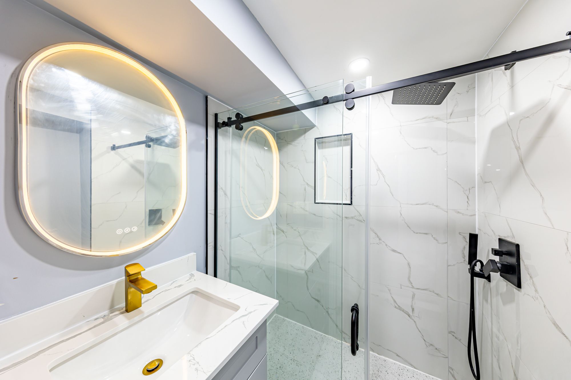 • Stylish bathrooms equipped with walk-in showers and modern fixtures.
