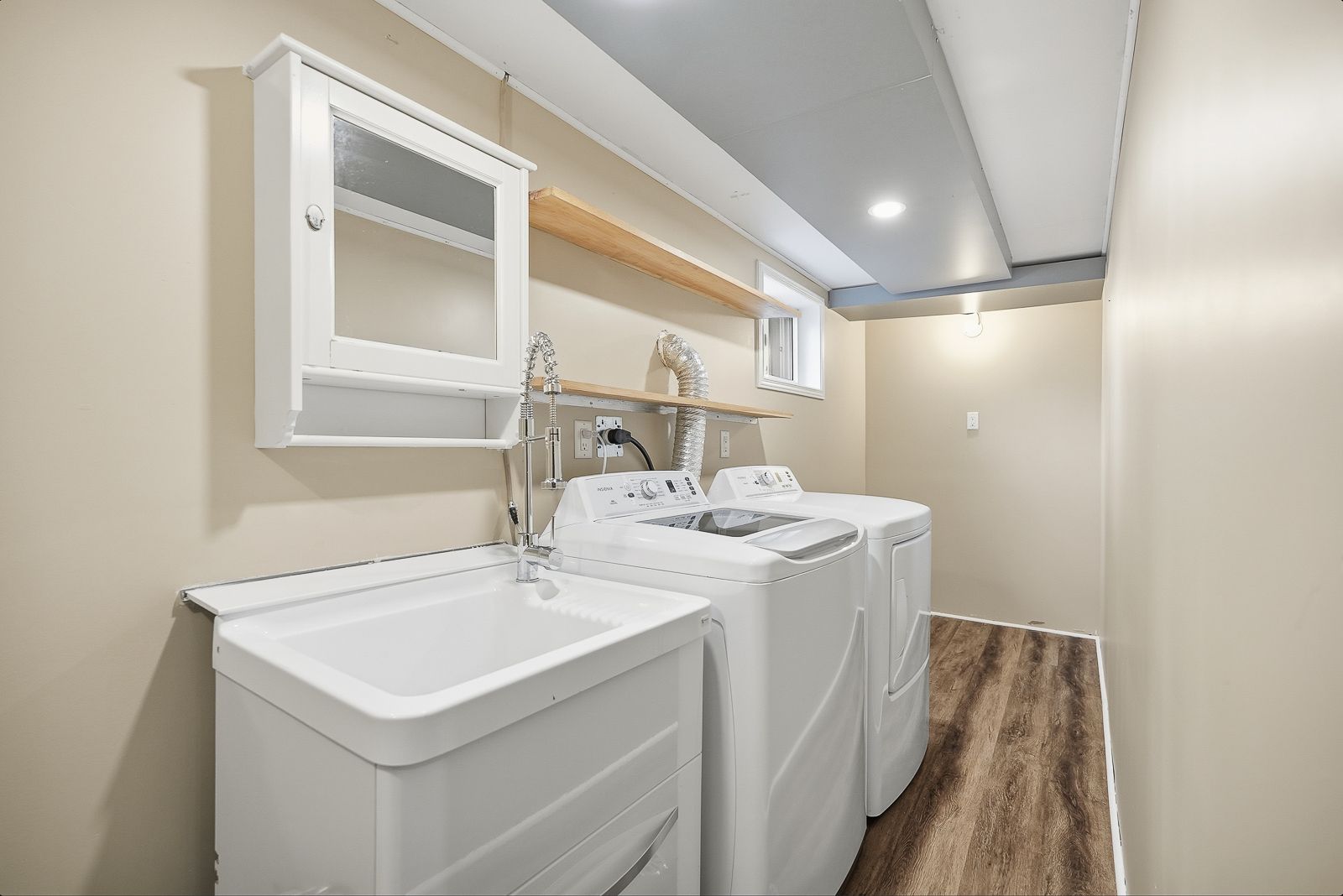 • Updated one-bedroom basement apartment with fresh paint and natural light.