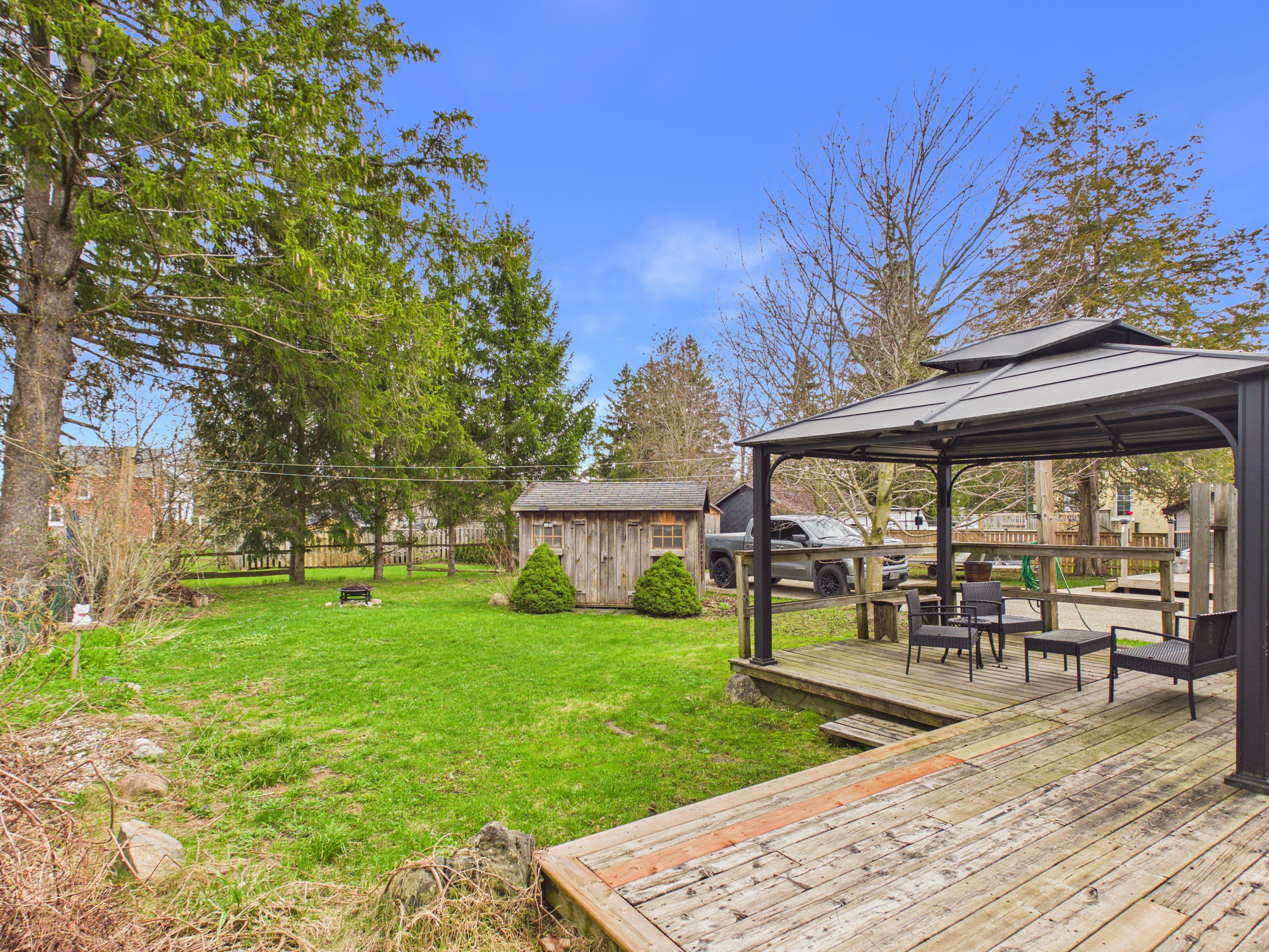 Charming and move-in ready, this well-maintained 2-bedroom, 2-bathroom home is ideally located within walking distance to downtown walkerton and nearly every amenity the town has to offer. Perfect for first-time buyers, the home features a functional layout with a bright, spacious living room, an updated kitchen with direct access to the backyard, and a convenient main floor den. You'll also find a combined bath/laundry room and a handy storage/pantry space just off the kitchen. Upstairs offers two comfortable bedrooms, including a primary with a large walk-in closet that could easily be converted into a third bedroom if desired. Enjoy your morning coffee on the welcoming front porch or entertain guests on the backyard deck overlooking a generous yard. Recent updates include central air conditioning (2022), new roof and gutters (2022), and new soffit and fascia (2023). The garden shed is equipped with electricity, adding extra functionality to this already appealing property.