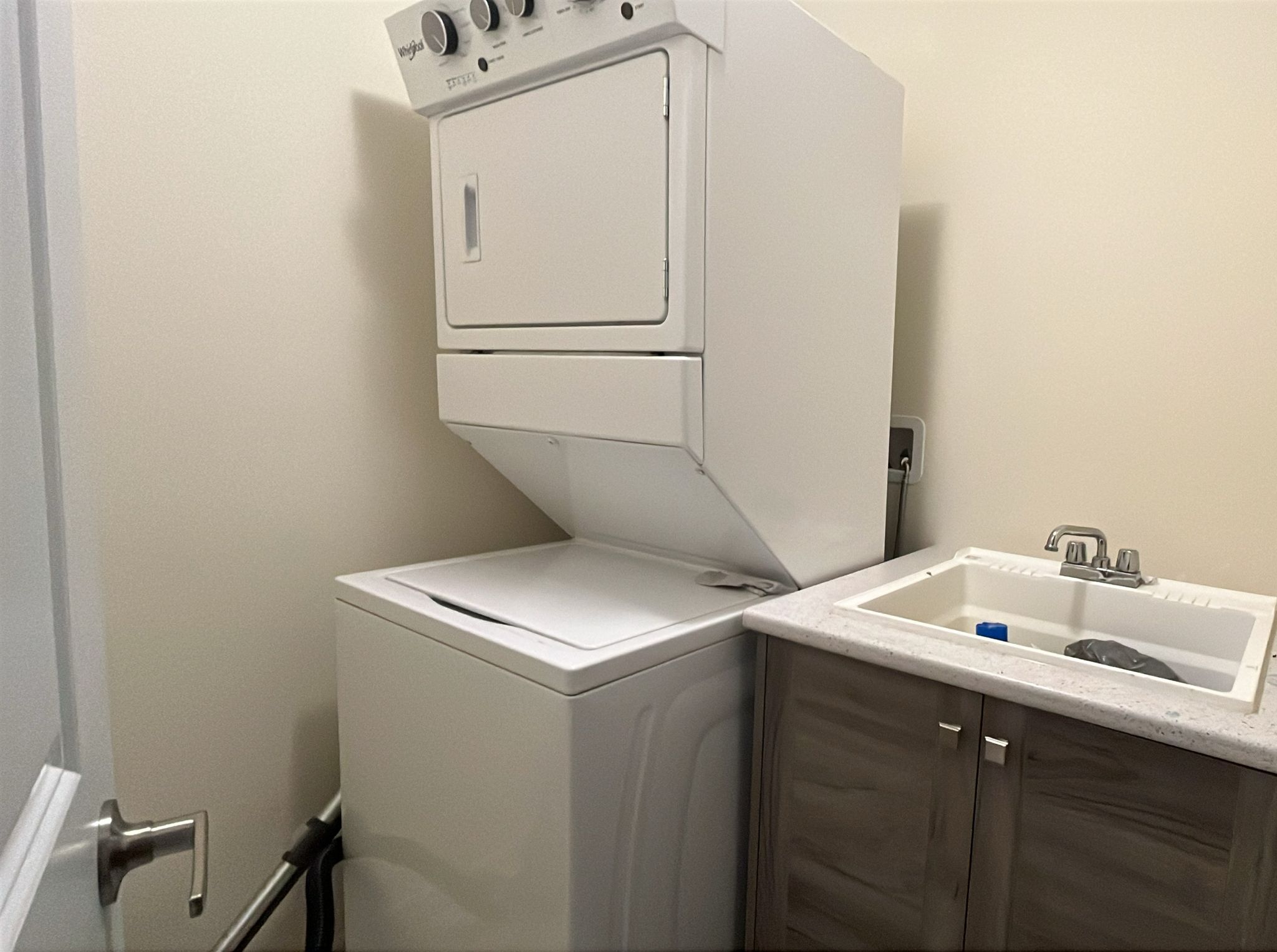 • Family-sized kitchen with quartz countertops and stainless steel appliances.