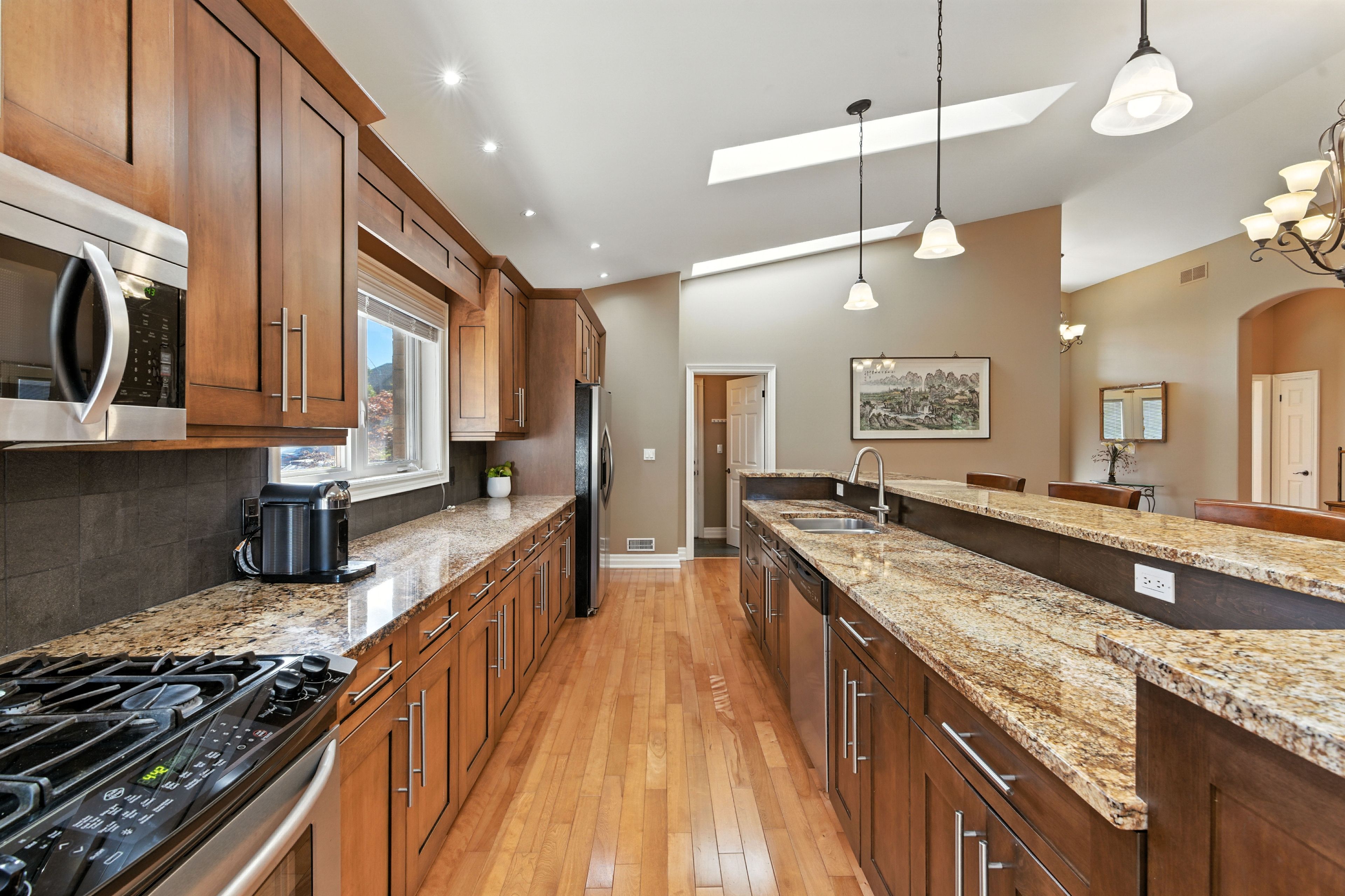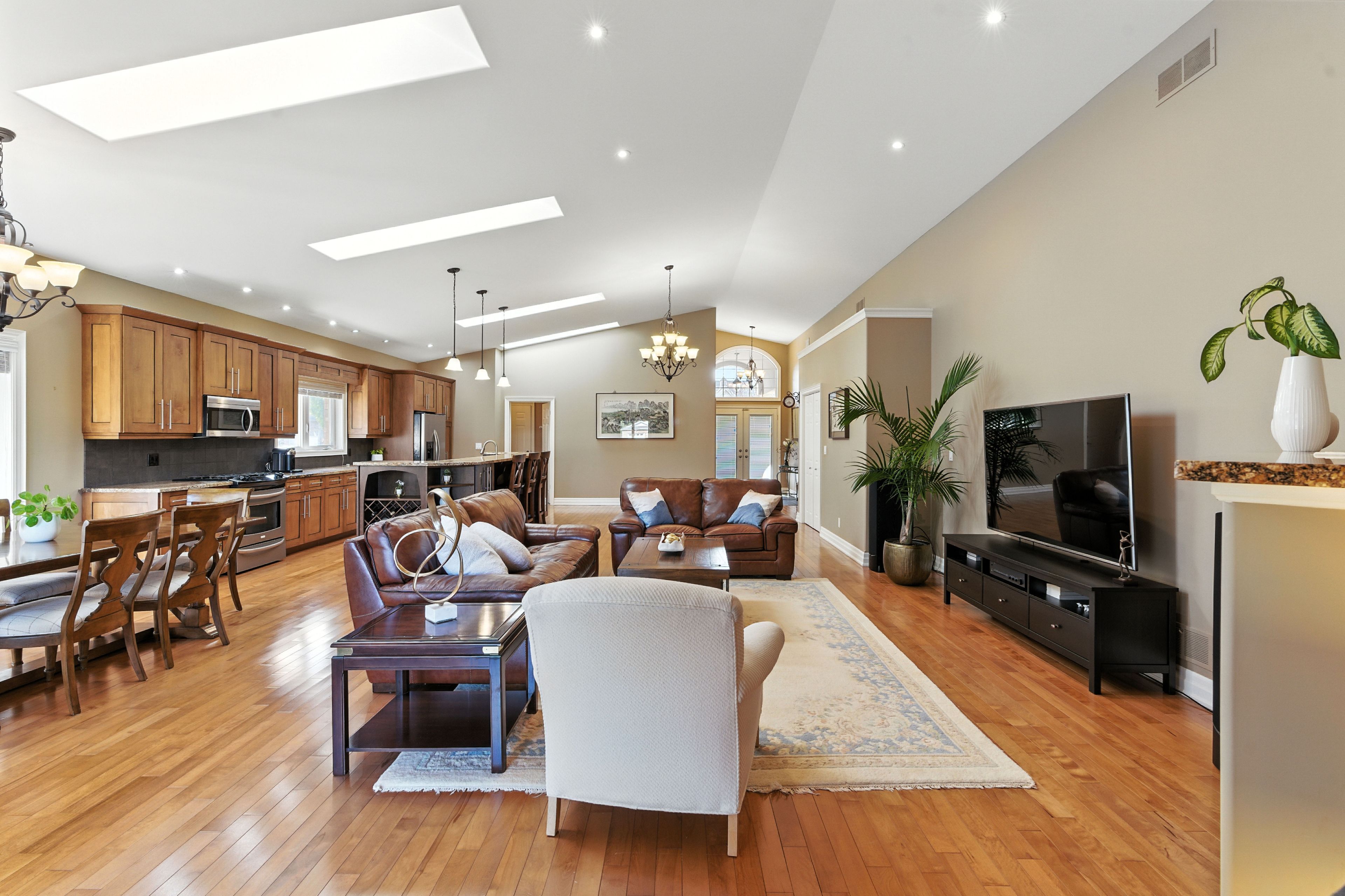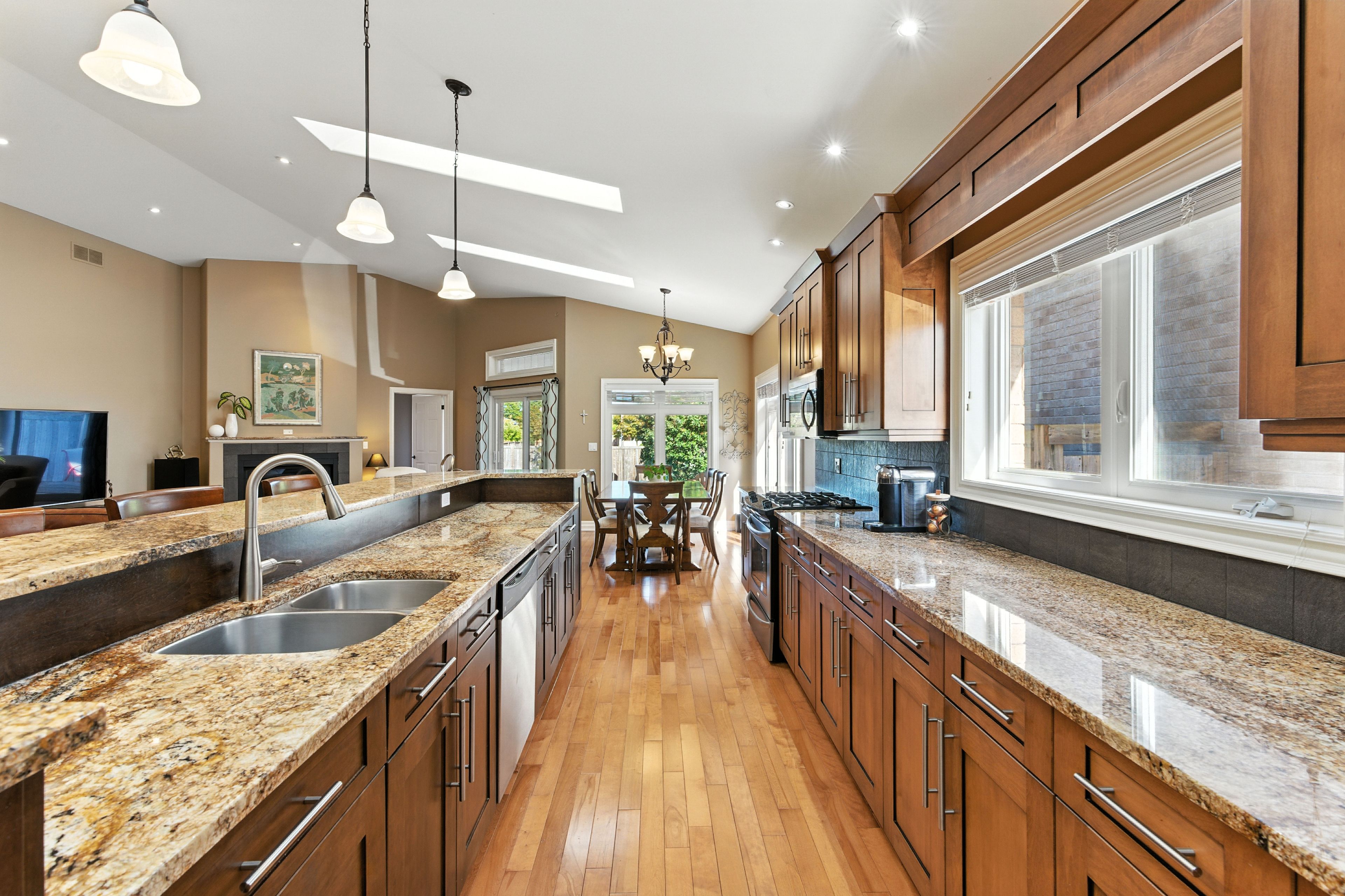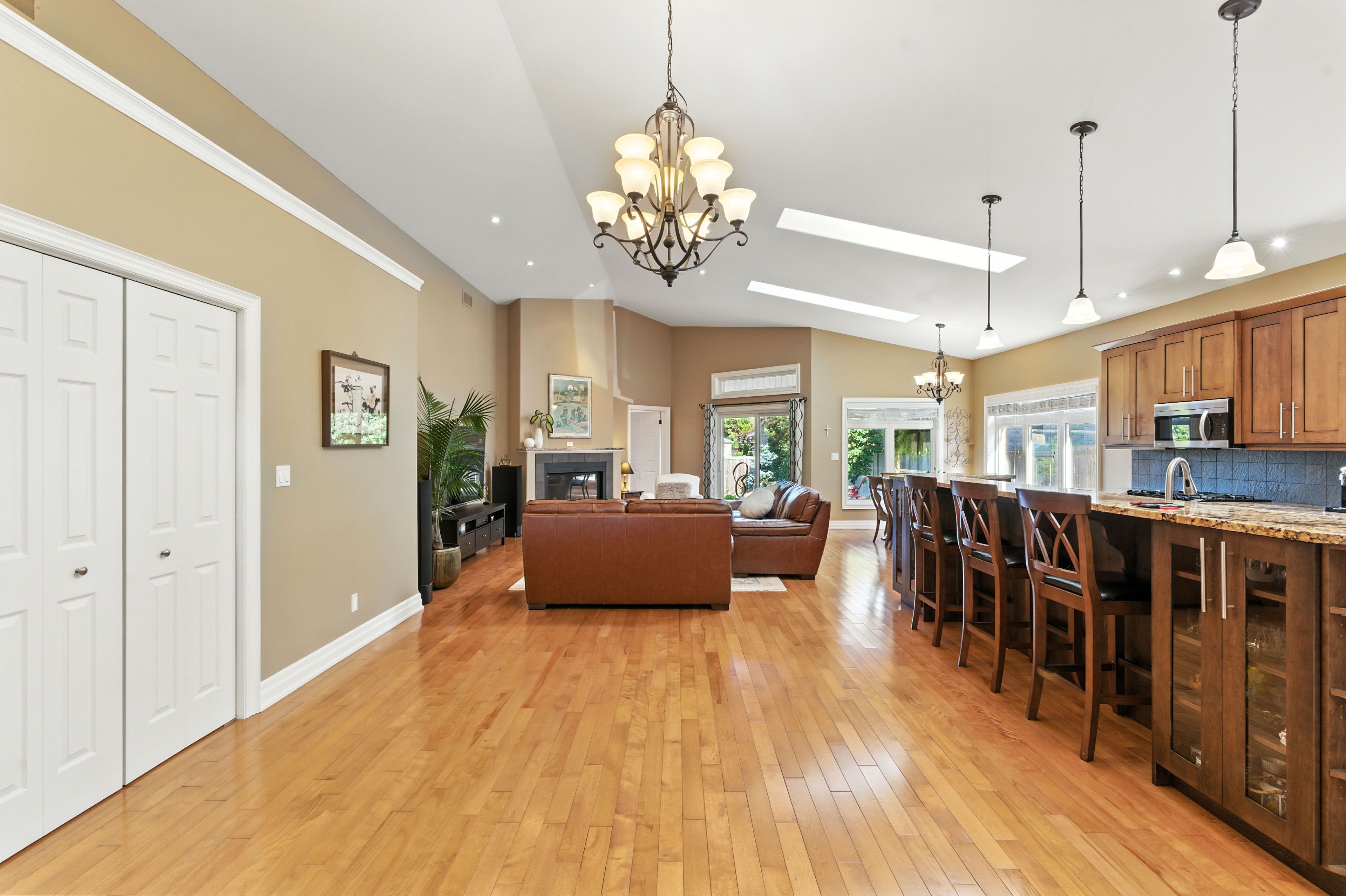 Tucked away on a quiet cul-de-sac in one of st. Catharines most sought-after neighborhoods, 6 mclean court is a rare executive bungalow that blends comfort, elegance, and everyday convenience. From the moment you arrive, the meticulously cared-for front yard and expansive driveway, with parking for up to six vehicles and a double-car garage, create a welcoming first impression. Step inside to discover approx. 2,100 sq. Ft. Of thoughtfully designed main-floor living, where soaring 14-ft vaulted ceilings and skylights flood the open-concept space with natural light. At the heart of the home, the gourmet kitchen features an oversized island, high-end cabinetry, and seamless flow into the dining and living areas, making it ideal for both everyday living and entertaining. The primary suite is a serene retreat with walk-in closets and spa-like 5-piece ensuite. Two additional bedrooms and a well-appointed 3-piece bathroom complete the main floor, providing flexibility for family, guests, or a home office. A full unfinished basement offers excellent potential for future living space, whether imagined as a recreation room, gym, or in-law suite. Step outside to a private, fully fenced backyard with a large deck the perfect setting for outdoor dining, morning coffee, or quiet evenings under the stars. Ideally located, this home offers both tranquility and convenience. Just minutes away you will find shopping, dining, the st. Catharines hospital, and highly regarded schools, all while enjoying the peaceful charm of a family-friendly neighborhood. Rarely does a bungalow of this size, style, and setting become available. Welcome to your sanctuary at 6 mclean court a home that offers comfort, and a lifestyle to match.