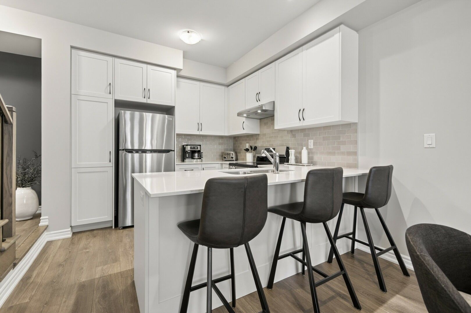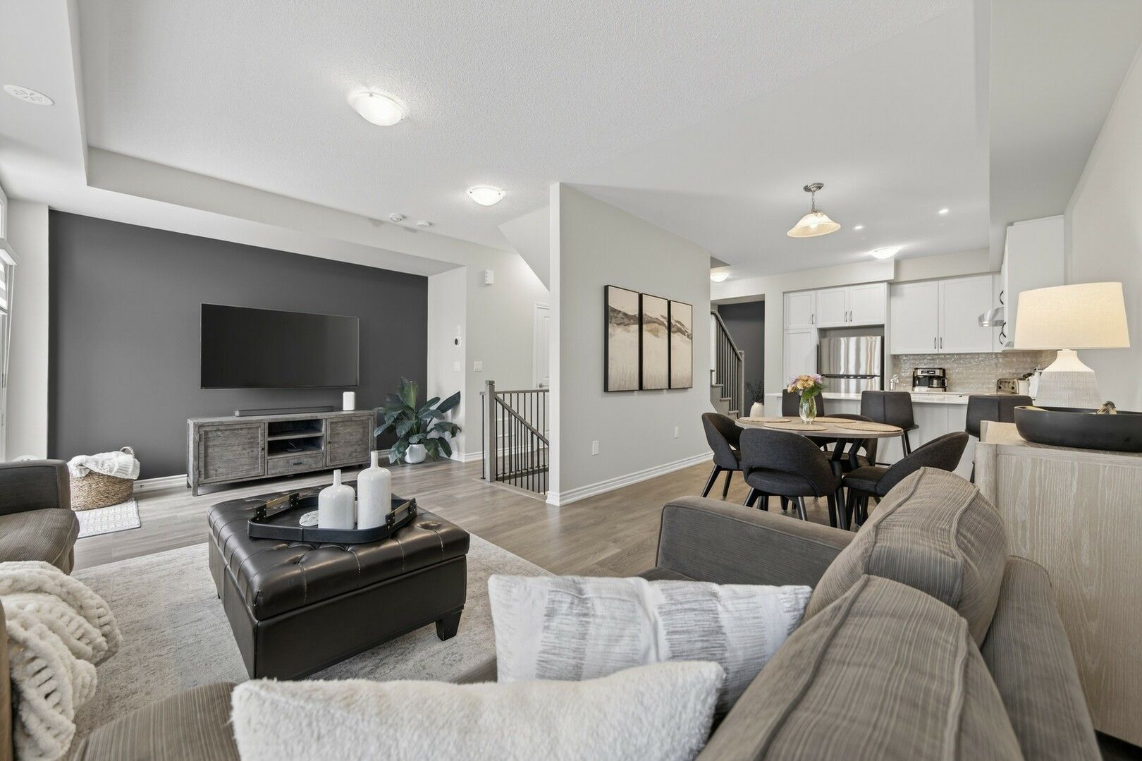 • Bright, open-concept main level with modern finishes and oversized windows.