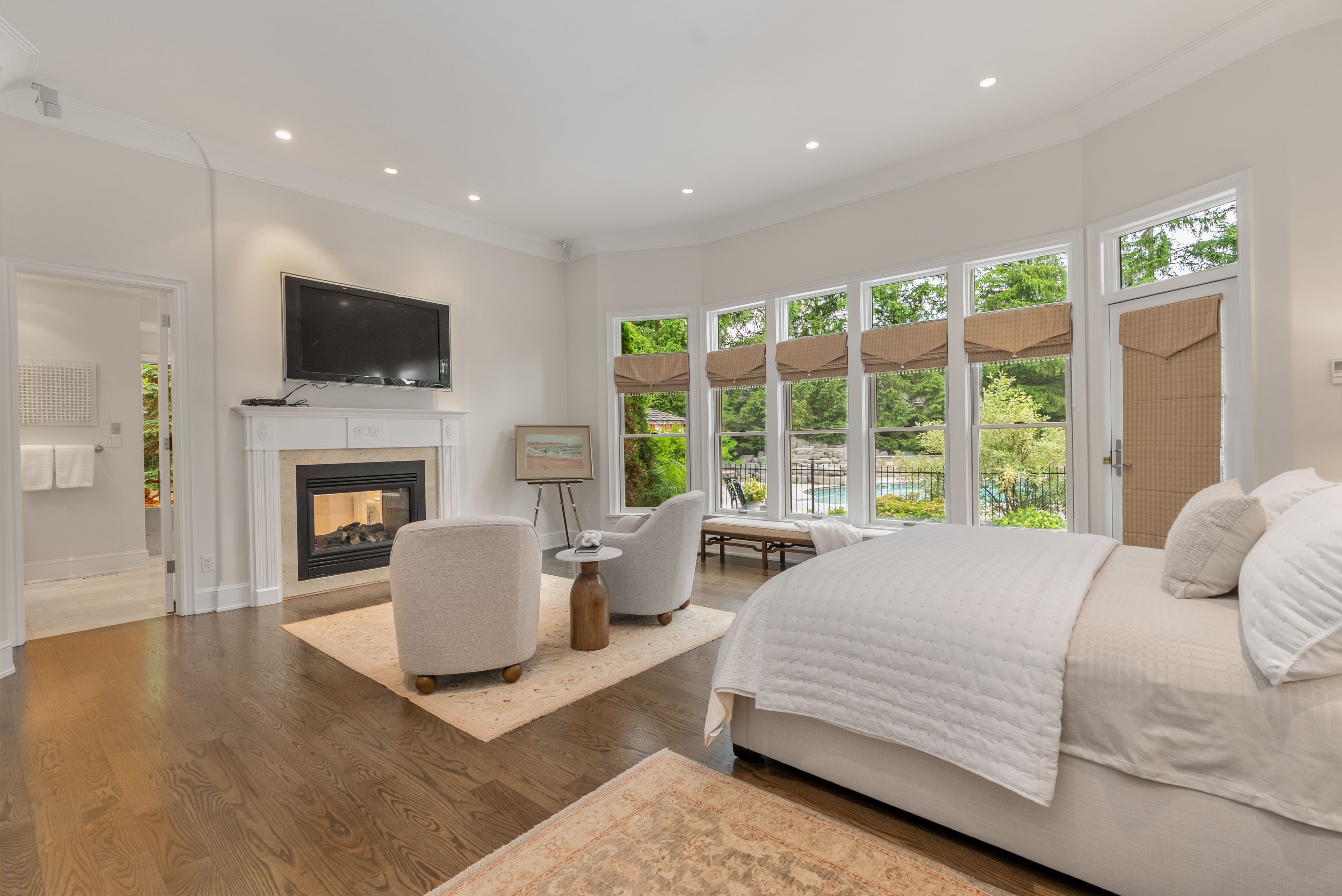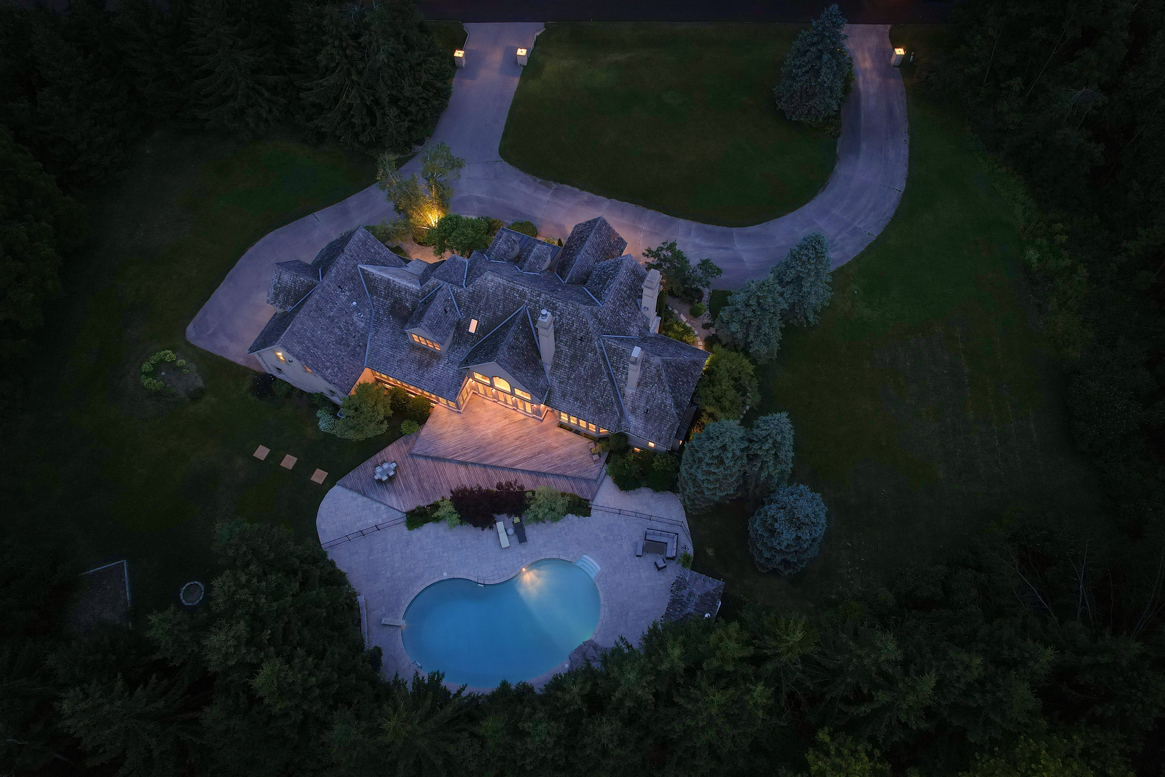 Welcome to one of midhurst's most prestigious addresses - midves court. This custom built estate sits on nearly 2 acres of private, landscaped grounds with a circular driveway, triple garage, and over 8000 sq ft of luxurious living space. Designed with elegance and function in mind, the home features 5 beds, 6 baths, and high-end finishes throughout. The main floor includes a spacious great room with soaring 20+ ft vaulted ceilings and a grand wood burning fireplace - one of five throughout the home. The chefs kitchen boasts thermador appliances, granite counters, and an oversized island, all open to a bright family room with full height windows. A formal dining room, private office with gas fireplace, and stunning entryway with curved staircase and additional second staircase complete the main level. The main floor primary suite offers comfort and accessibility, with large windows, a walk-in closet with custom millwork, 5-pc ensuite with jacuzzi, and direct walkout to the backyard and pool. Upstairs are 3 spacious bedrooms, each with ensuite bathrooms and large closets, including a second primary suite with dual closets and a fully renovated spa bath. A rare upper level lounge provides a perfect hangout for kids or guests. Enjoy indoor-outdoor living with approx. 1500 sq ft of decking, multiple seating areas, bbq gas line, and a resort style saltwater pool with waterfall, retaining wall, and pool house. The yard includes a fire pit, expansive lawn, and space for a future tennis or sports court - framed by mature trees and gardens for total privacy. The finished lower level impresses with 12-ft ceilings, a games area, gym with mirror and padded flooring, full bath, and abundant storage. Additional features include fresh paint throughout, hardwood upstairs, epoxy garage floors, uv and reverse osmosis water filtration, sonos sound, and a full security system. A rare offering in the heart of midhurst, minutes to barrie, hwy 400, top rated schools and all amenities.