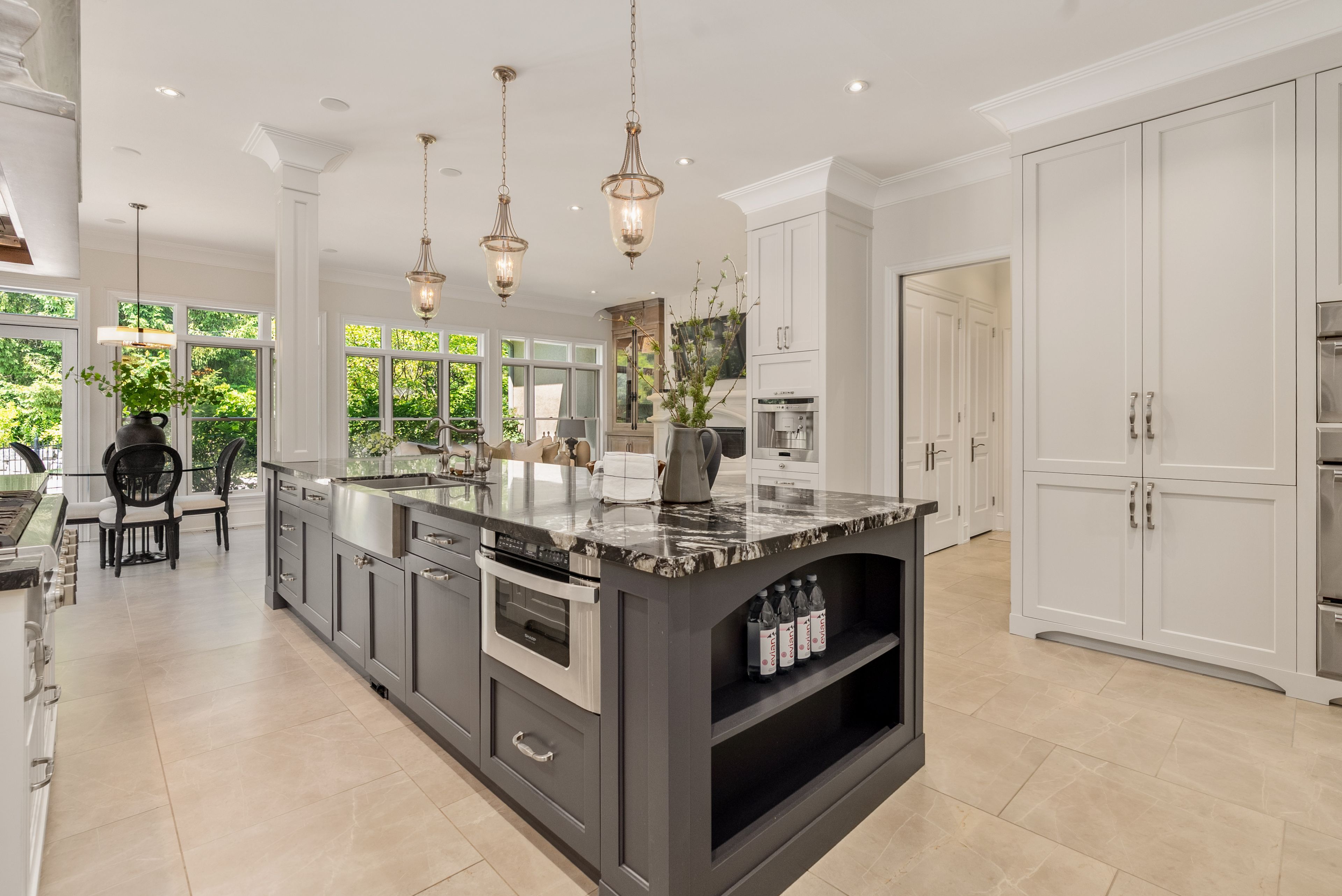 • Chef's kitchen with high-end Thermador appliances and large island.