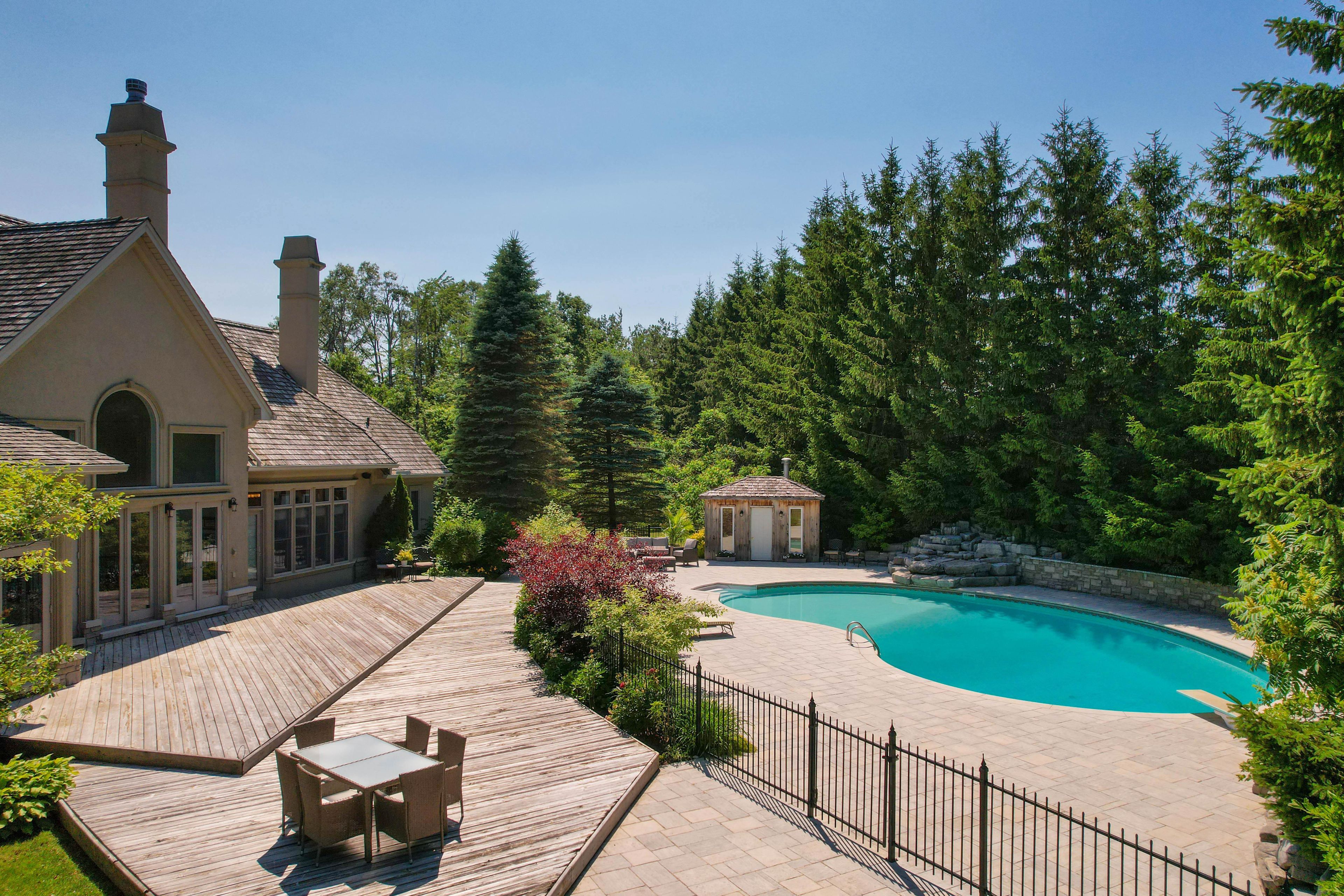 Subtype DetachedIndoor Features Auto Garage Door Remote, Bar Fridge, Built-In Oven, Central Vacuum, In-Law Capability, Primary Bedroom - Main Floor, Water Heater Owned, Water TreatmentOutdoor Features Deck, Landscape Lighting, Landscaped, Lawn Sprinkler System, Patio, PrivacyAmenities Cul de Sac/Dead End, Park, School, Skiing, Wooded/TreedFeatures Irregular LotOwnership FreeholdViews Trees/WoodsBasement Finished, FullFoundation ConcreteHeating / Cooling Forced AirHeating Fuel GasSewer Septic