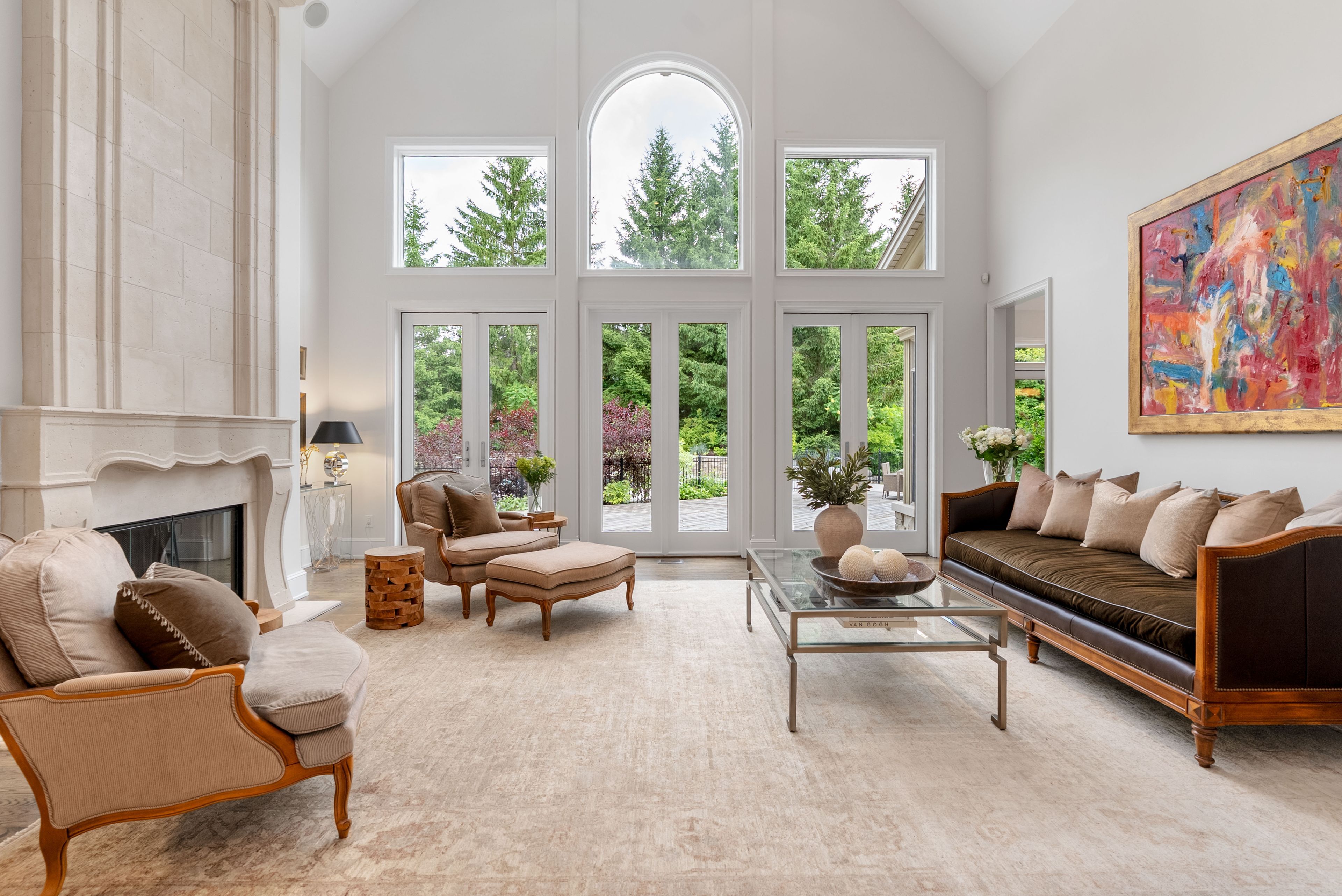 • Spacious main floor features grand vaulted ceilings and multiple fireplaces.