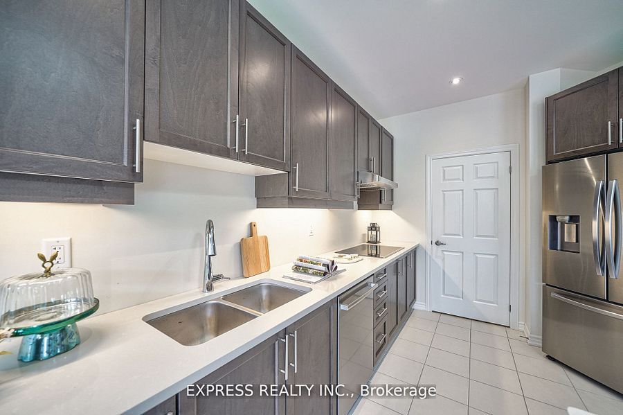 • Spacious kitchen with quartz counters and stainless steel appliances.