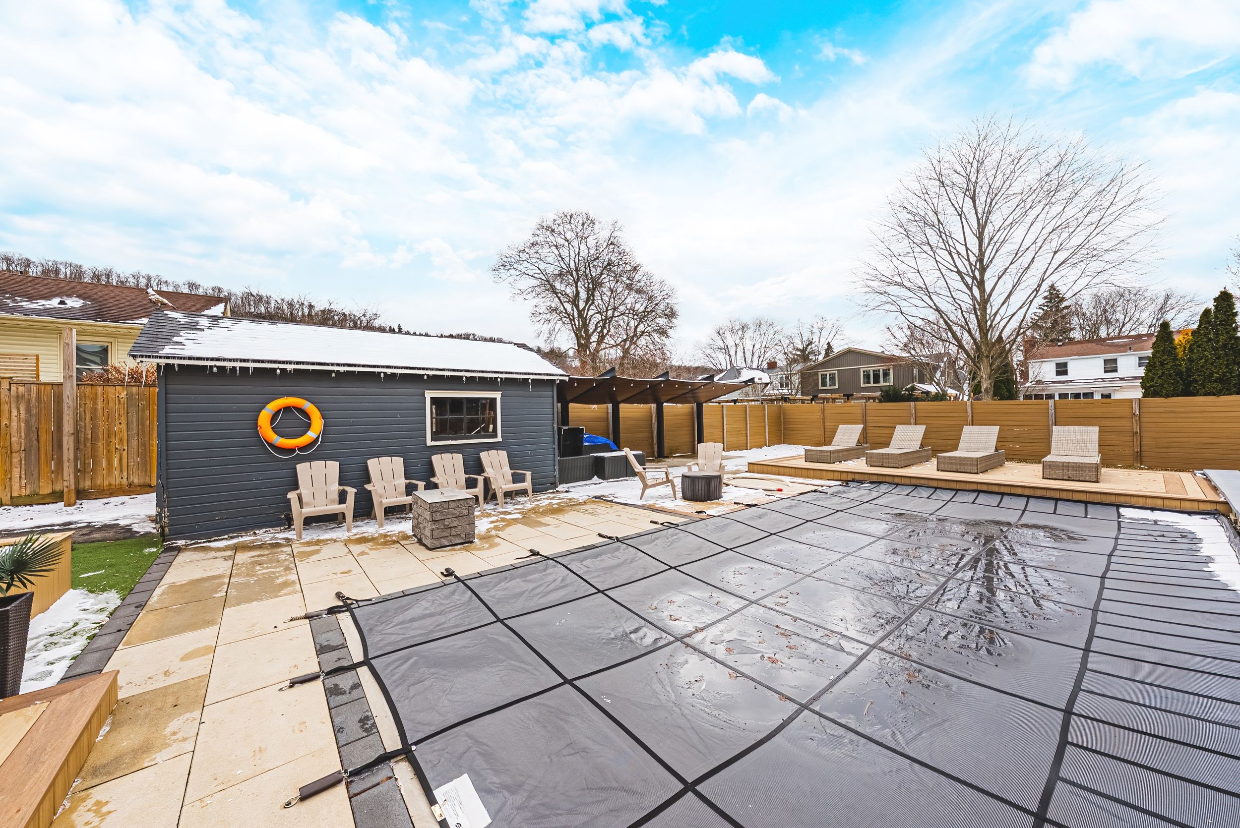 Summer awaits you, at 6 nelles blvd! Ideally situated in one of grimsby's most sought-after neighbourhoods. Surrounded by mature trees and offering stunning escarpment views, this location provides the perfect blend of tranquility and convenience, just moments from all amenities. Set on an oversized lot, the backyard is a true private oasis. In 2021 a full luxury backyard renovation was completed. Enjoy an in-ground saltwater pool, bocce ball court, composite decking, and a cozy gas fireplace-perfect for entertaining or relaxing. With so many exceptional features, this outdoor space is exceptional. The beautifully finished, move-in ready home features two main floor bedrooms, each with walkouts to the backyard. The upper level boasts a luxurious primary suite complete with a skylight and a private ensuite, creating a bright and serene retreat. The gourmet kitchen is thoughtfully designed, featuring high-end finishes and a cozy built-in breakfast nook-perfect for casual dining and everyday living. The living room is complete with a wood burning fireplace, perfect for a night in. With so many exceptional features, this home and outdoor space truly has it all. Ample parking for up to five vehicles adds to the home's exceptional functionality and convenience. Walk to the village of grimsby with shops and restaurants. This is a place to call home.