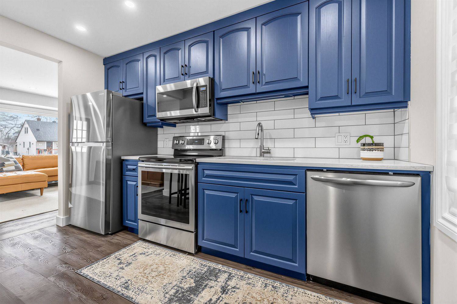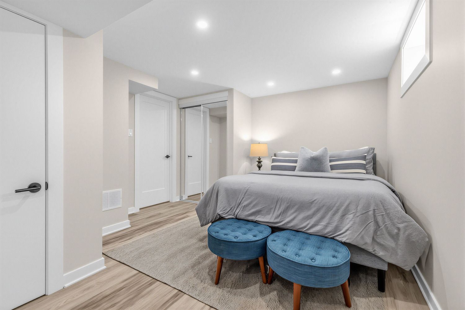 Beautifully updated and truly move-in ready, this home offers a functional layout, modern finishes, and outstanding future potential. Ideal for first-time buyers or investors, the bright open-concept main floor has been thoughtfully renovated throughout, featuring oversized windows, new luxury vinyl plank flooring, and sleek pot lights on dimmers that create an inviting atmosphere. The stylish and practical kitchen is designed for both everyday living and entertaining, complete with quartz countertops, subway tile backsplash, upgraded cabinetry and stainless steel appliances. Smart home upgrades, including a nest thermostat, add comfort, convenience, and energy efficiency. Additional improvements include brand new roof shingles, providing peace of mind for years to come. The revamped basement offers a spacious and versatile layout with a large recreation area that can easily be tailored to suit your needs-whether as a media room, home office, gym, or additional living space. An oversized shed in the backyard provides ample space to meet all your storage needs. Conveniently located near parks, schools, shopping, and transit, this home combines a quiet, family-friendly setting with easy access to everyday amenities. Zoned for a legal duplex, it also presents excellent potential for future income or multi-generational living.