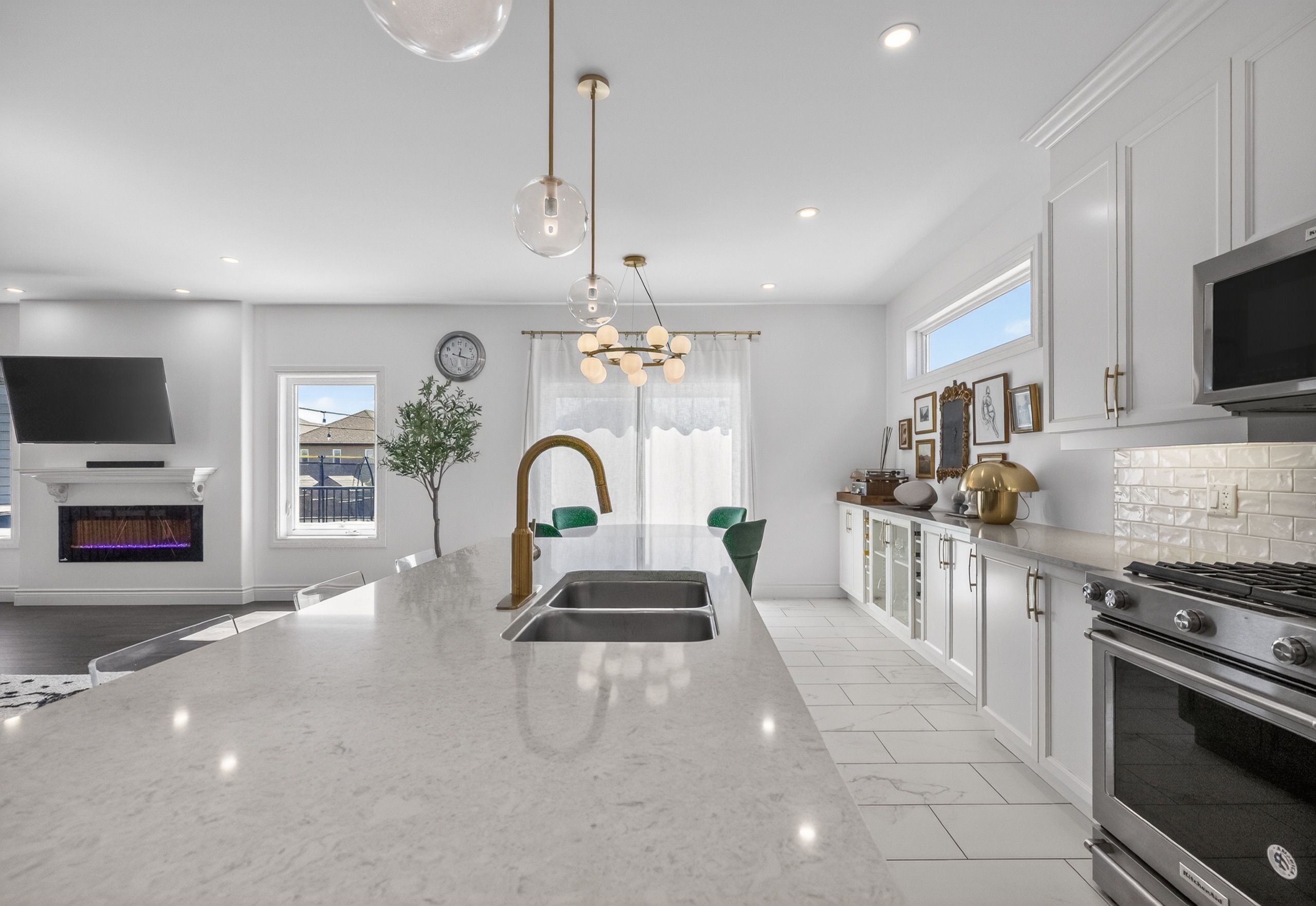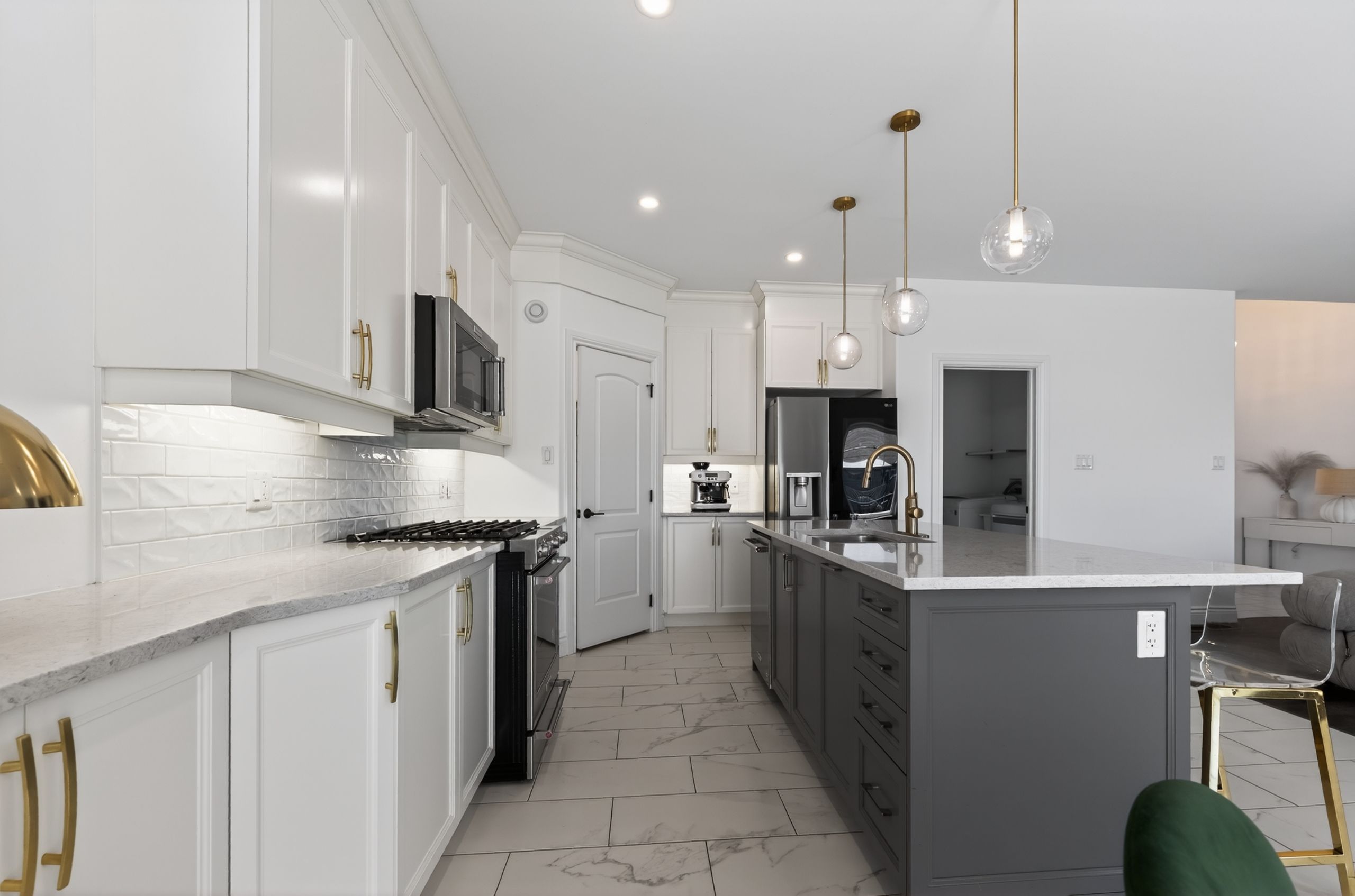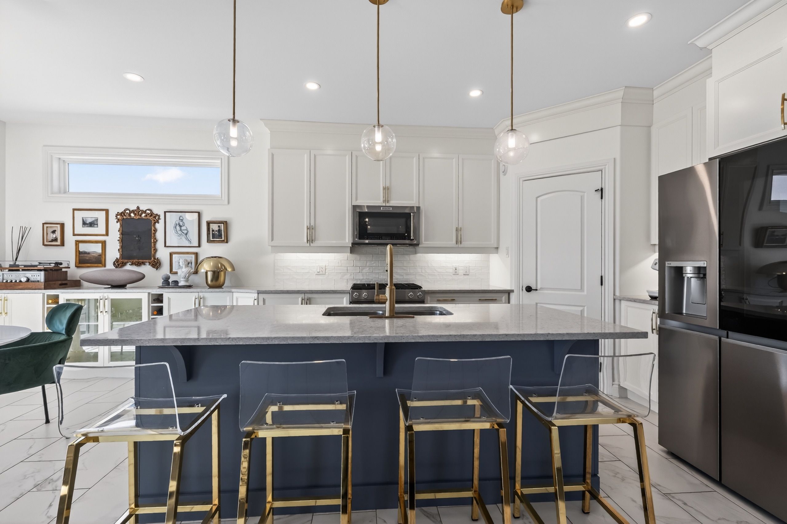 • Stunning kitchen includes quartz countertops, a walk-in pantry, and a large island.